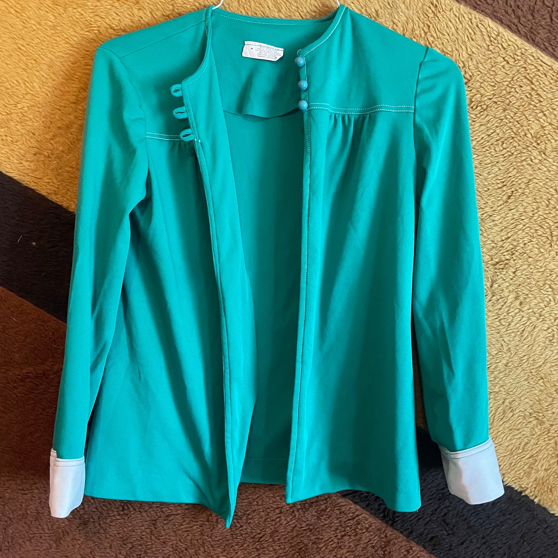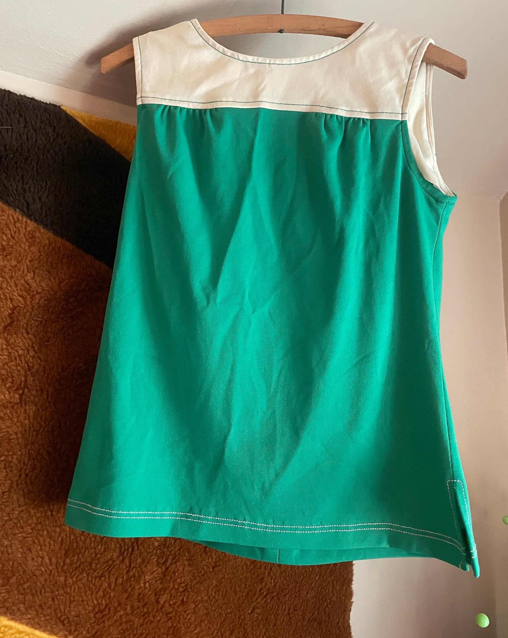 vtg 3 piece mod pantsuit ~ green & white two tone palazzo pant wide leg flare pants set ~ tank, jacket and bell bottoms set