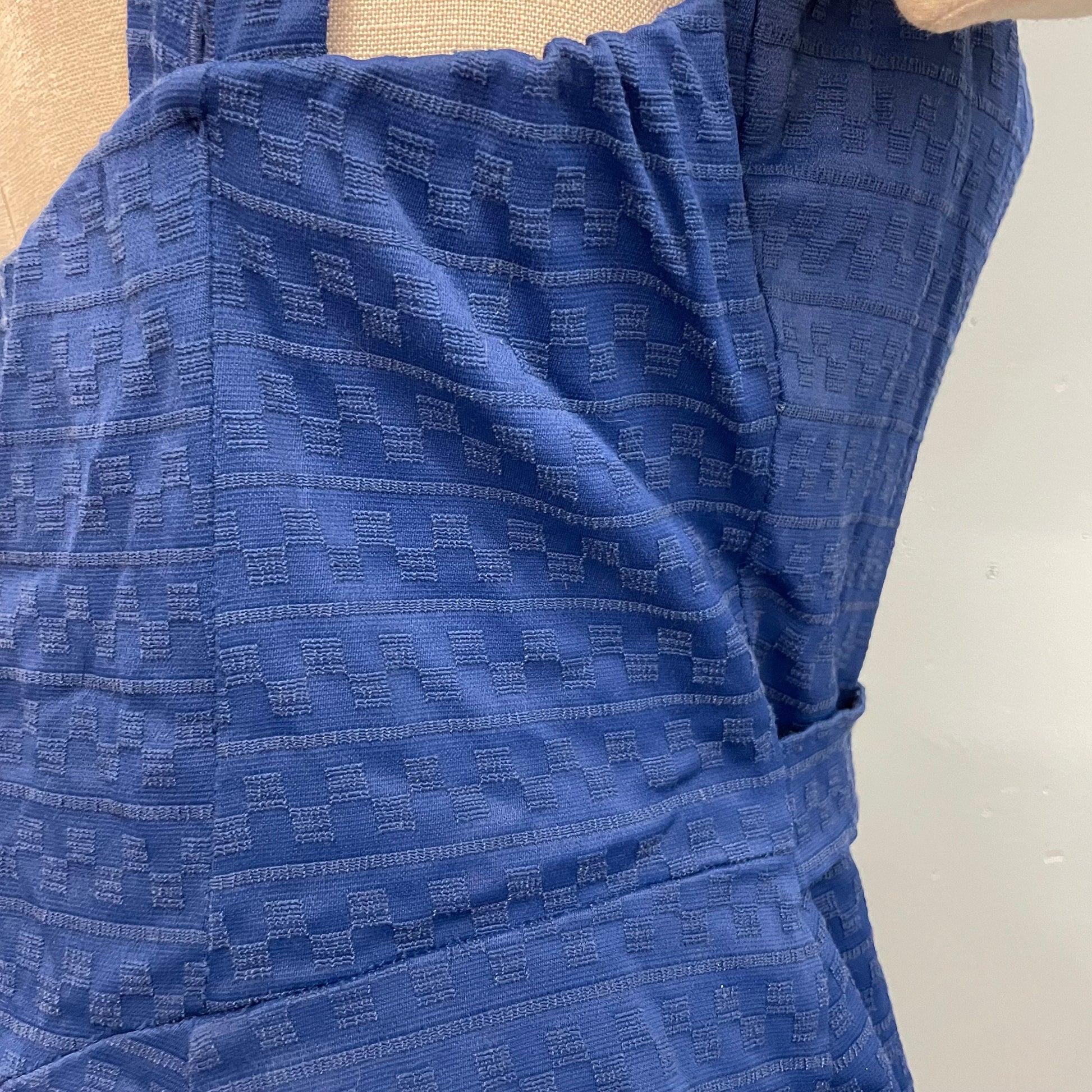 vtg 40s Rose Marie Reid swimsuit navy blue belted rayon playsuit textured geometric printed swimsuit rockabilly pin up beach wear tank dress