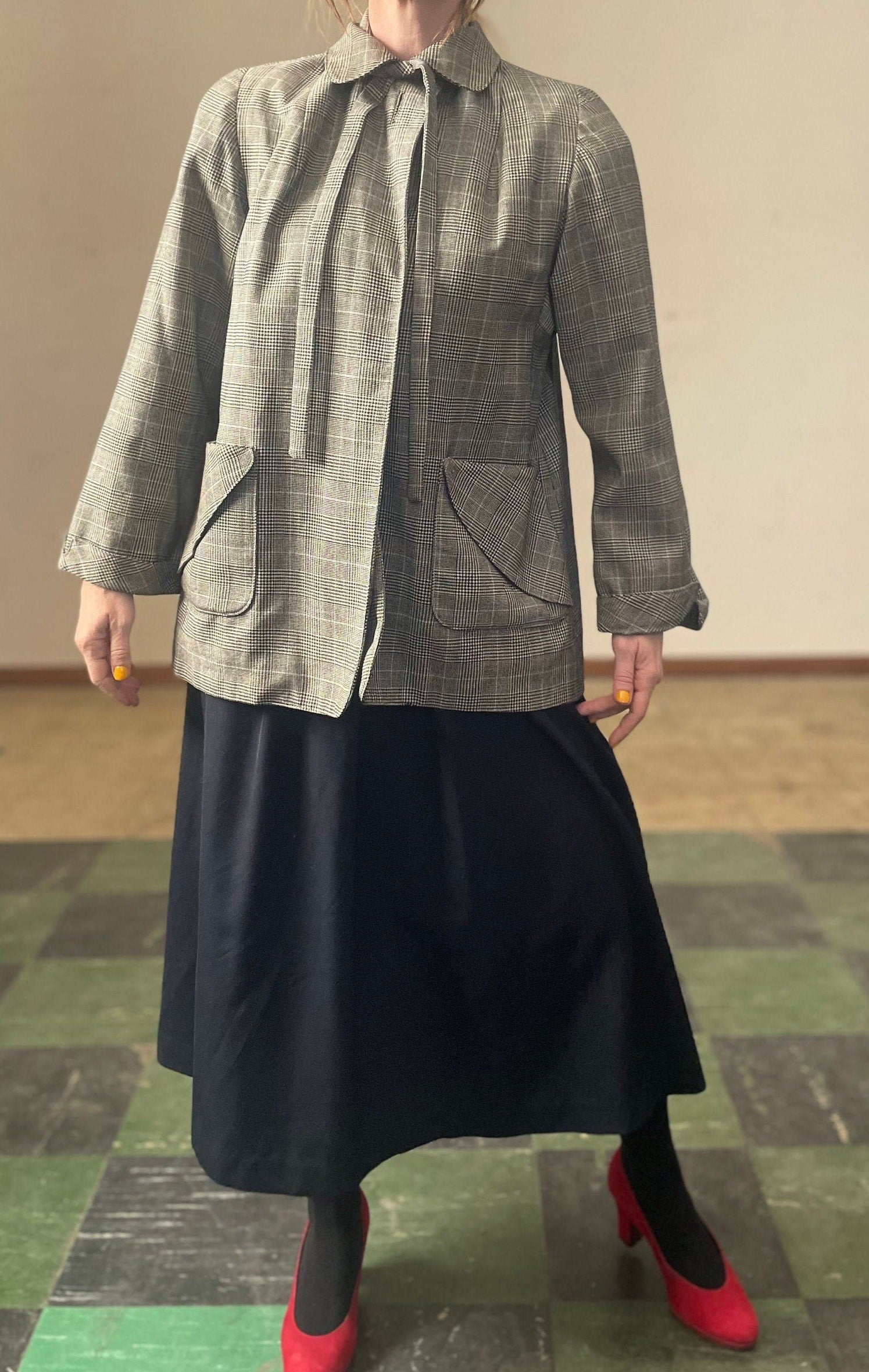 vtg 40s WOMENS PLAID JACKET / vintage Hoot Lass Bonnie womens large neck tie pan collar structured mcm 50s preppy autumn stylish winter coat