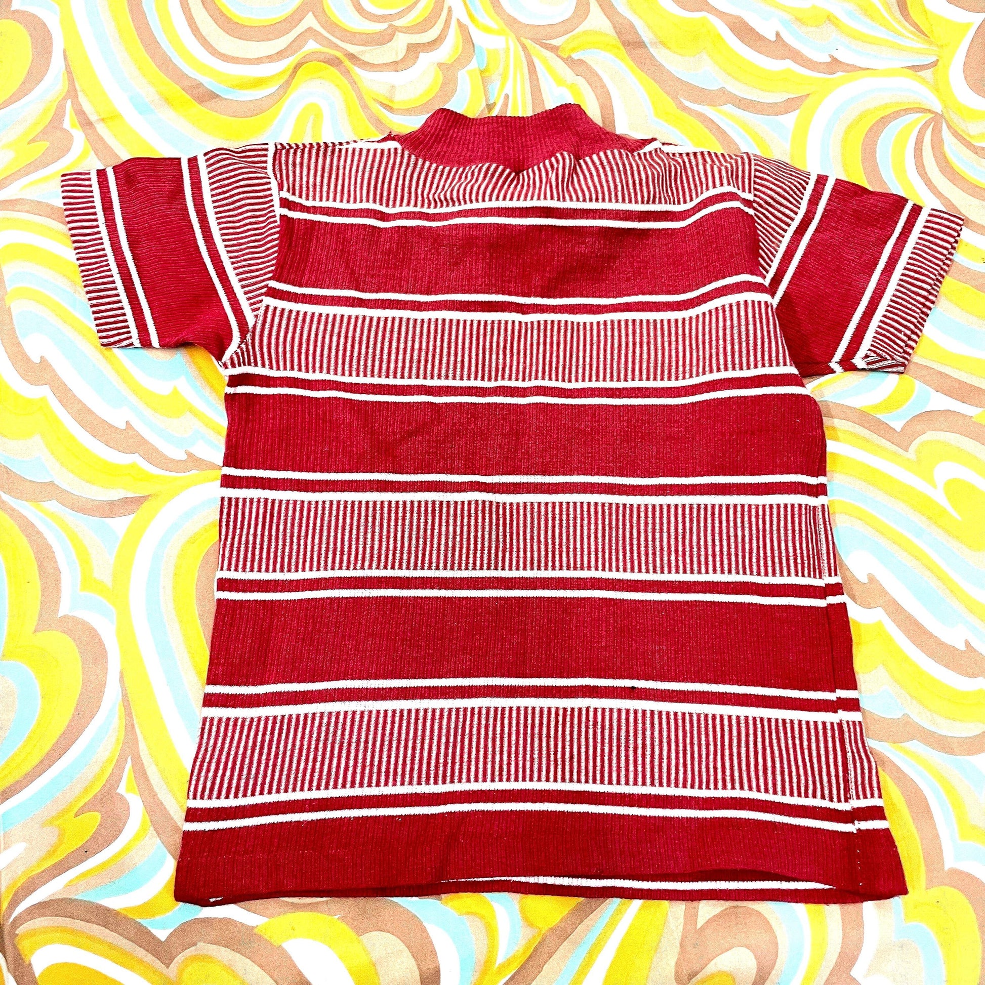 vtg 50s DONMOOR KIDS STRIPED Shirt // vintage boys 7 all cotton usa retro red preppy rockabilly unisex comfy tee two tone striped autumn top