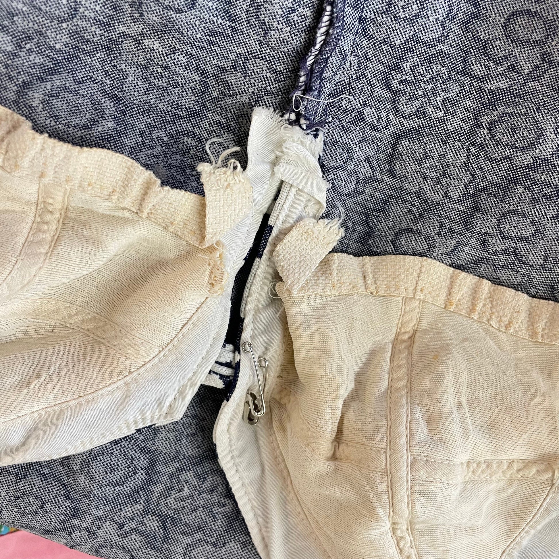 vtg AS IS 50s 60s mod floral knit sheath one piece swimsuit blue white flowers pin up style bathing suit mcm retro bullet bra boy shorts playsuit