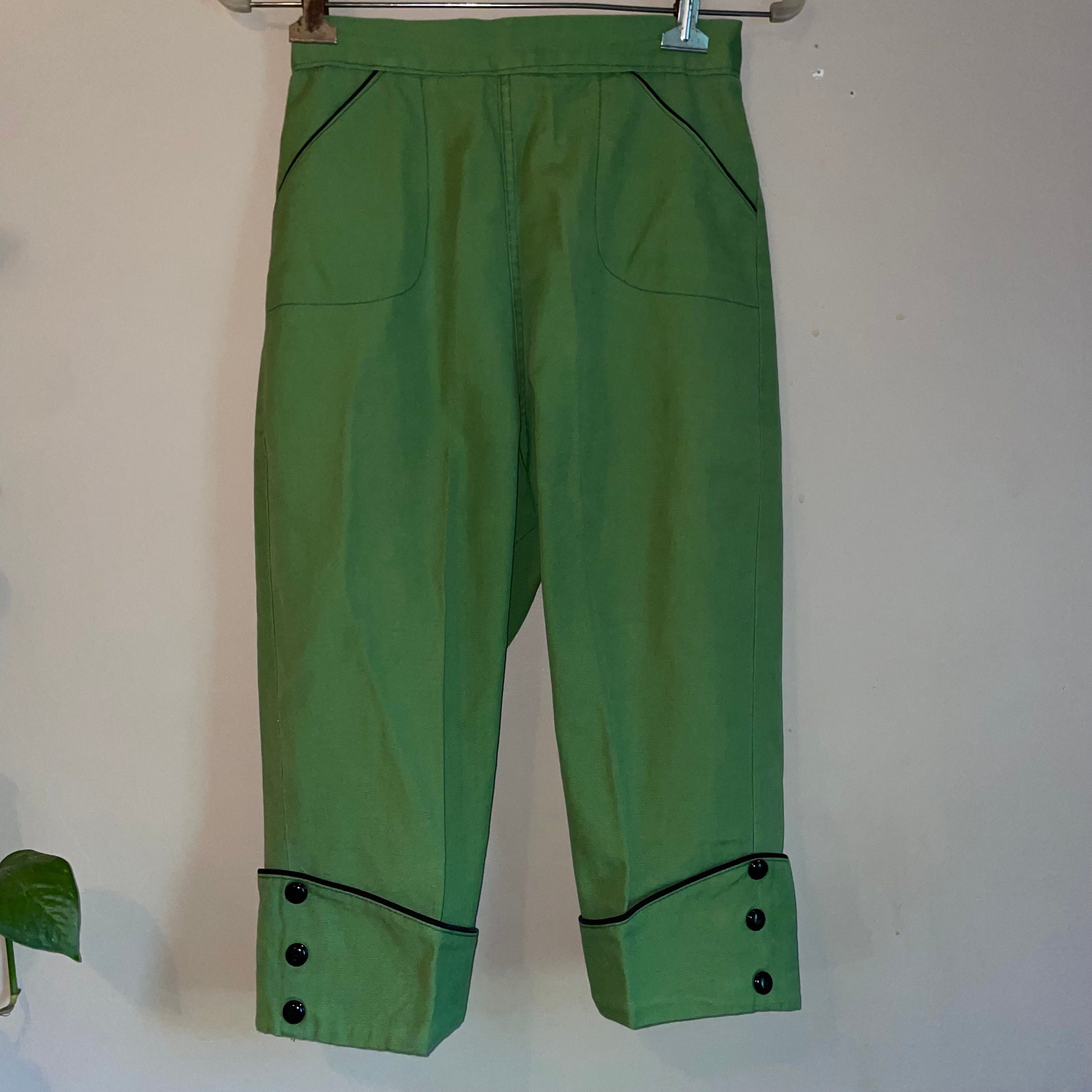 vtg 50sGREEN BLACK TRIM Pants // vintage pedal pusher denim jeans high waisted 50s rockabilly pin up long shorts capris summer retro shorts