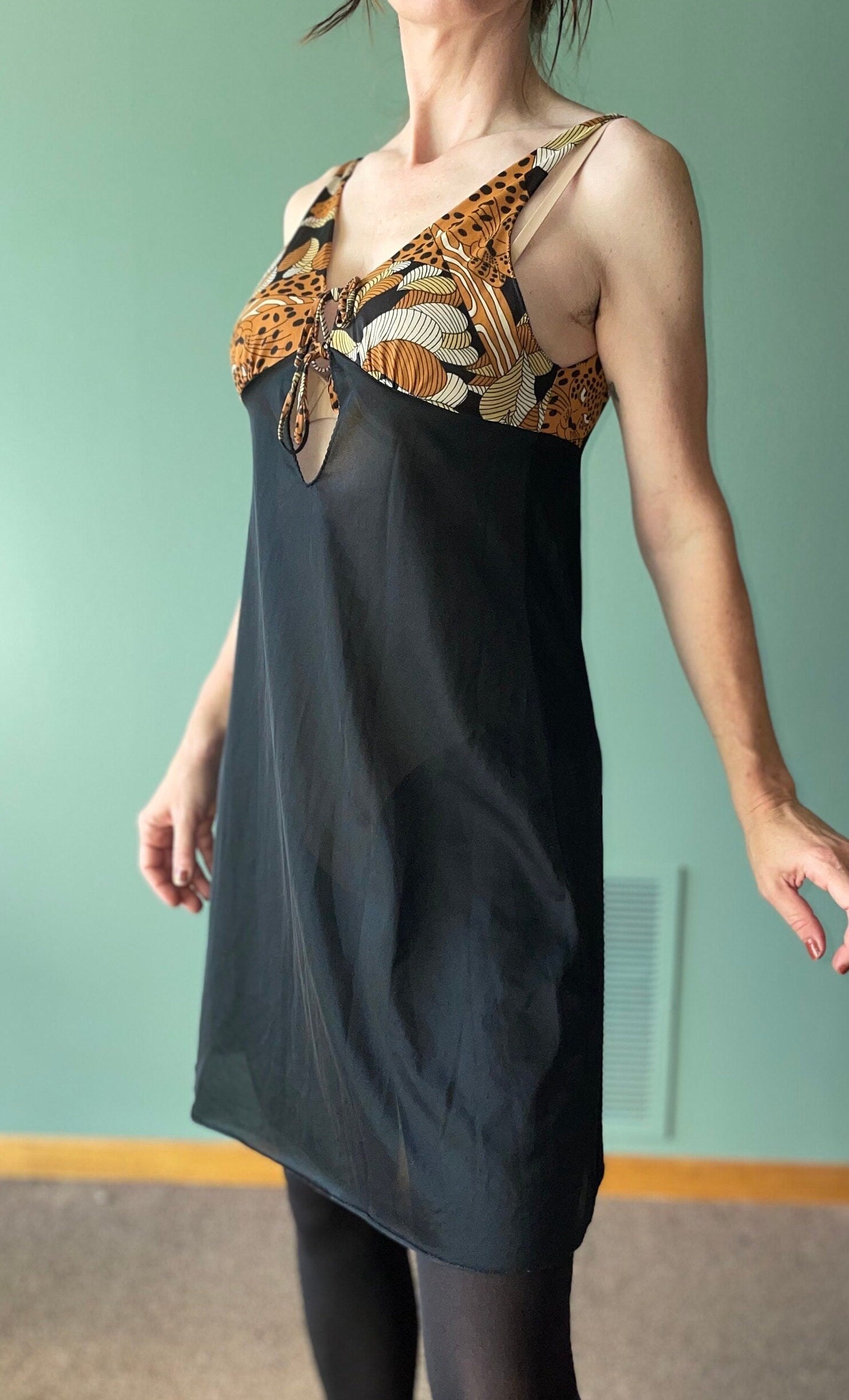 vtg 60s ANIMAL PRINT SLIP Dress // vintage mistee brand medium front tie sheer mini dress camisole teddy nightgown flowy sexy lingerie top