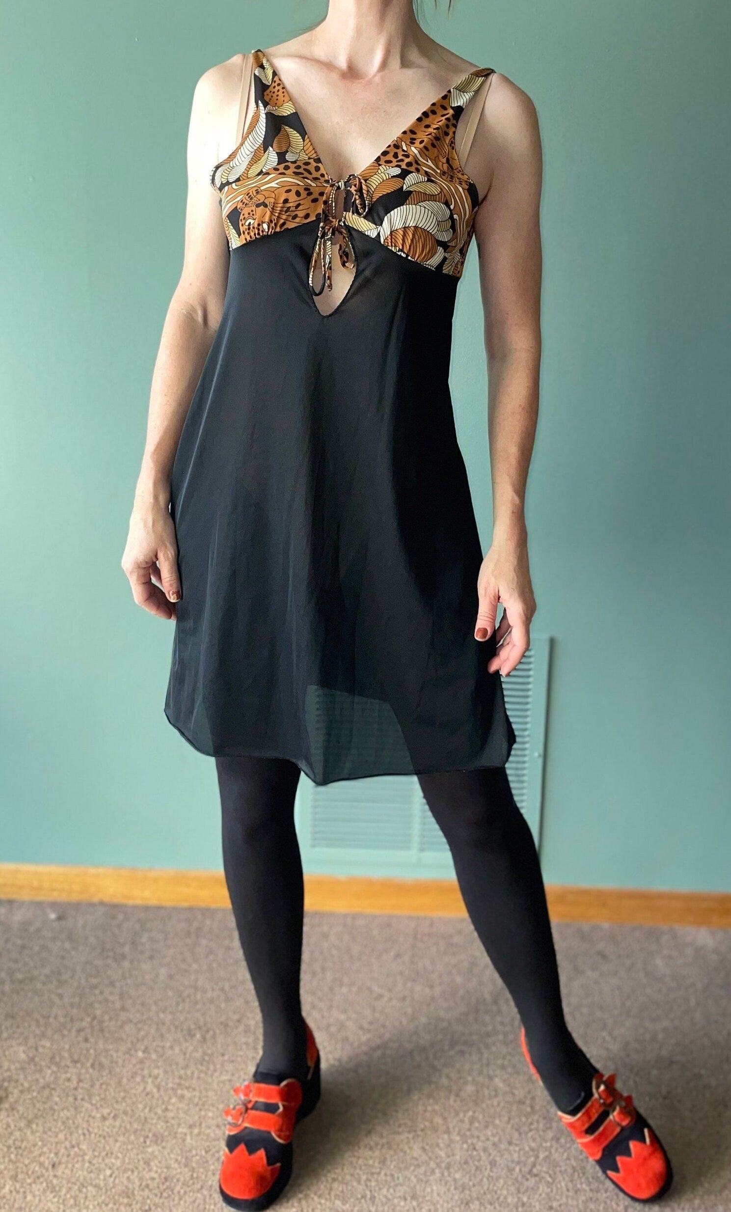 Vintage 50s 60s Animal Print Slip / Front Tie Sheer Mini Dress / Gothic Halloween Party Dress / 50s Nightgown Teddie Slip Robe Loungewear