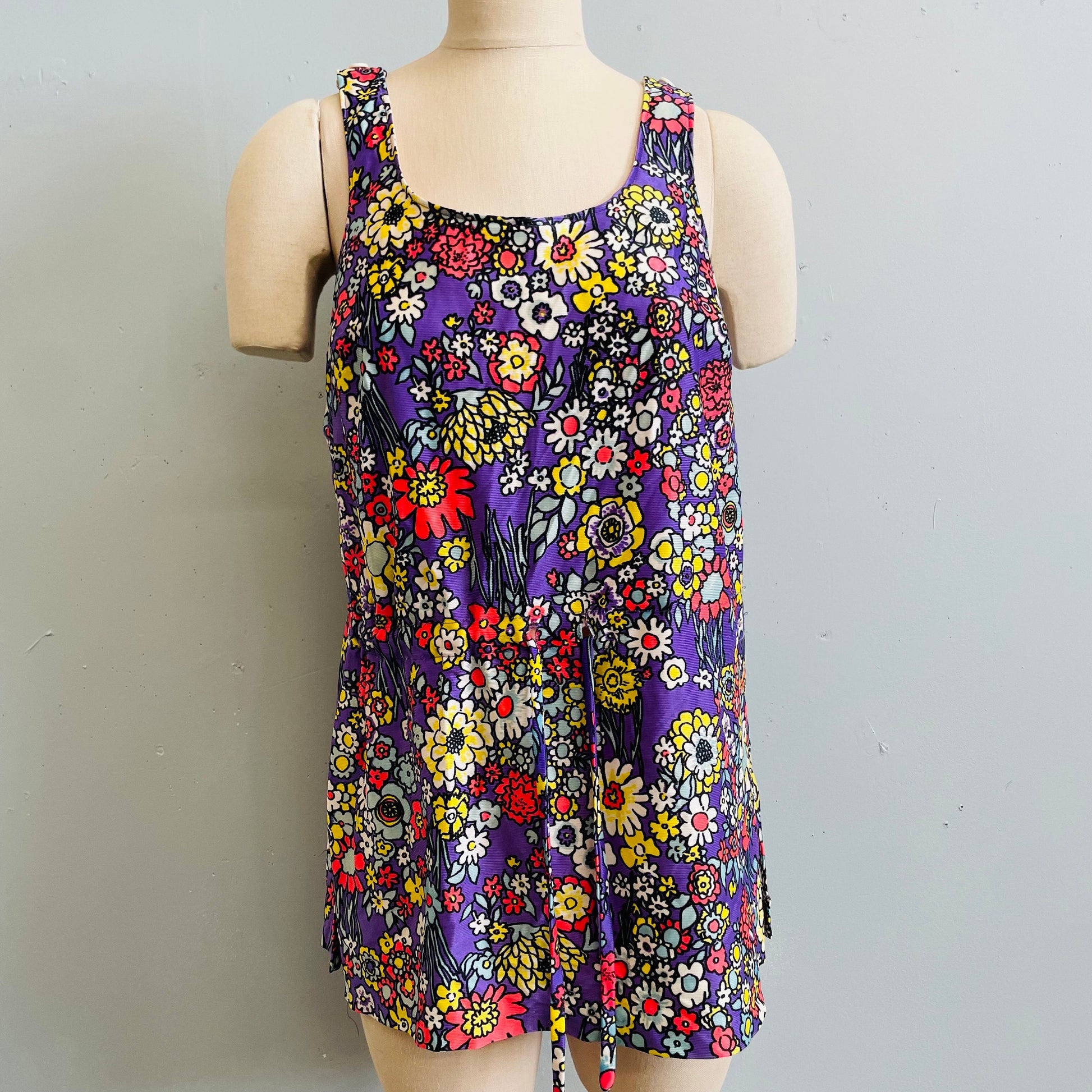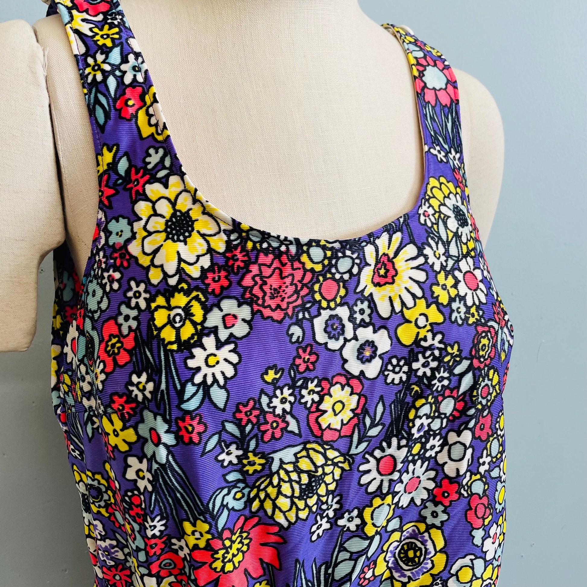 vtg 60s flower power swim dress AS IS retro mod tank beach dress nylon psychedelic hippie style beach cover up summer mini dress JC Penney