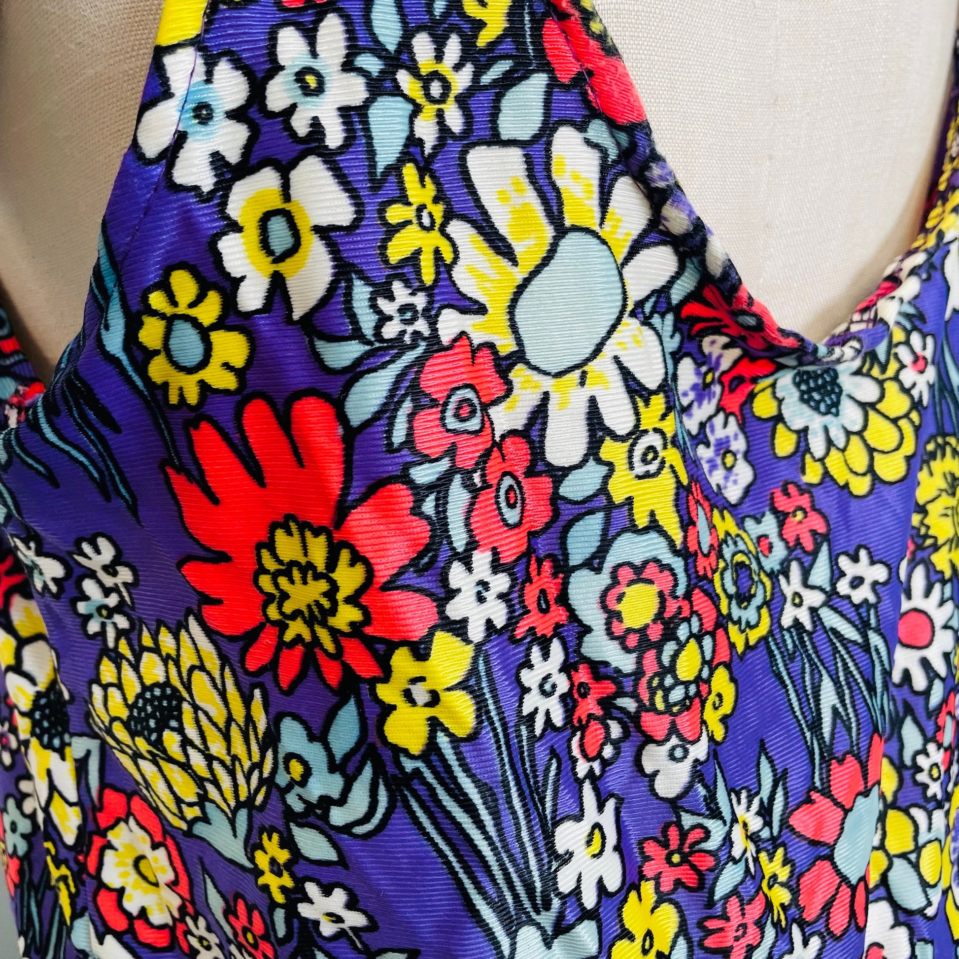 vtg 60s flower power swim dress AS IS retro mod tank beach dress nylon psychedelic hippie style beach cover up summer mini dress AS IS !!