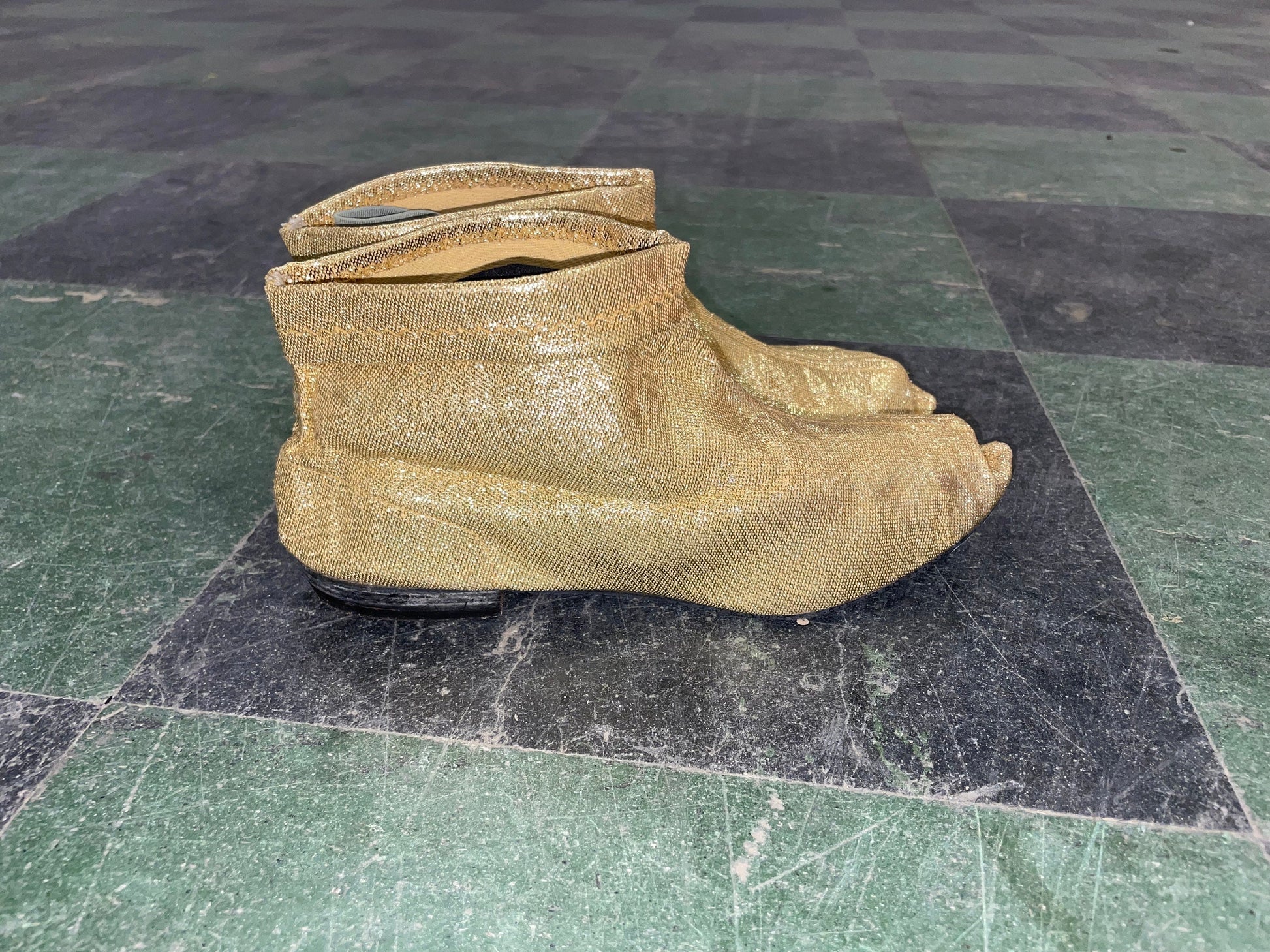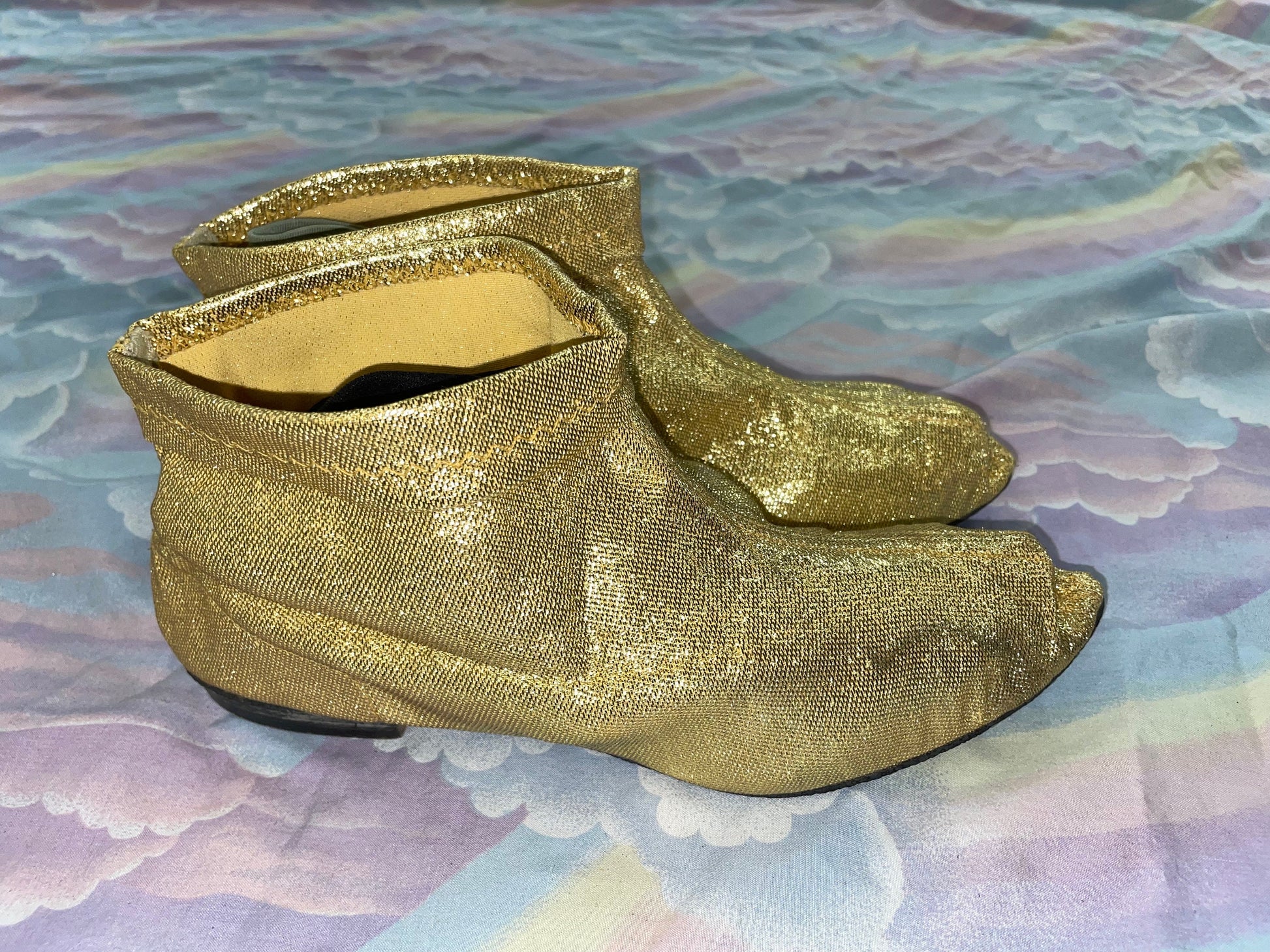 vtg 60s GOLD LUREX ANKLE Boots // vintage munsingwear sparkly gold booties glittery sequin nancy sinatra glam rock disco ball halloween idea