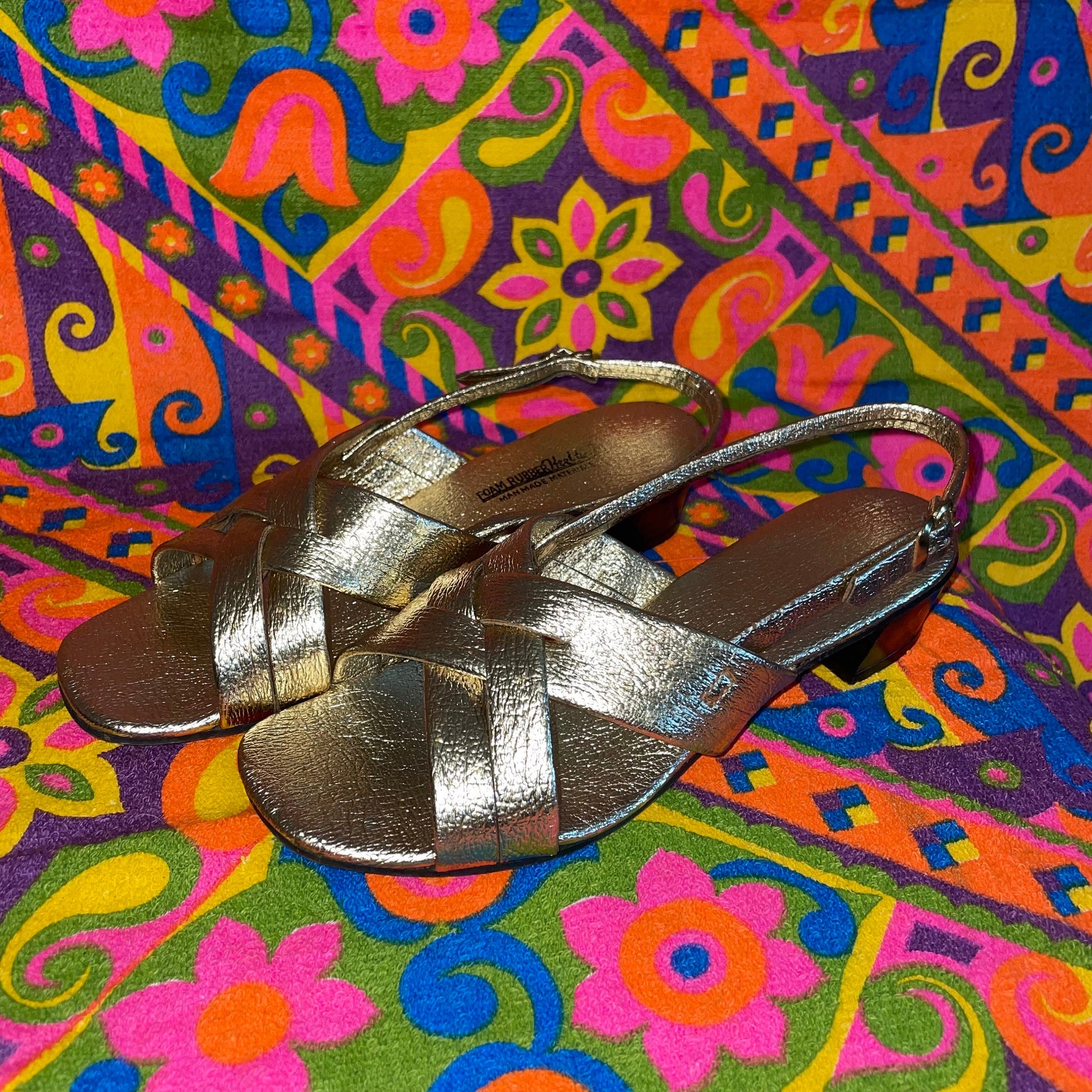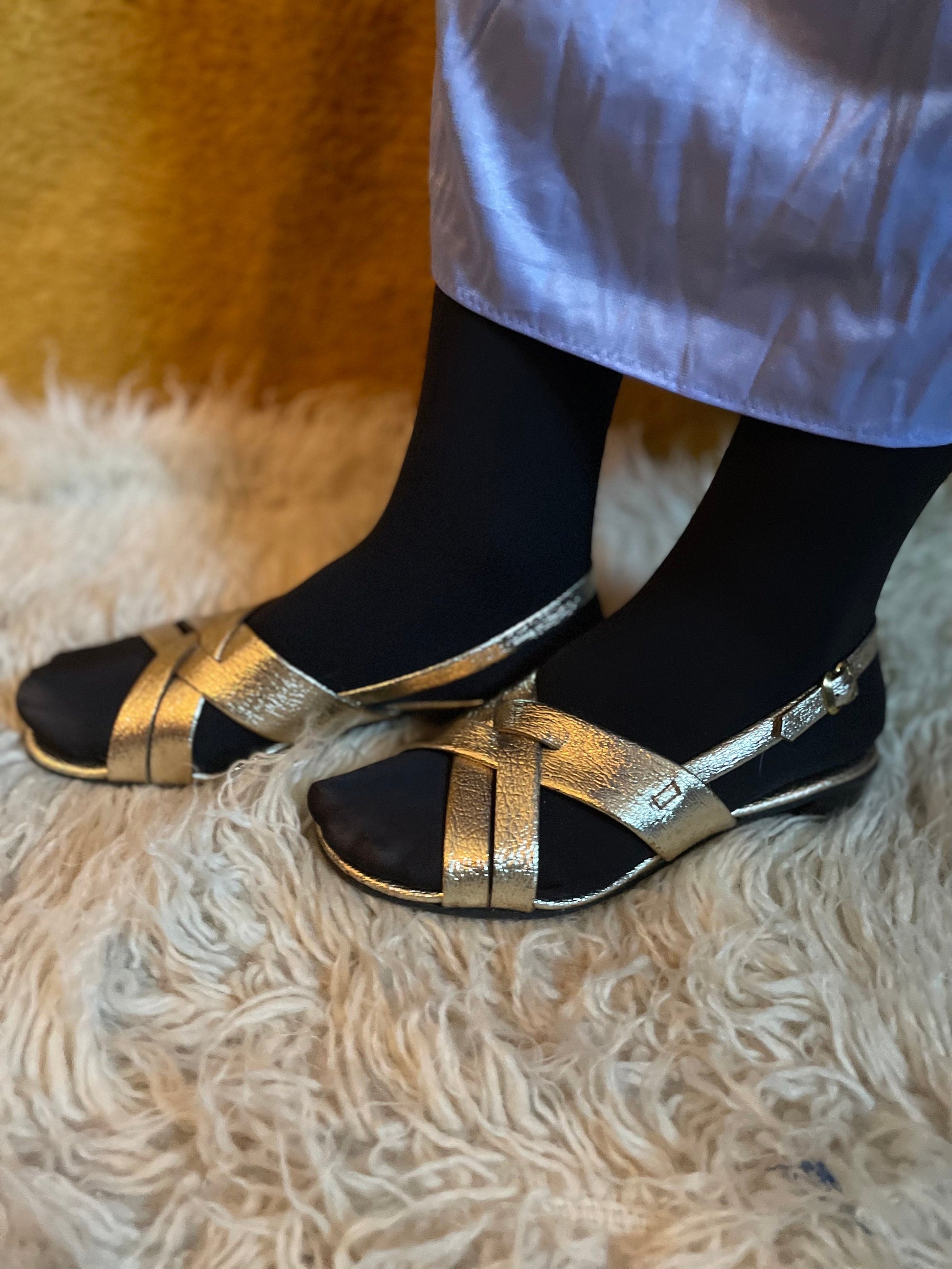 Vintage 60s metallic gold sandals slingback slippers sparkly open toe pin up mod sandals glam