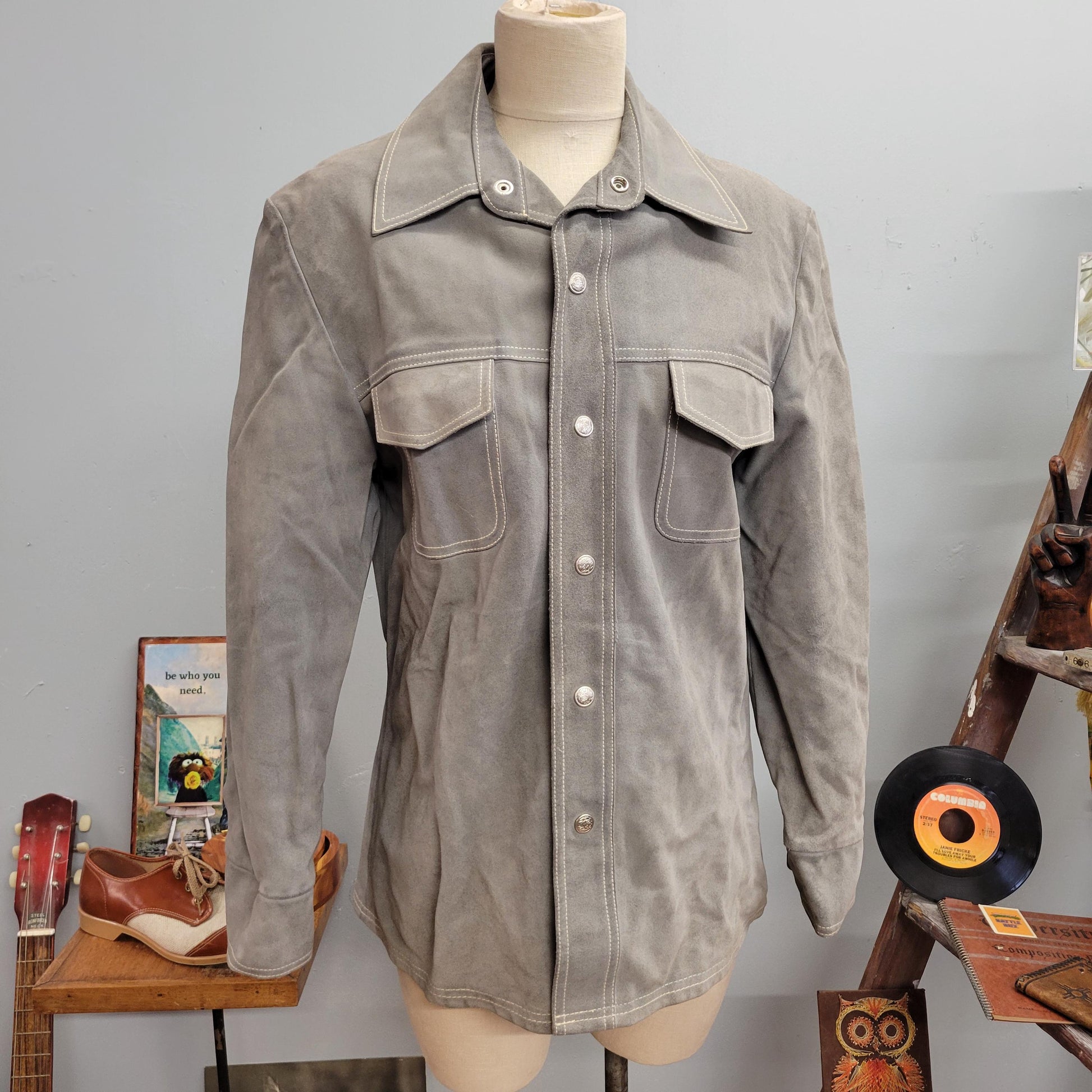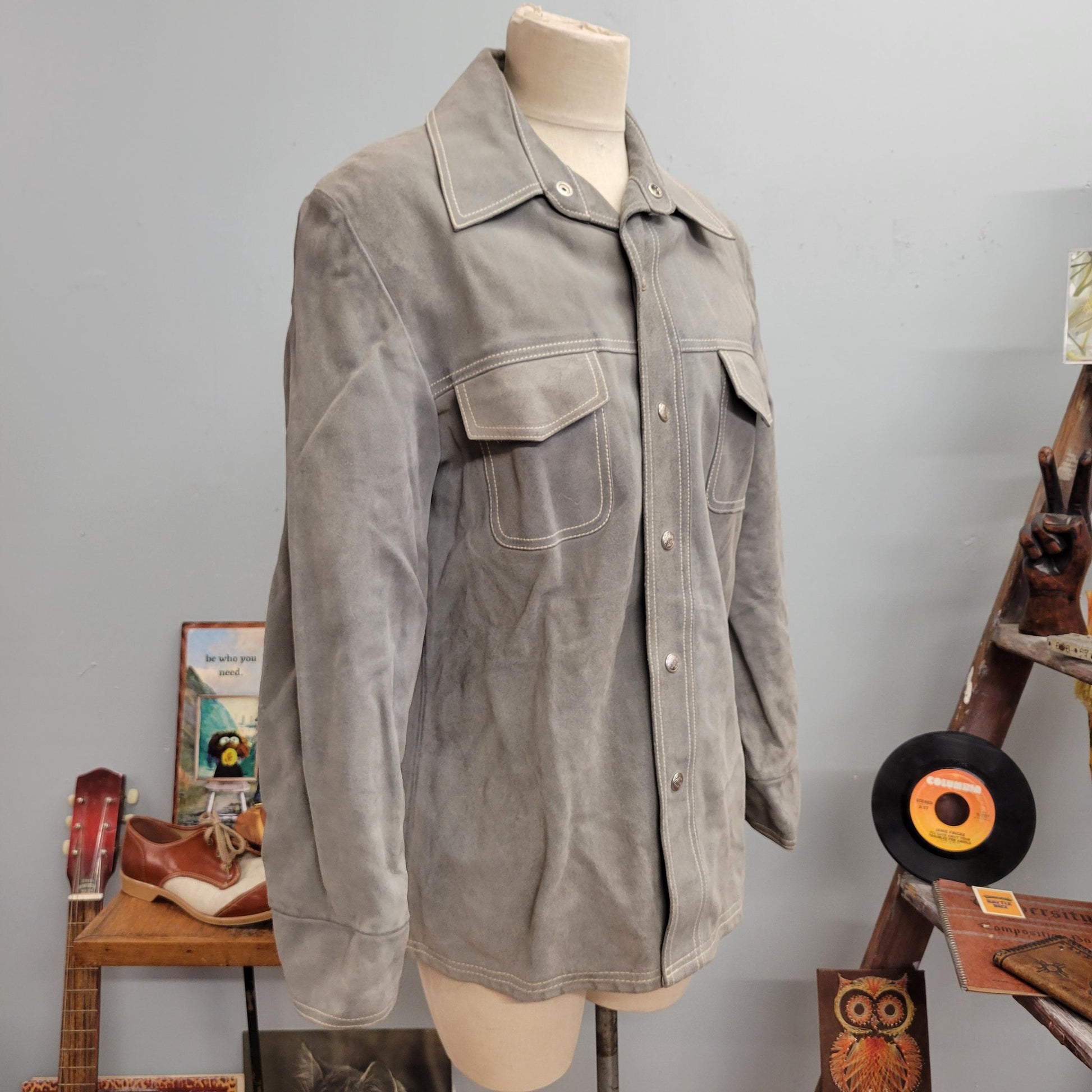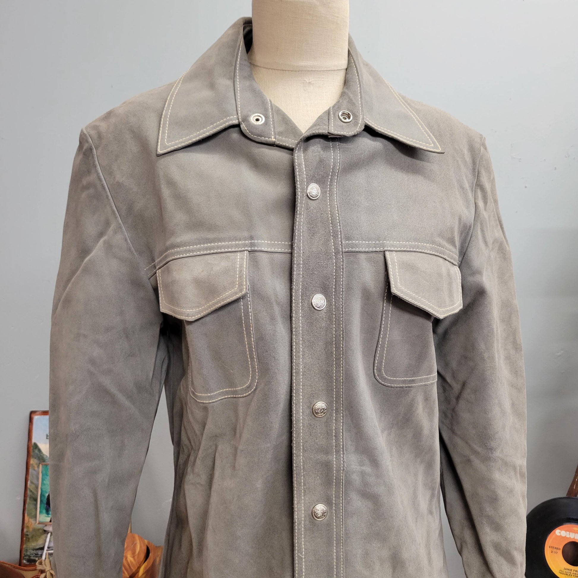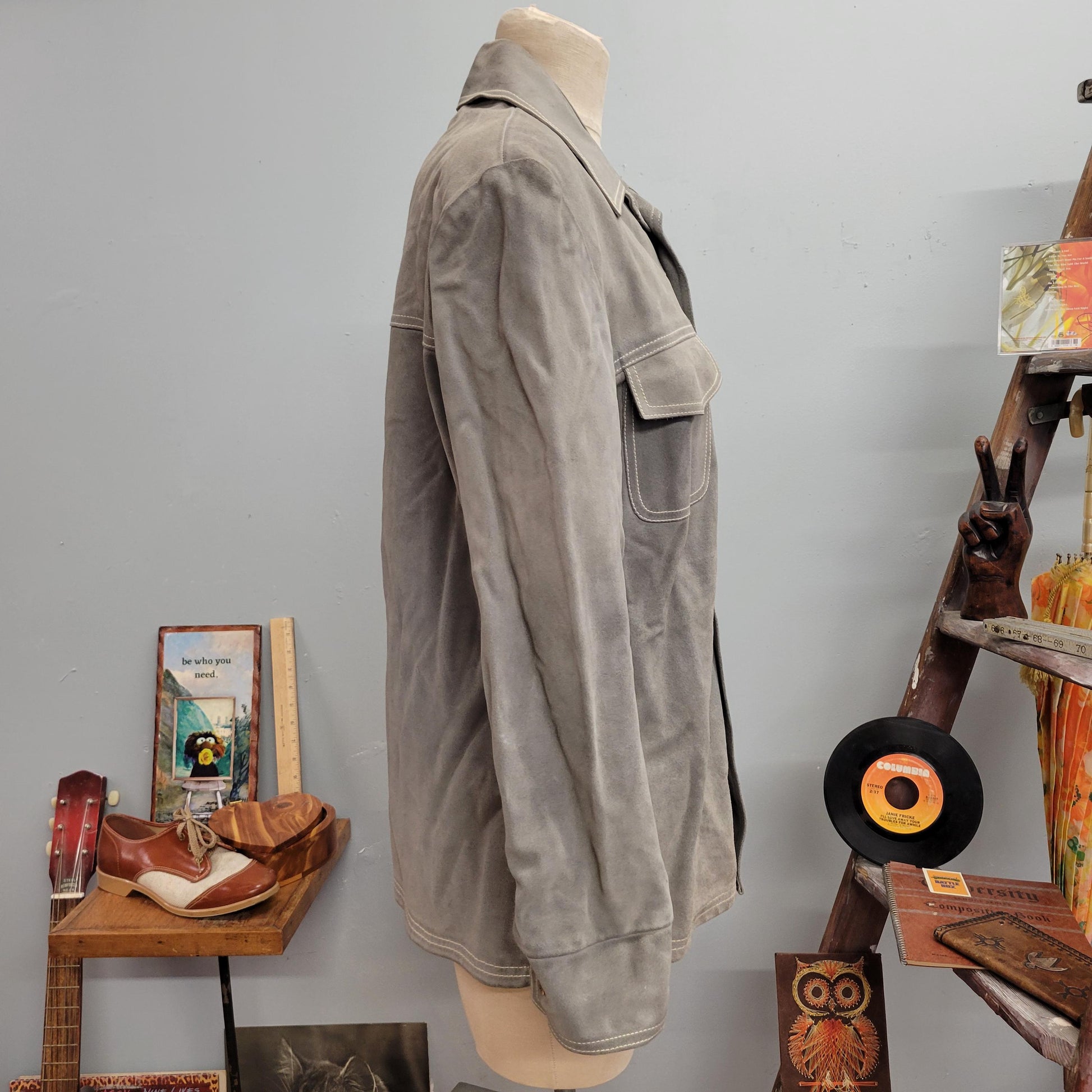 vtg 60s GRAY SUEDE JACKET // vintage hannys californian sportswear mens medium lined leather button up autumn nuback western style jacket