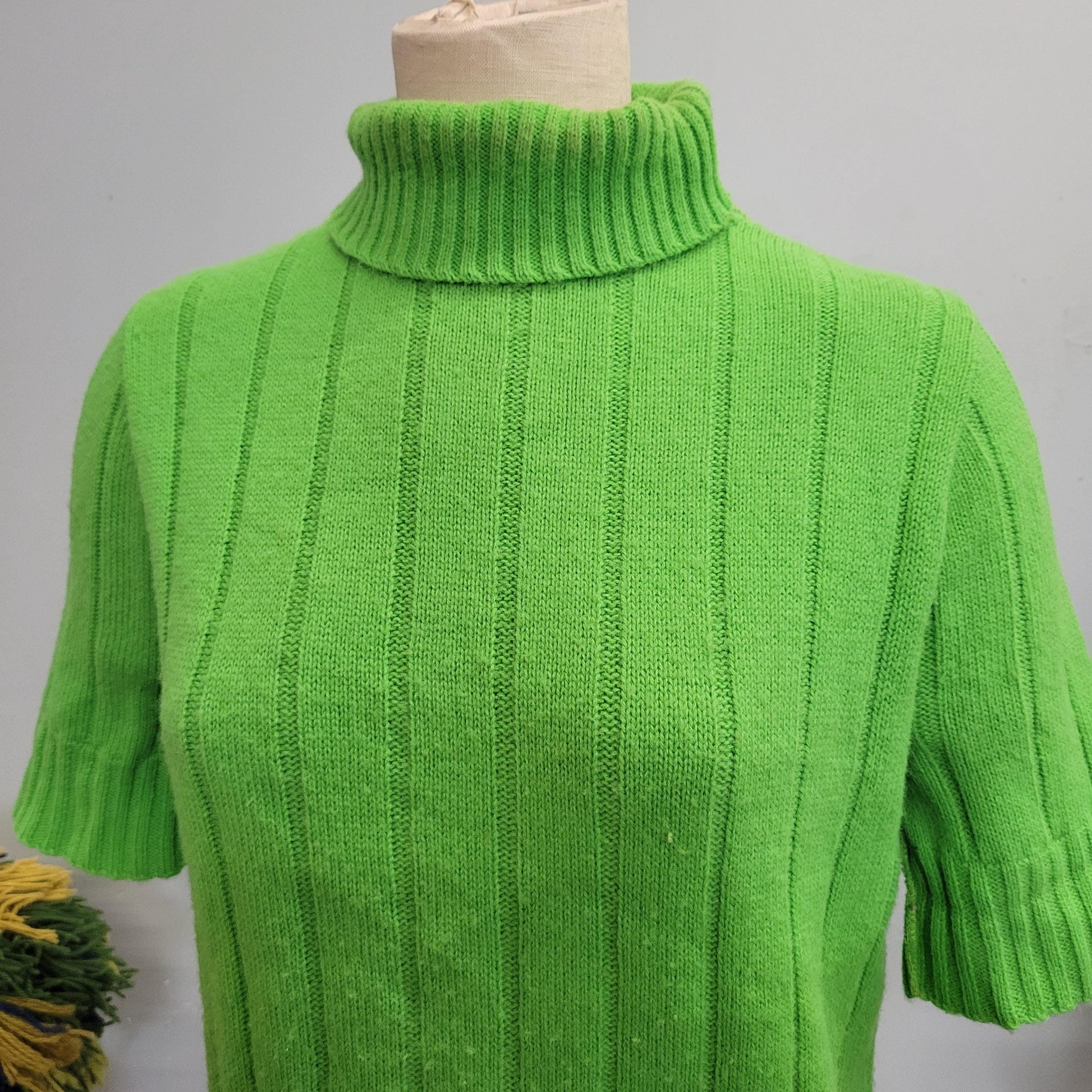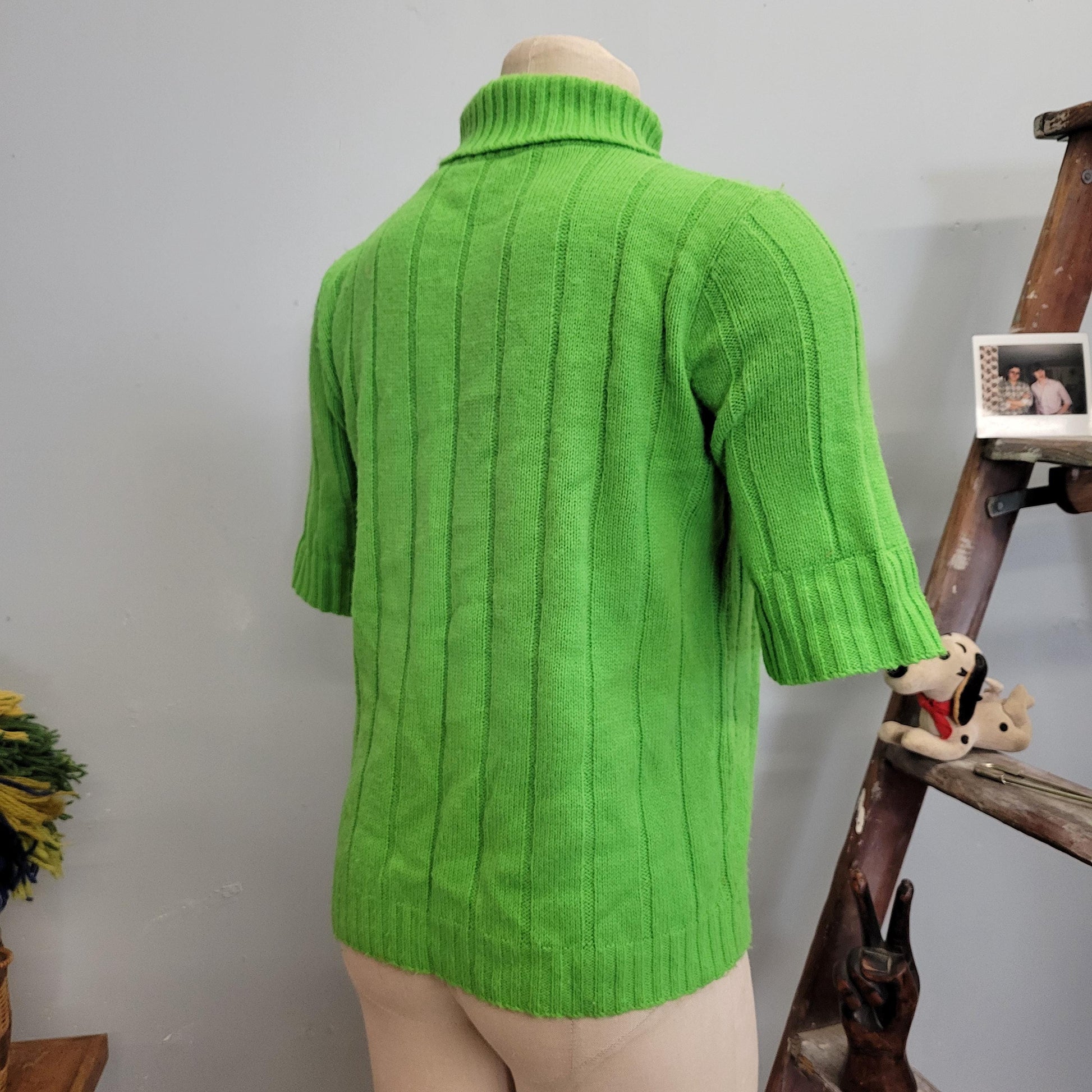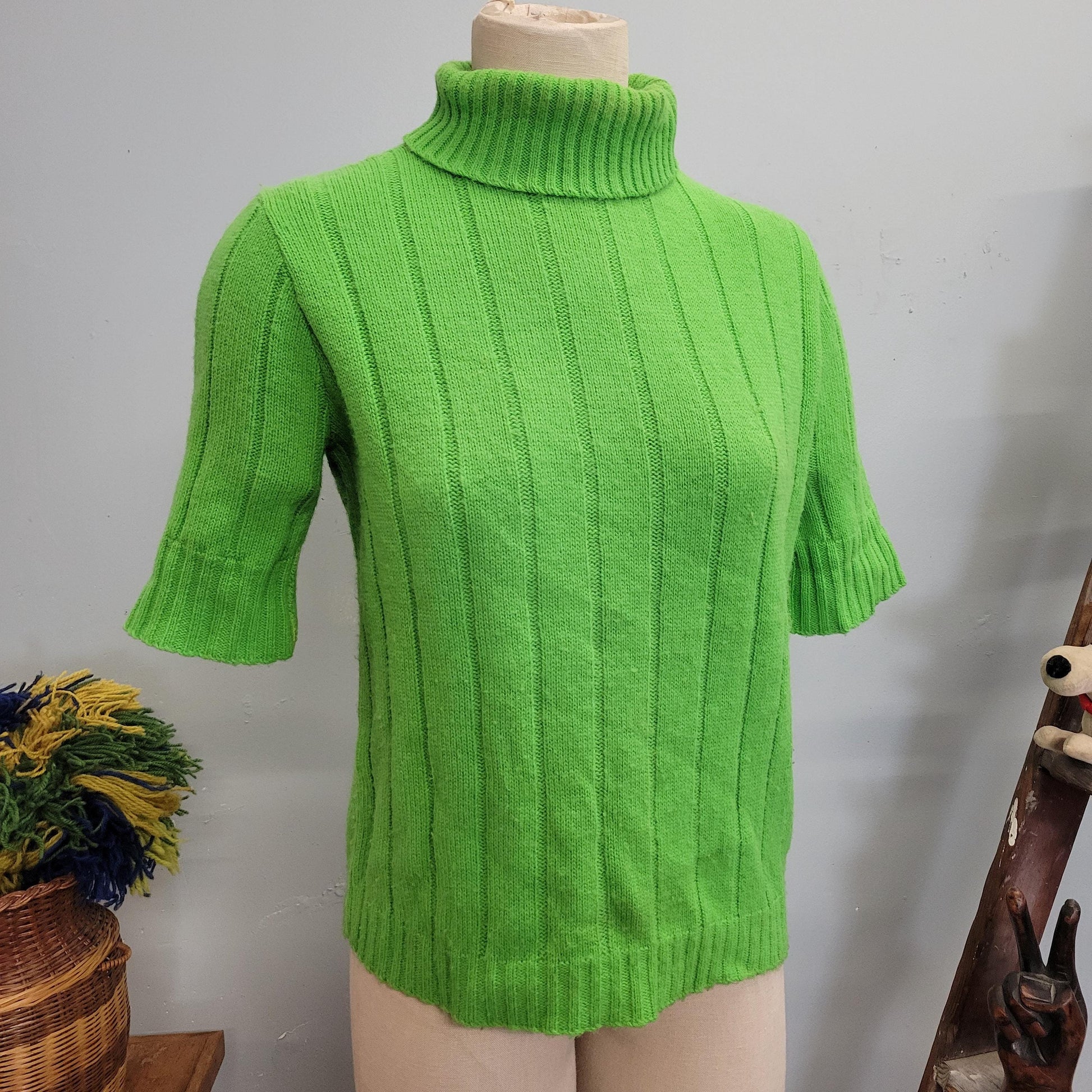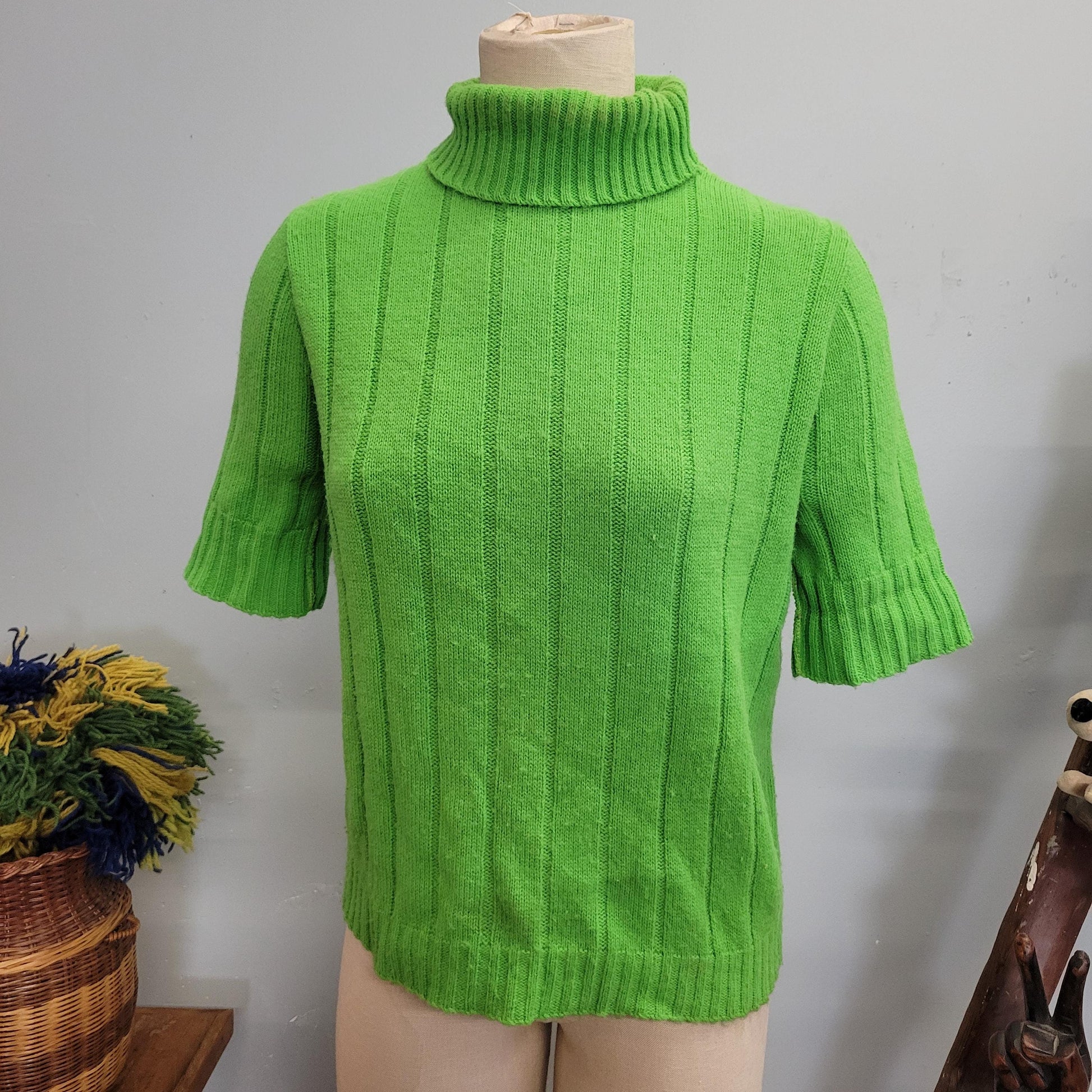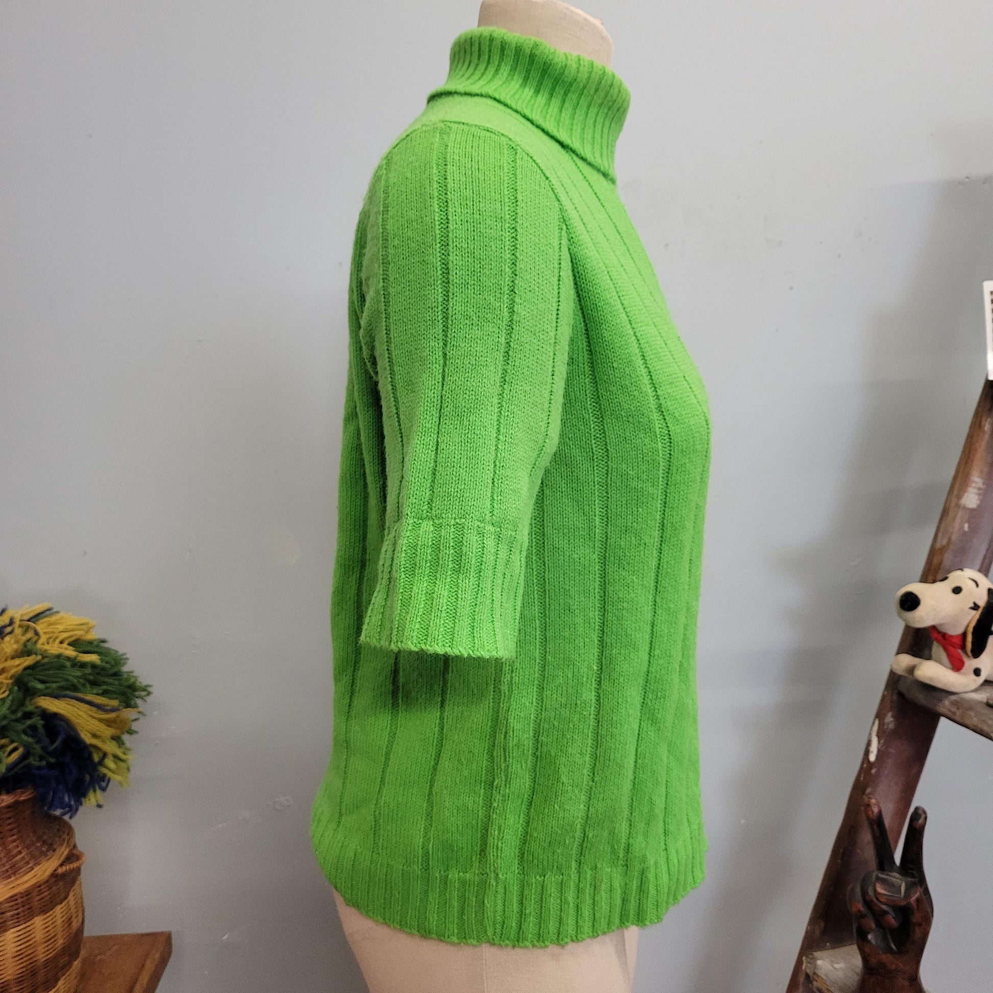 vtg 60s GREEN RIBBED SWEATER // vintage de mura medium womens bright lime green mod retro surfer syle cowl neck warm autumn casual cute top