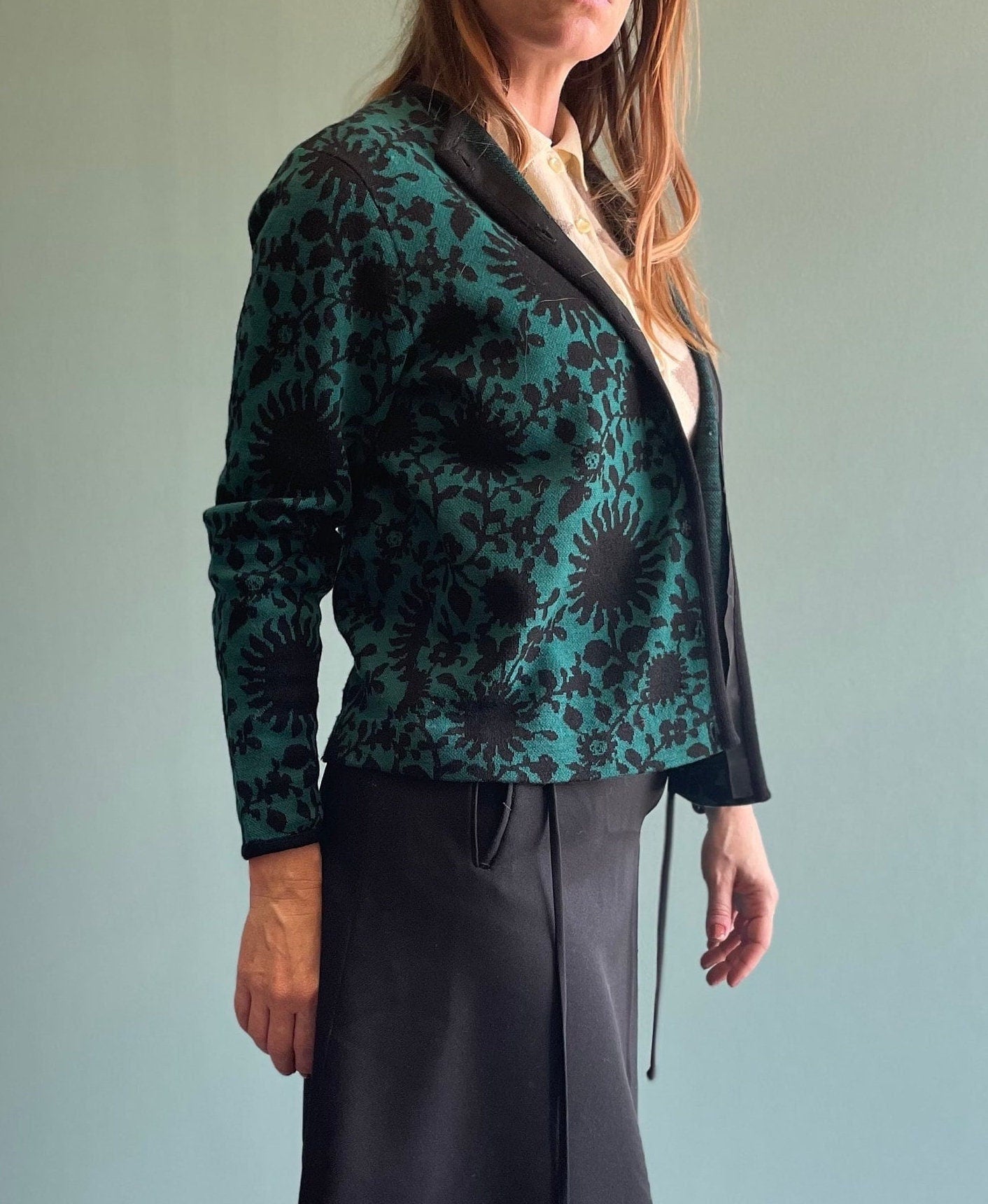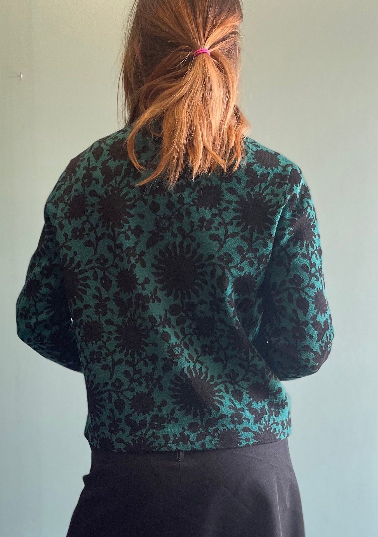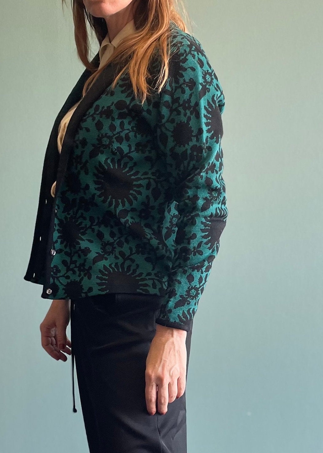 Vintage 60s Jantzen Cardigan / Abstract Print / Floral Sweater / Preppy Rockabilly Style Winter Cardigan