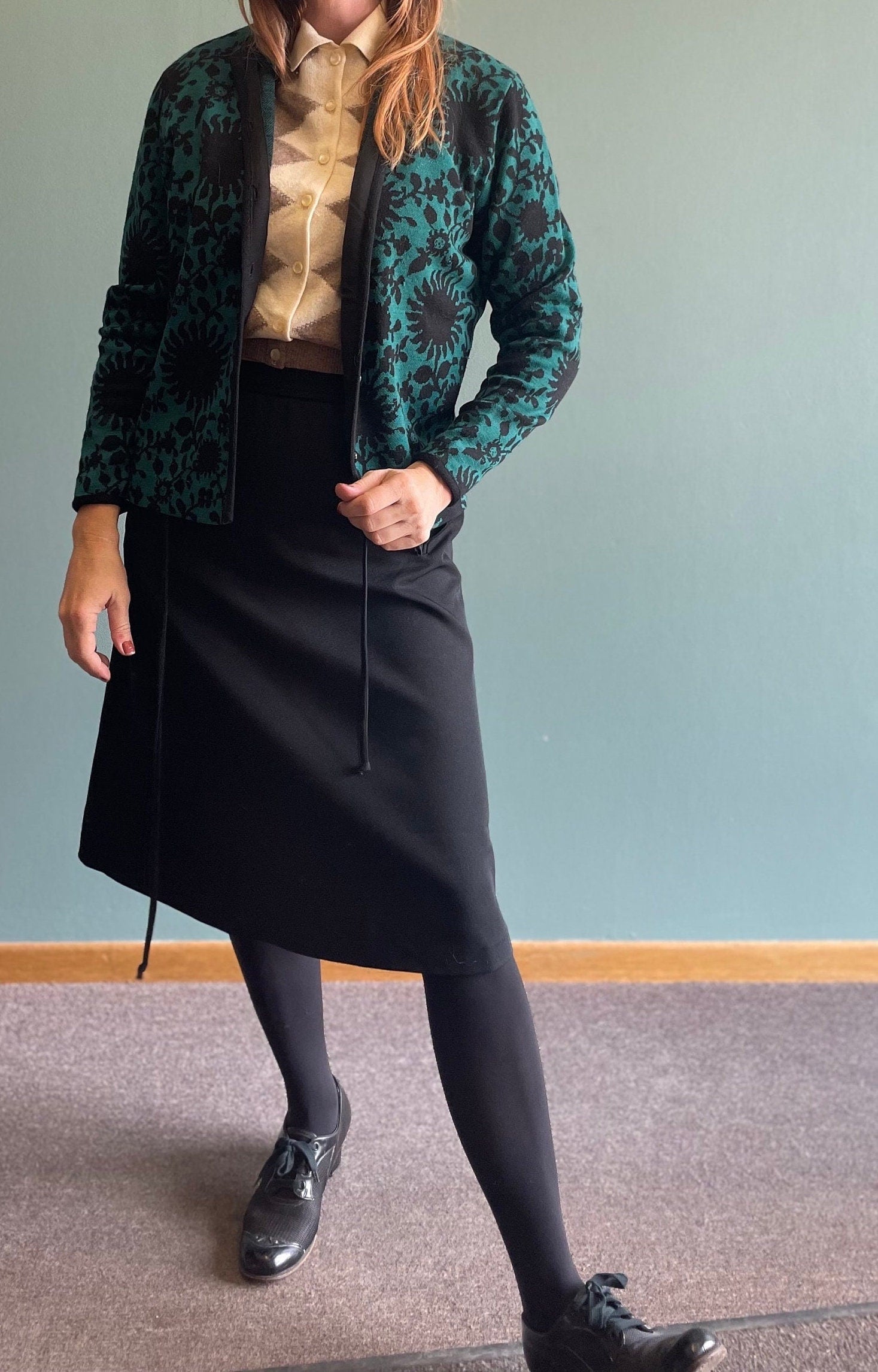 vtg 60s JANTZEN FLORAL CARDIGAN // vintage abstract pattern preppy rockabilly style winter sweater blue & black pattern autumn vibes teacher