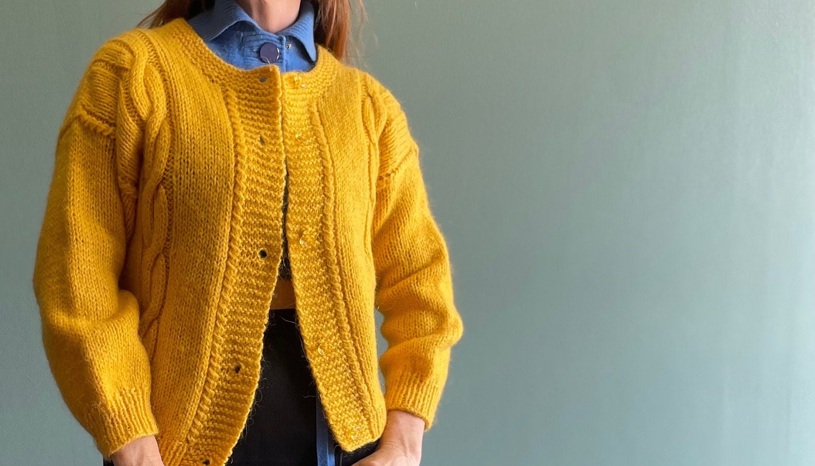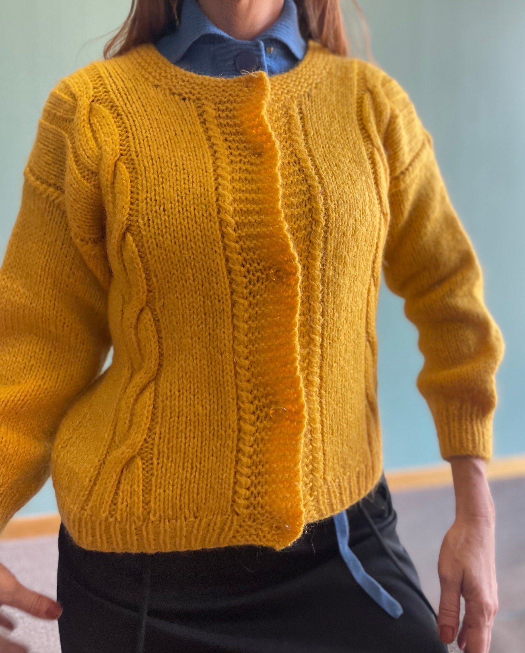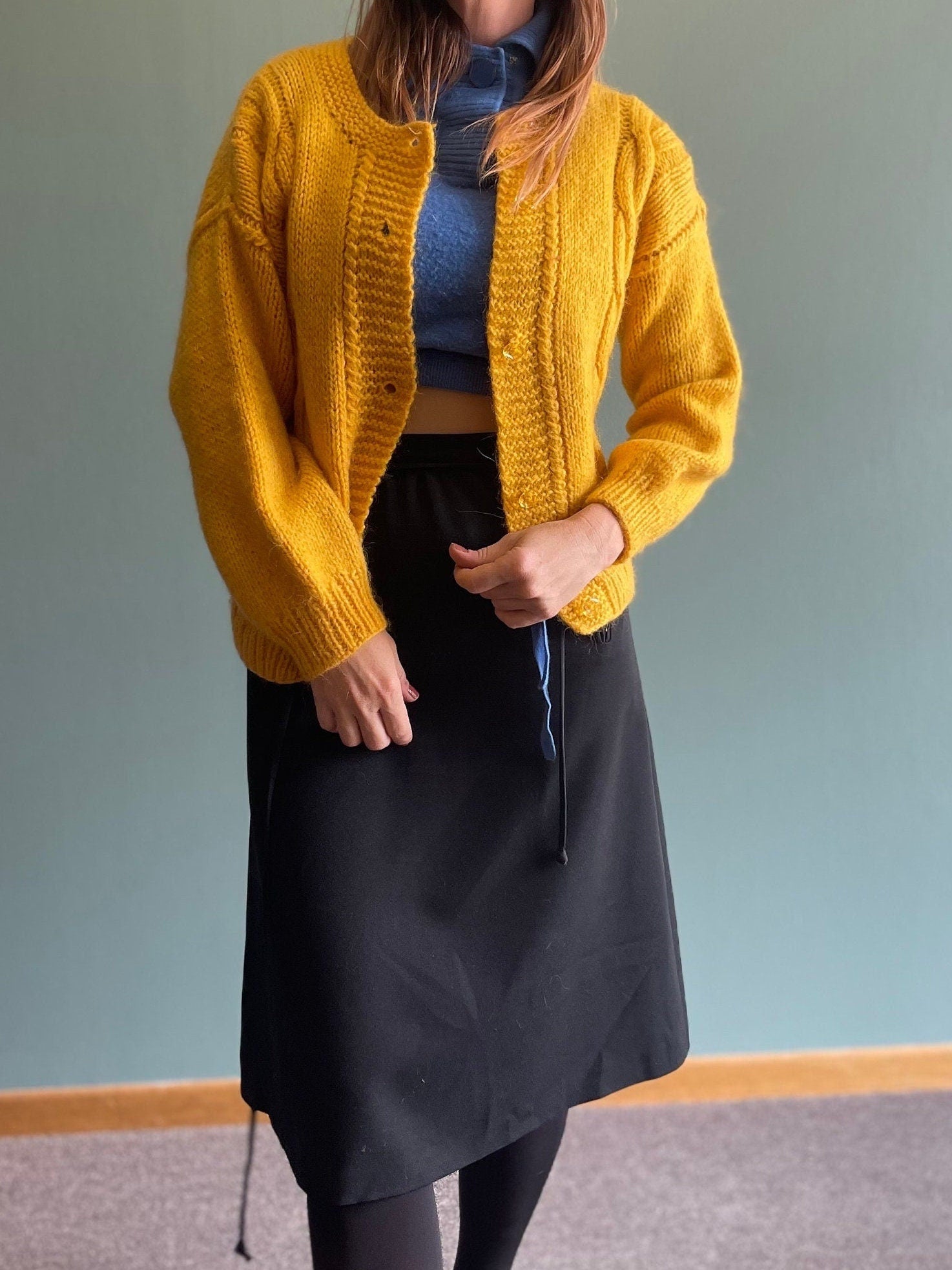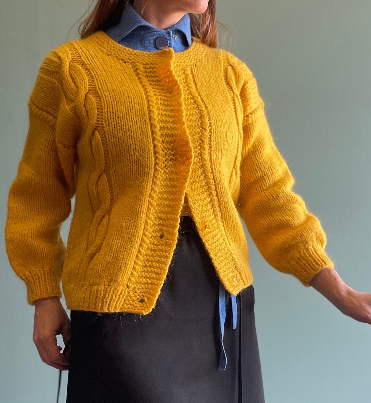 vtg 60s MARIGOLD MOHAIR CARDIGAN // vintage mustard yellow fuzzy cable knit jewel tones minimalist preppy rockabilly secretary teacher