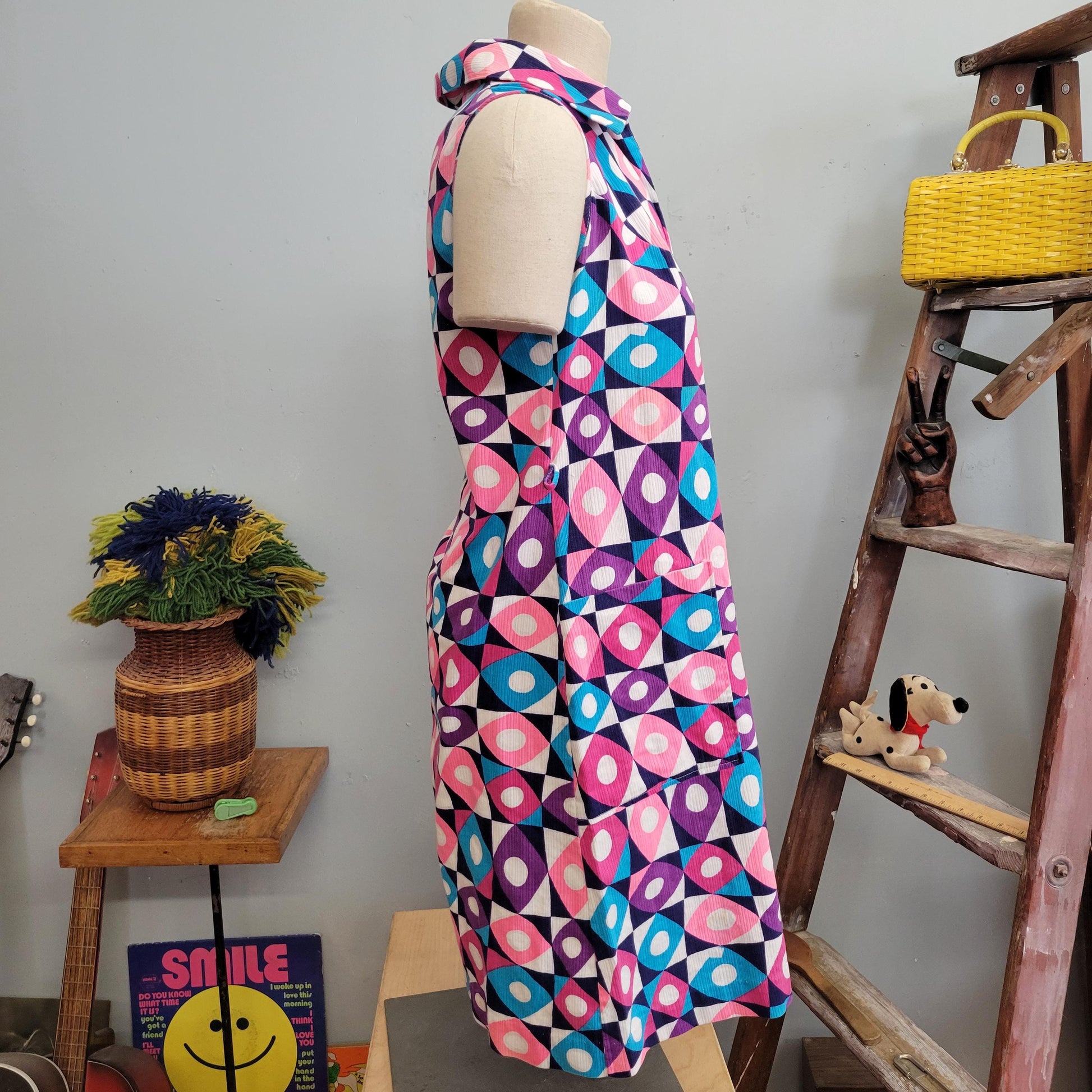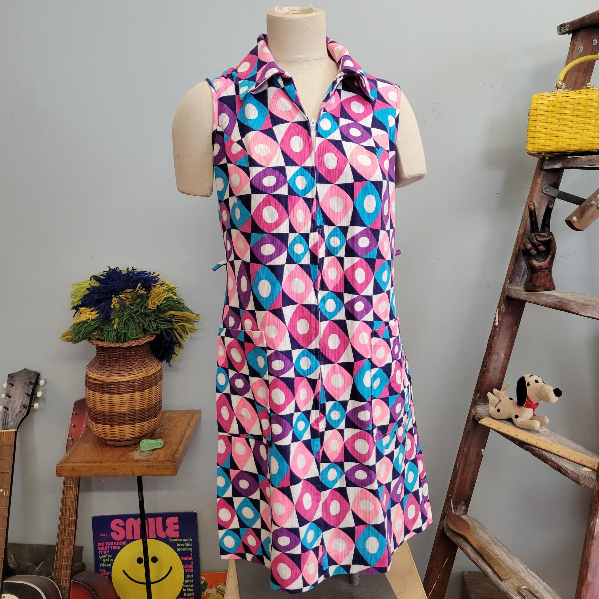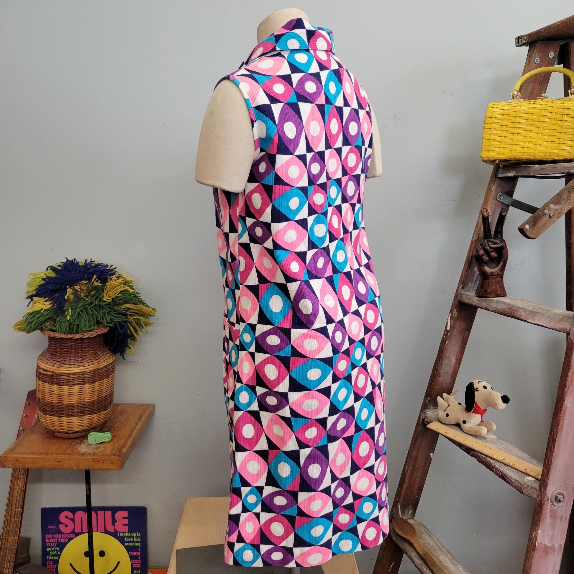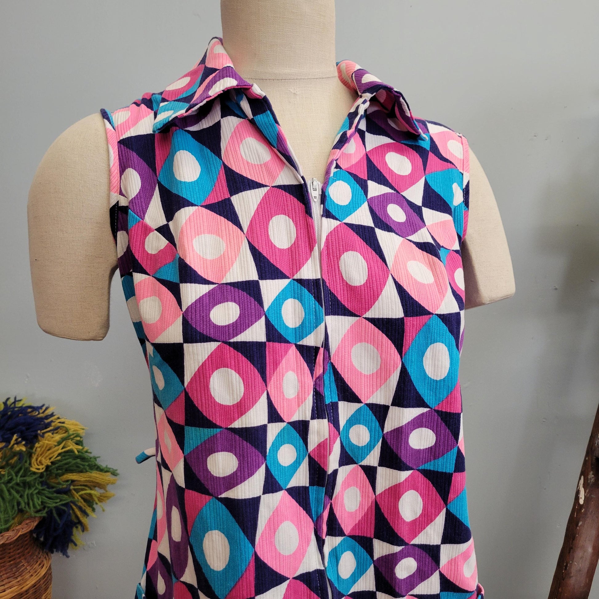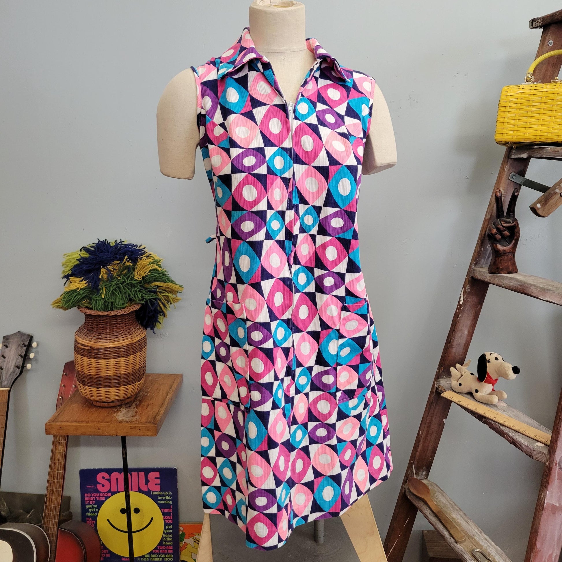 vtg 60s MOD OP ART Dress // vintage komar geometric pink white retro space age psychedelic mini shift dress zip up collar autumn fashion