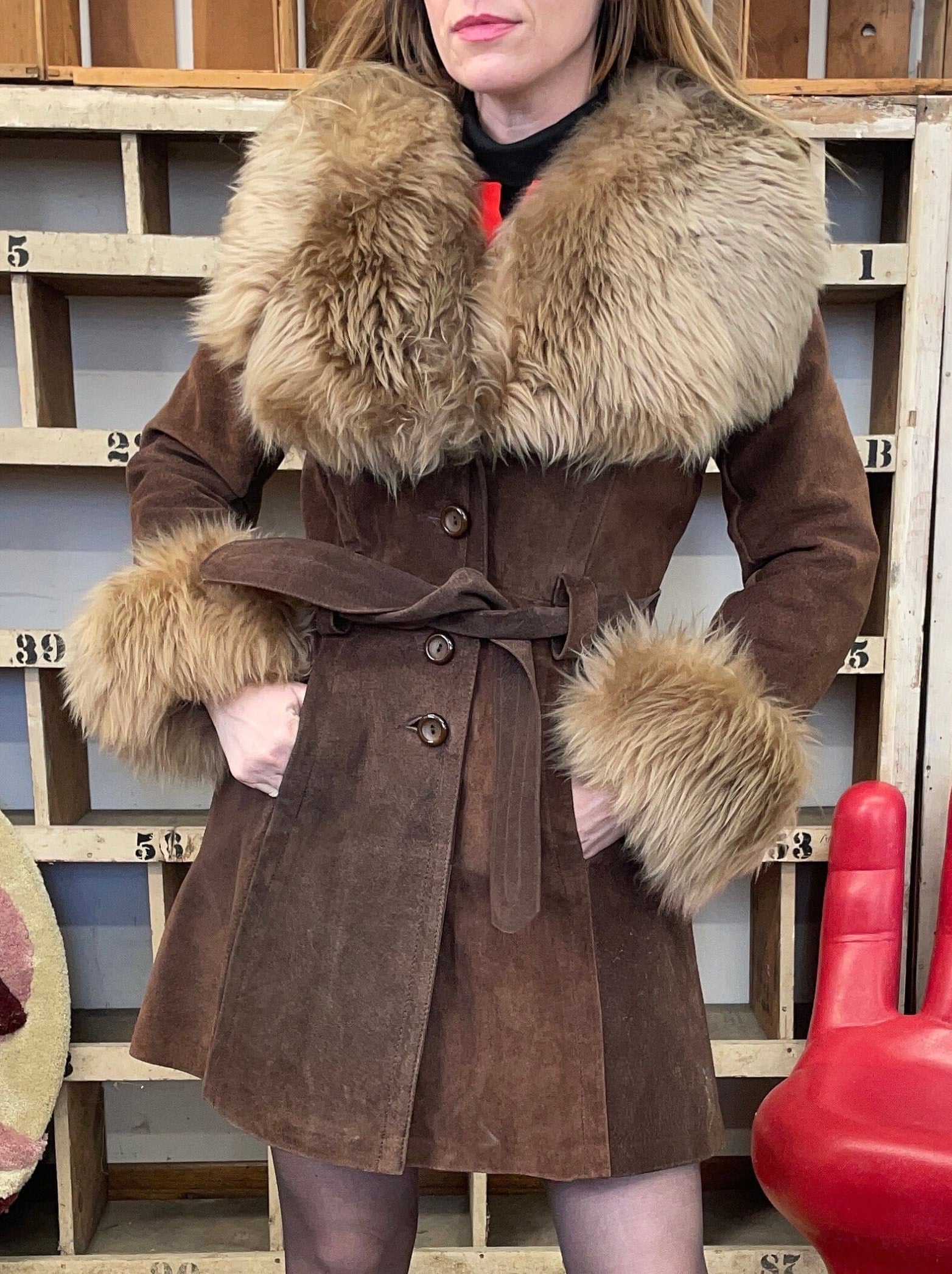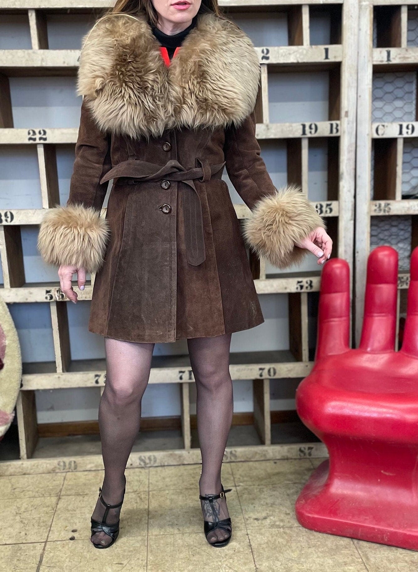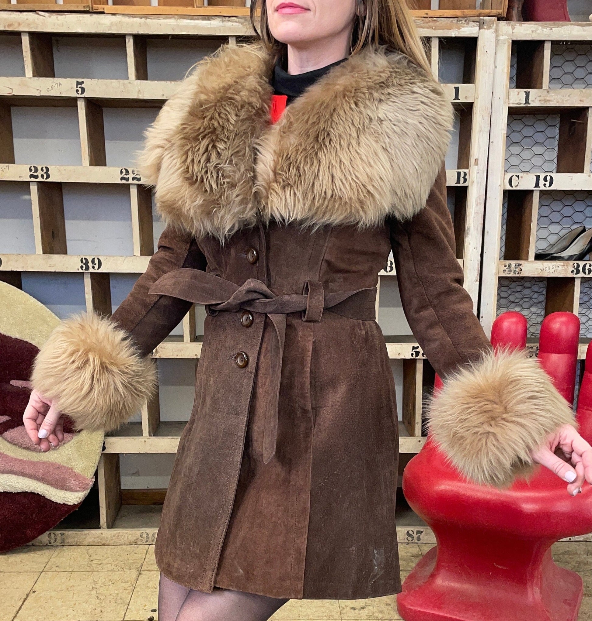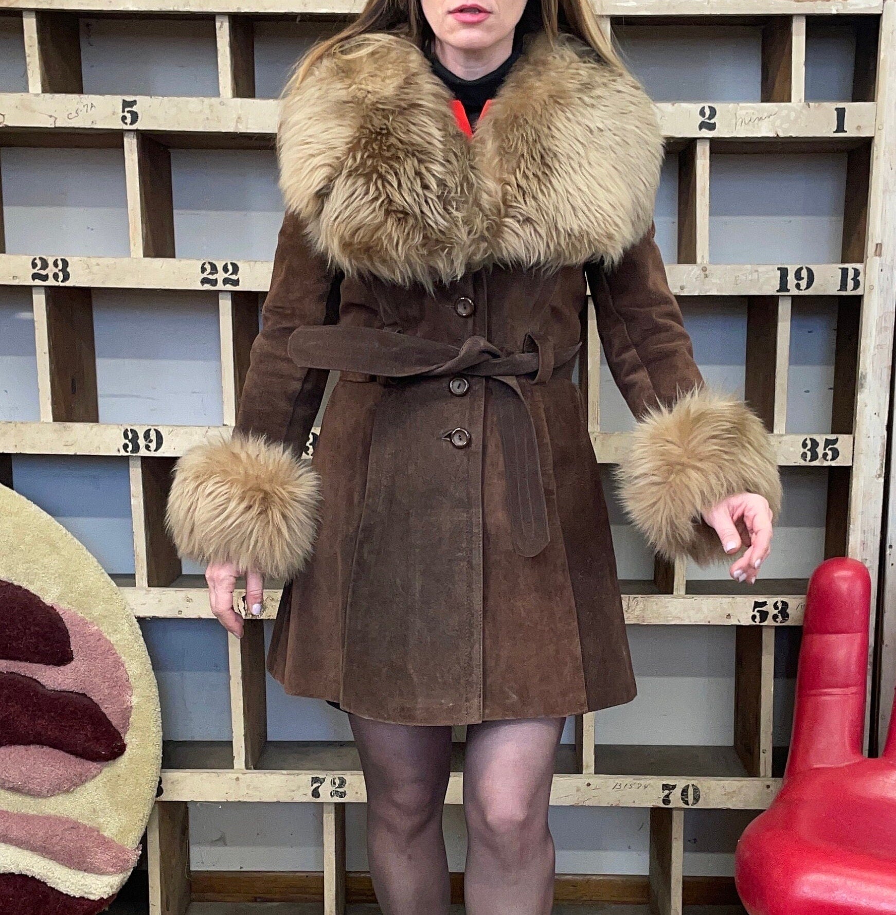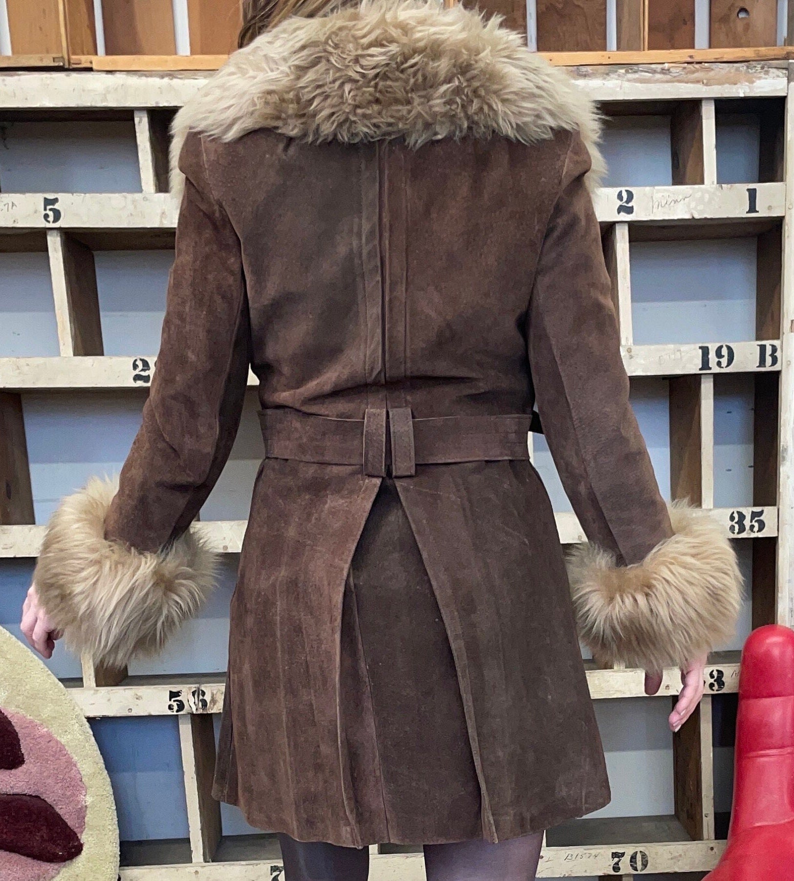 Vintage 60s 70s brown suede penny lane glam coat