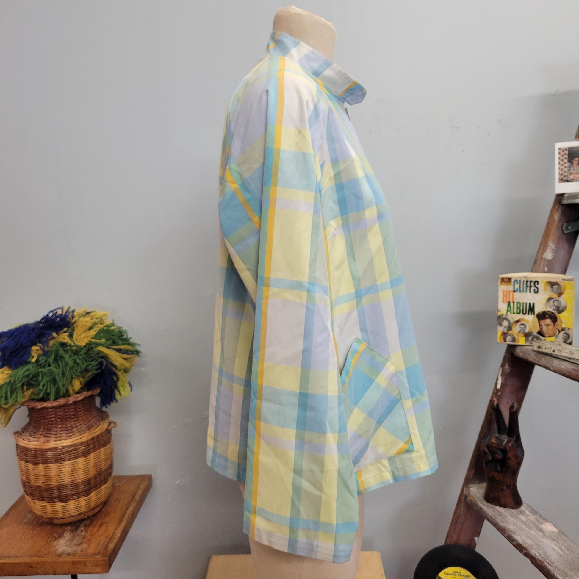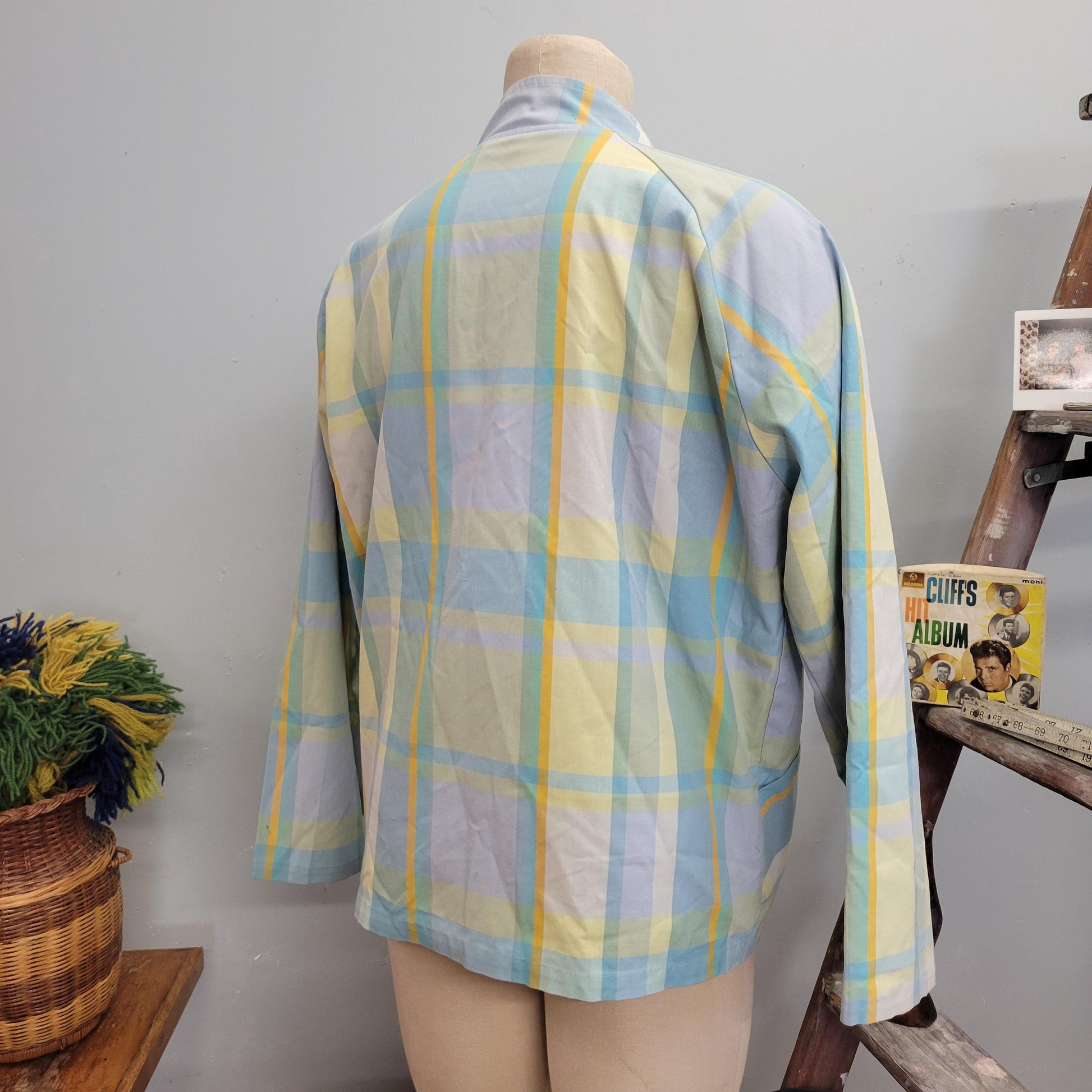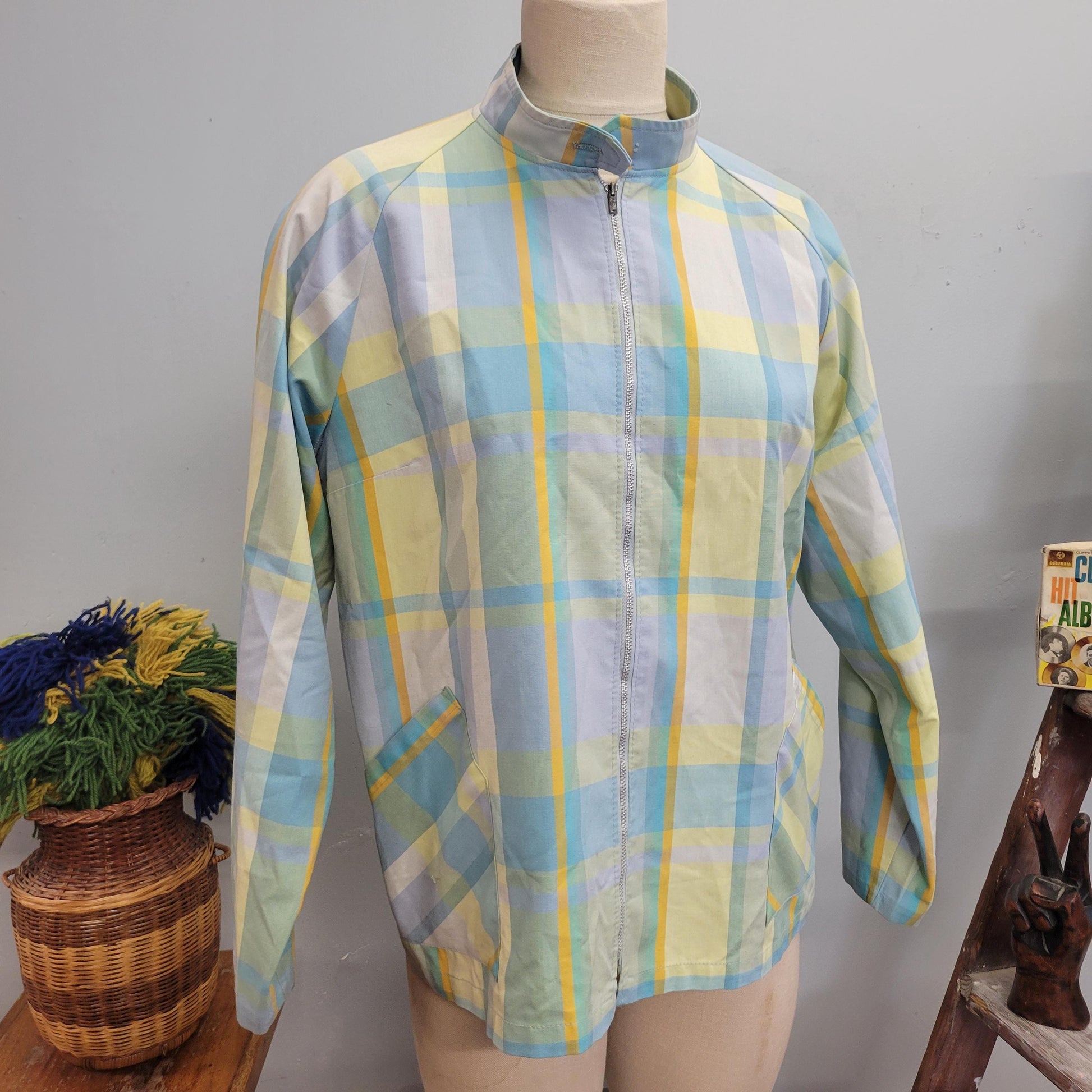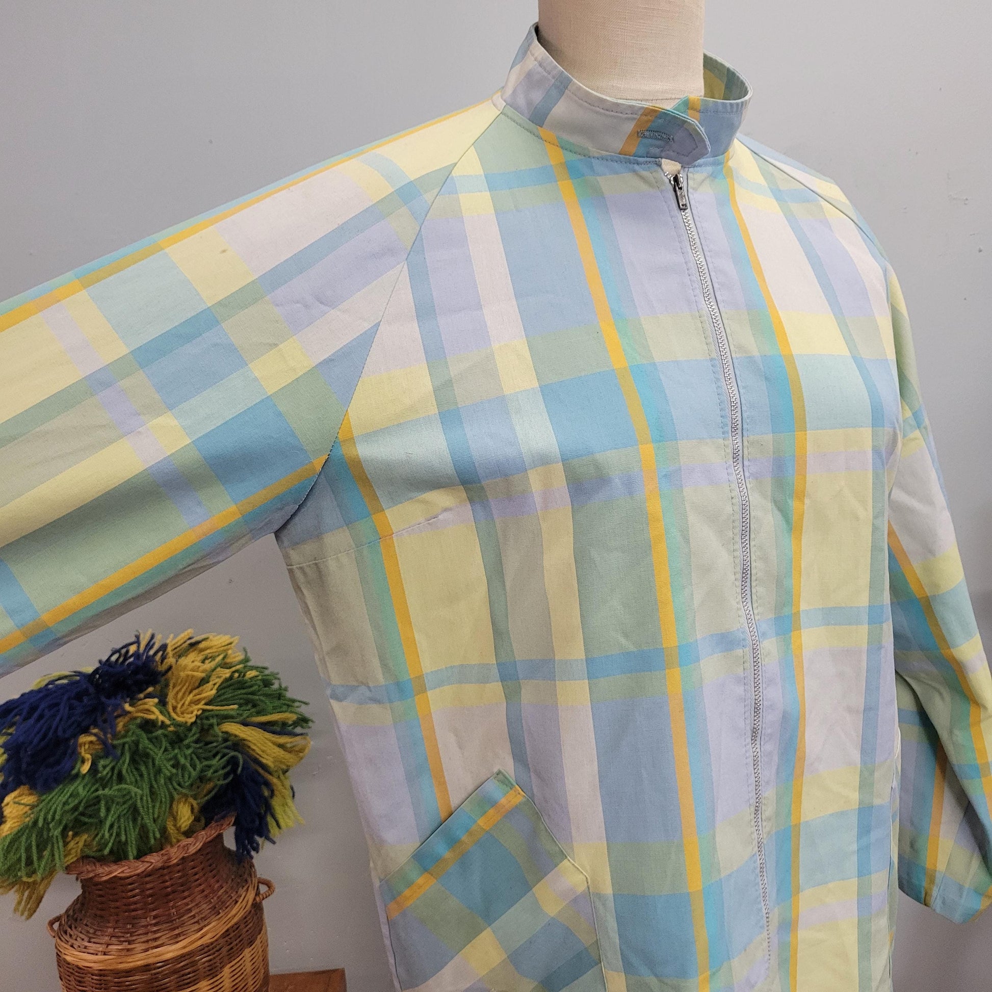 vtg 60s PLAID ZIPUP SHIRT // vintage glenbrooke large mens unisex pastel striped lightweight preppy rockabilly parka autumn rain jacket