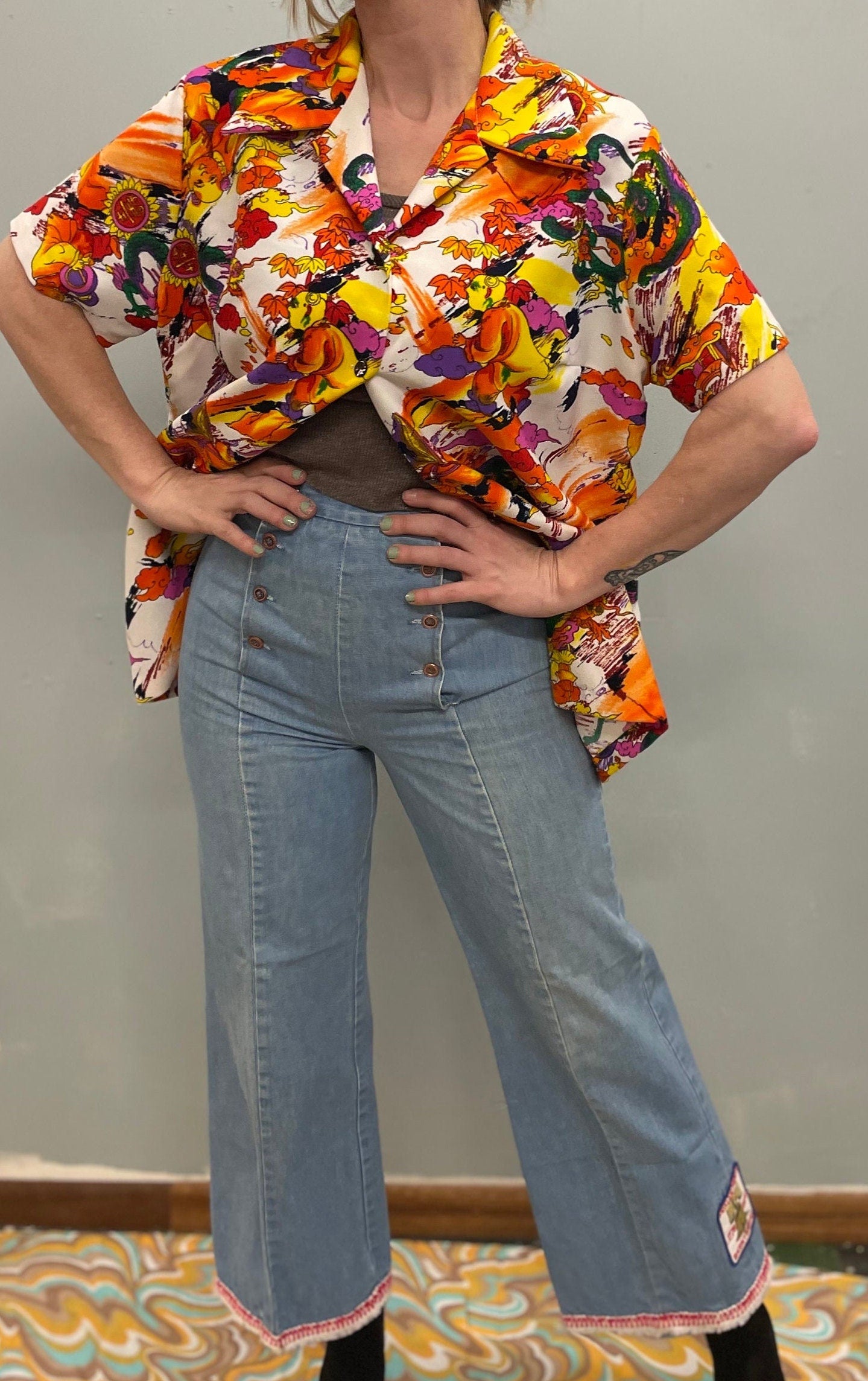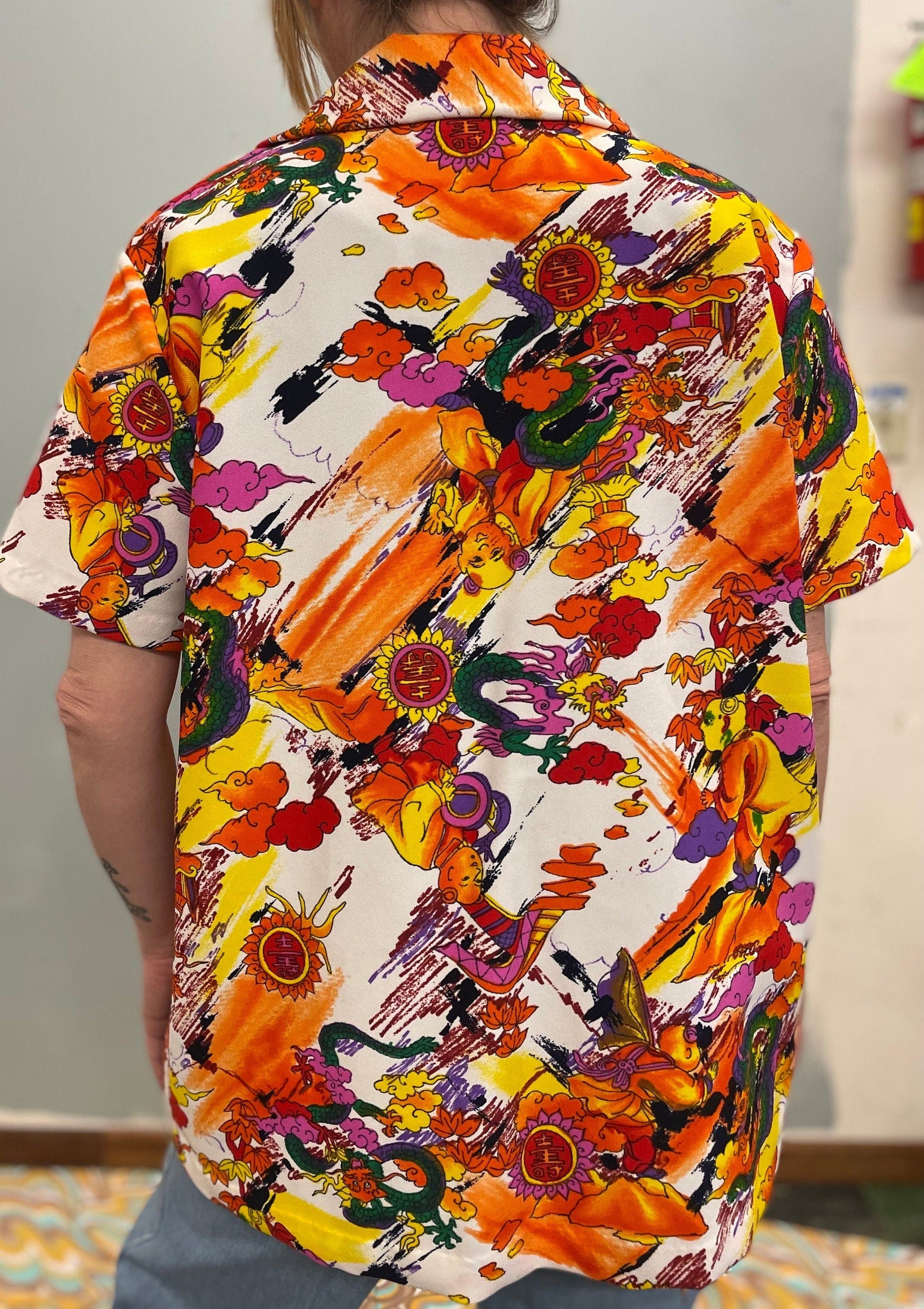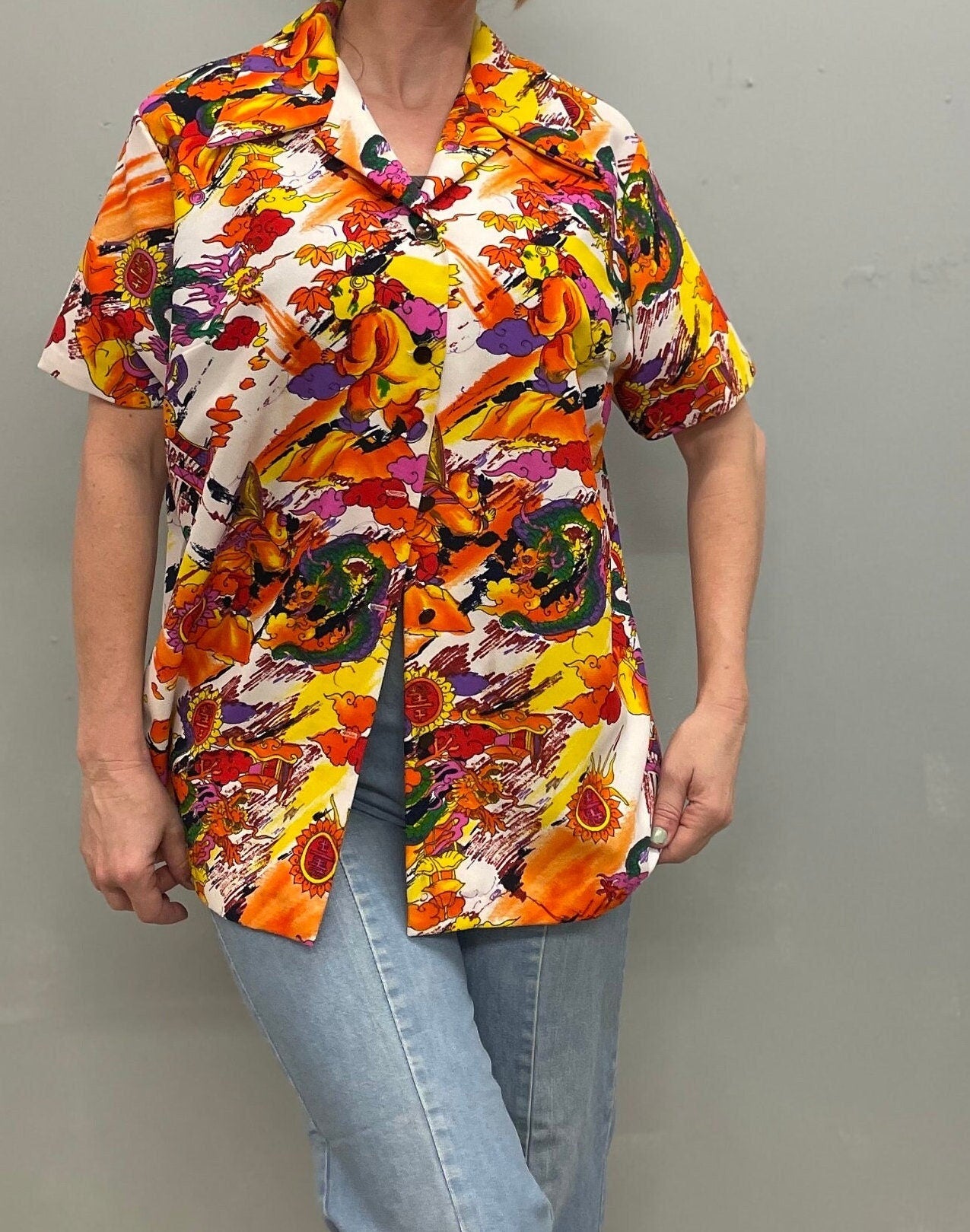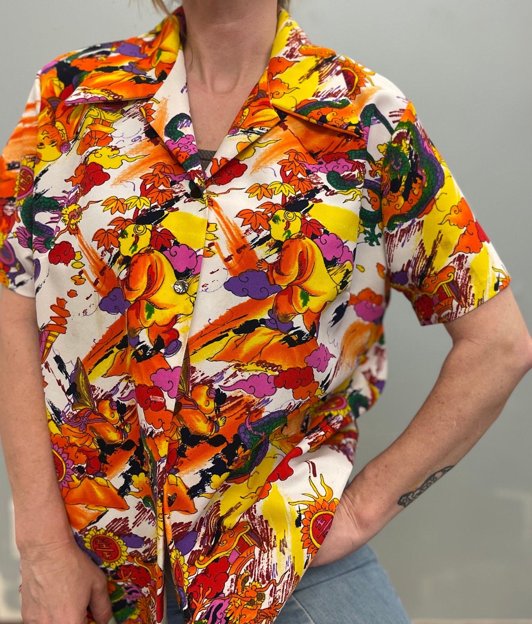 vtg 60s PSYCHEDELIC OXFORD TOP // vintage xl button up abstract print hawaiian hippie mod retro autumn blouse flower print dress shirt fall