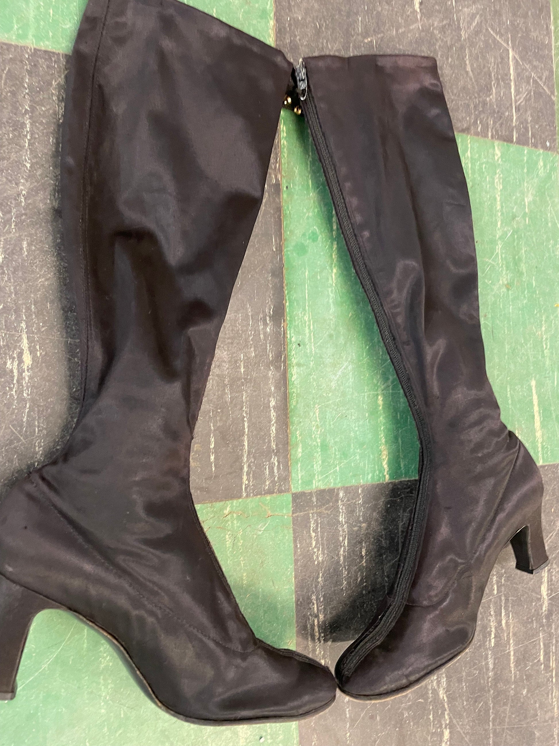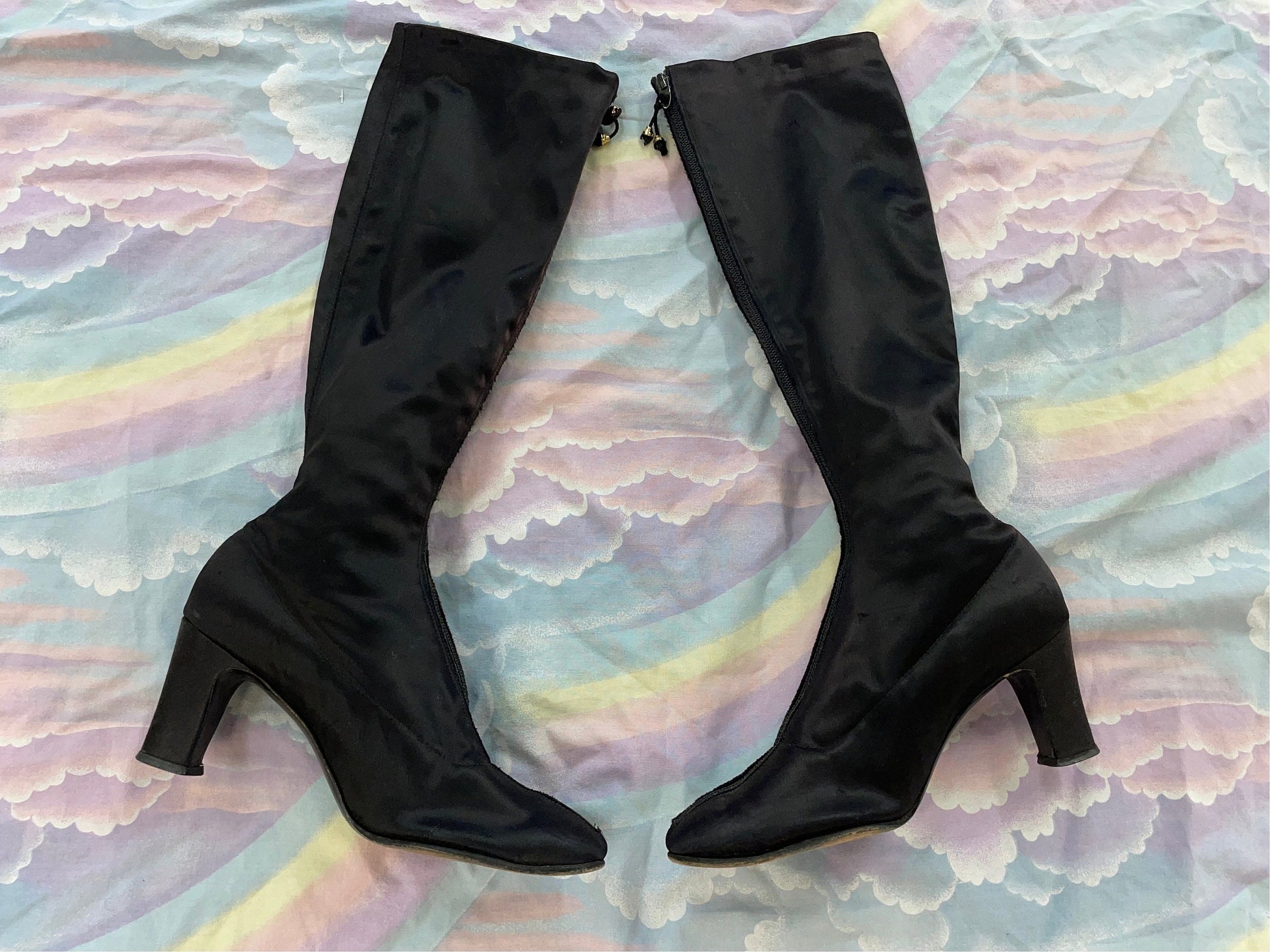 vtg 60s SHINY GO GO Boots // vintage size 7 tall zip up retro boots knee high 60s nancy sinatra mini dress reflective space age mod shoes