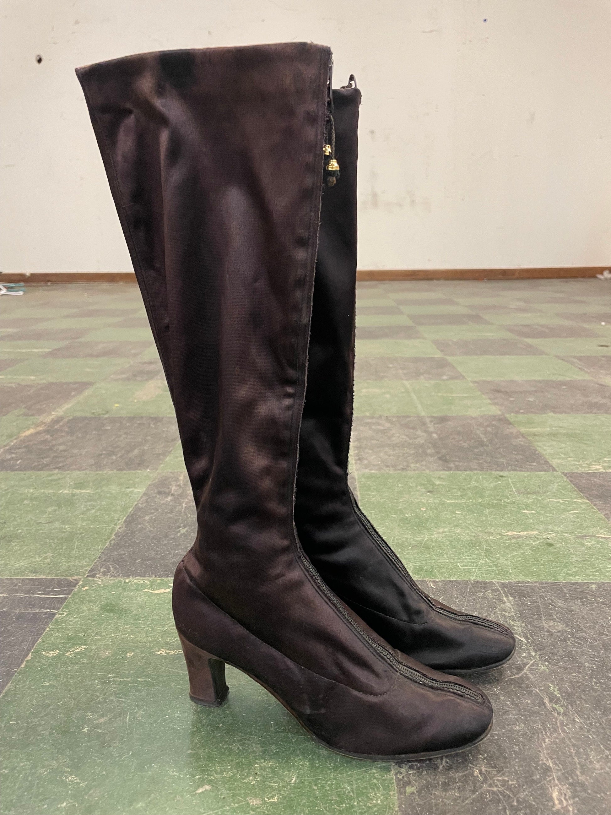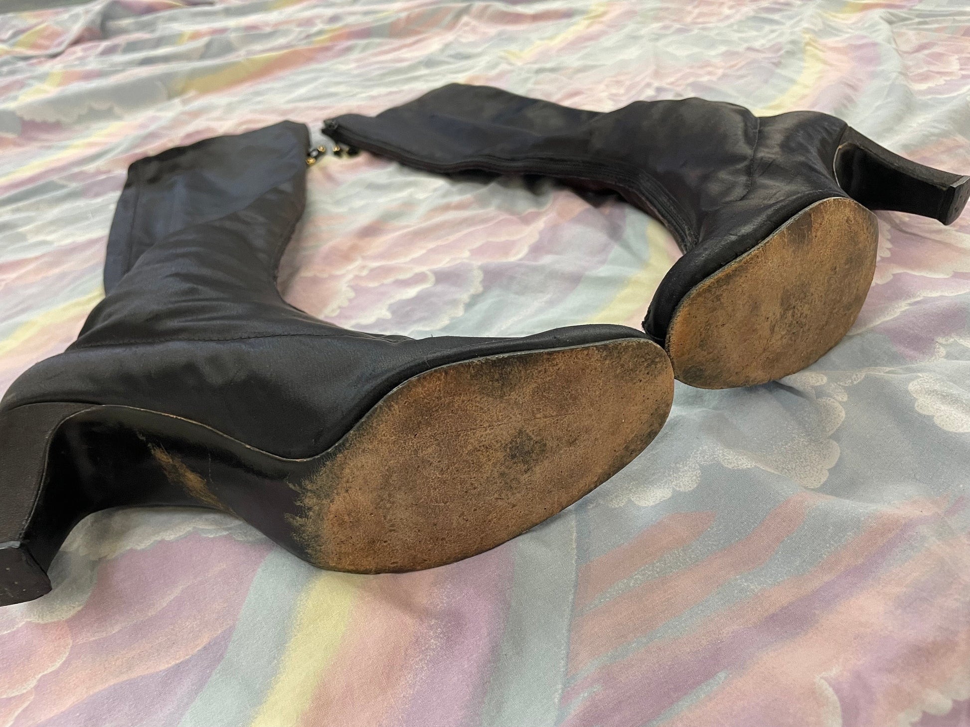 Vintage 60s shiny brown go go boots Size 7 tall zip up retro boots knee high 60s nancy sinatra mini dress reflective space age mod shoes