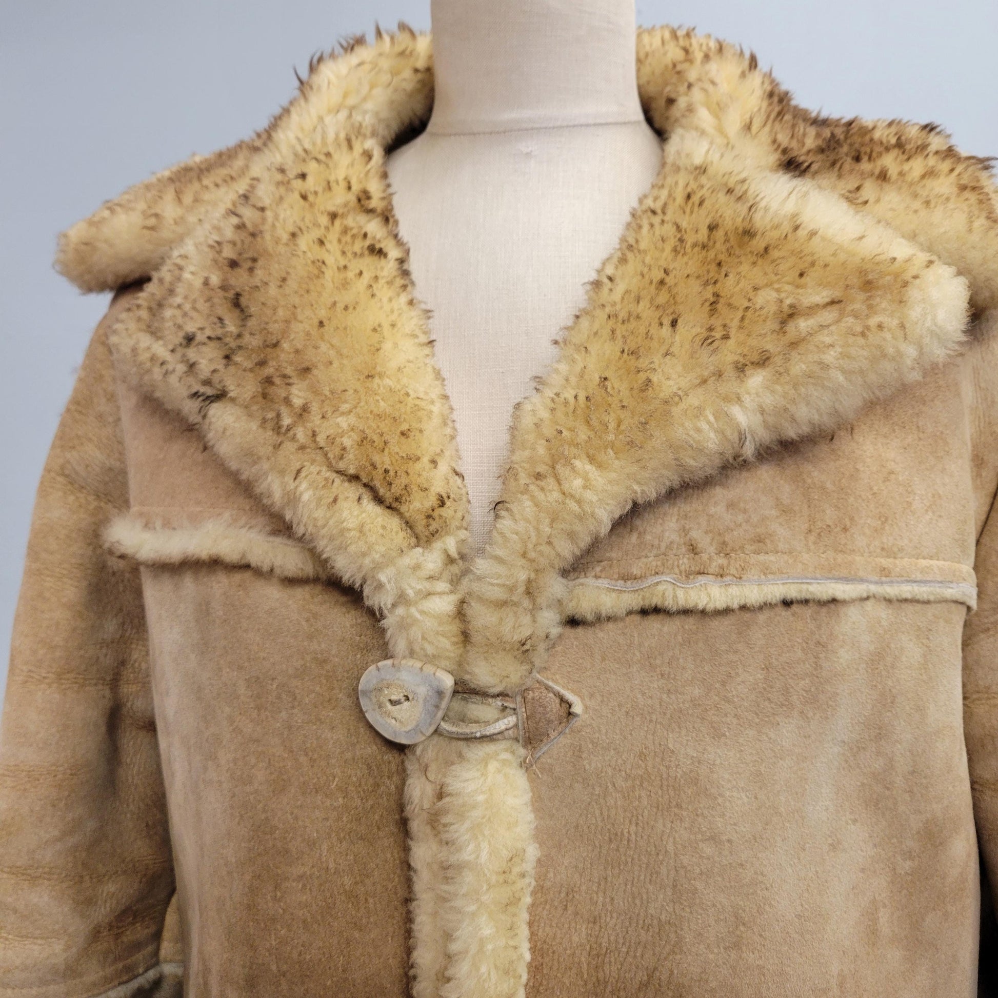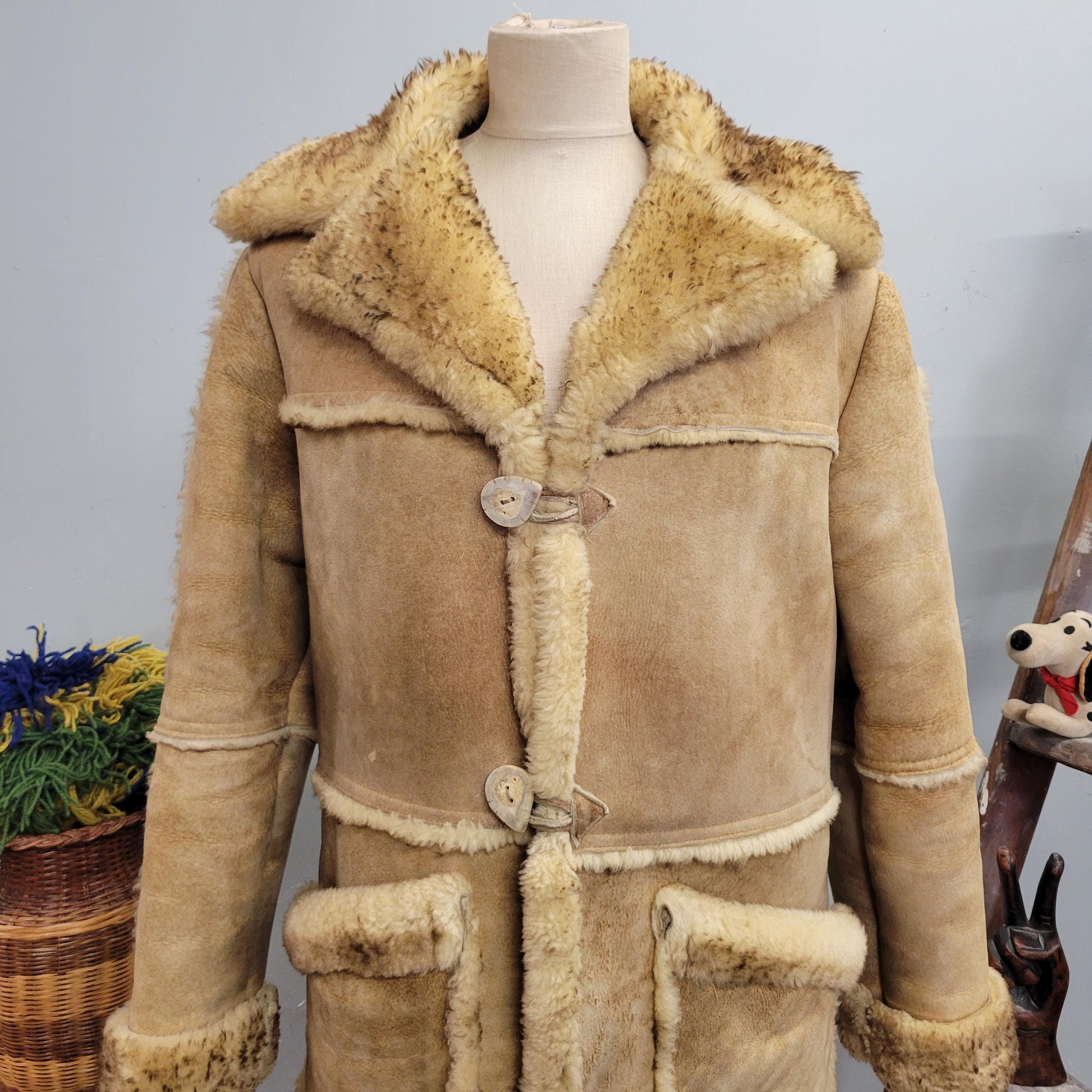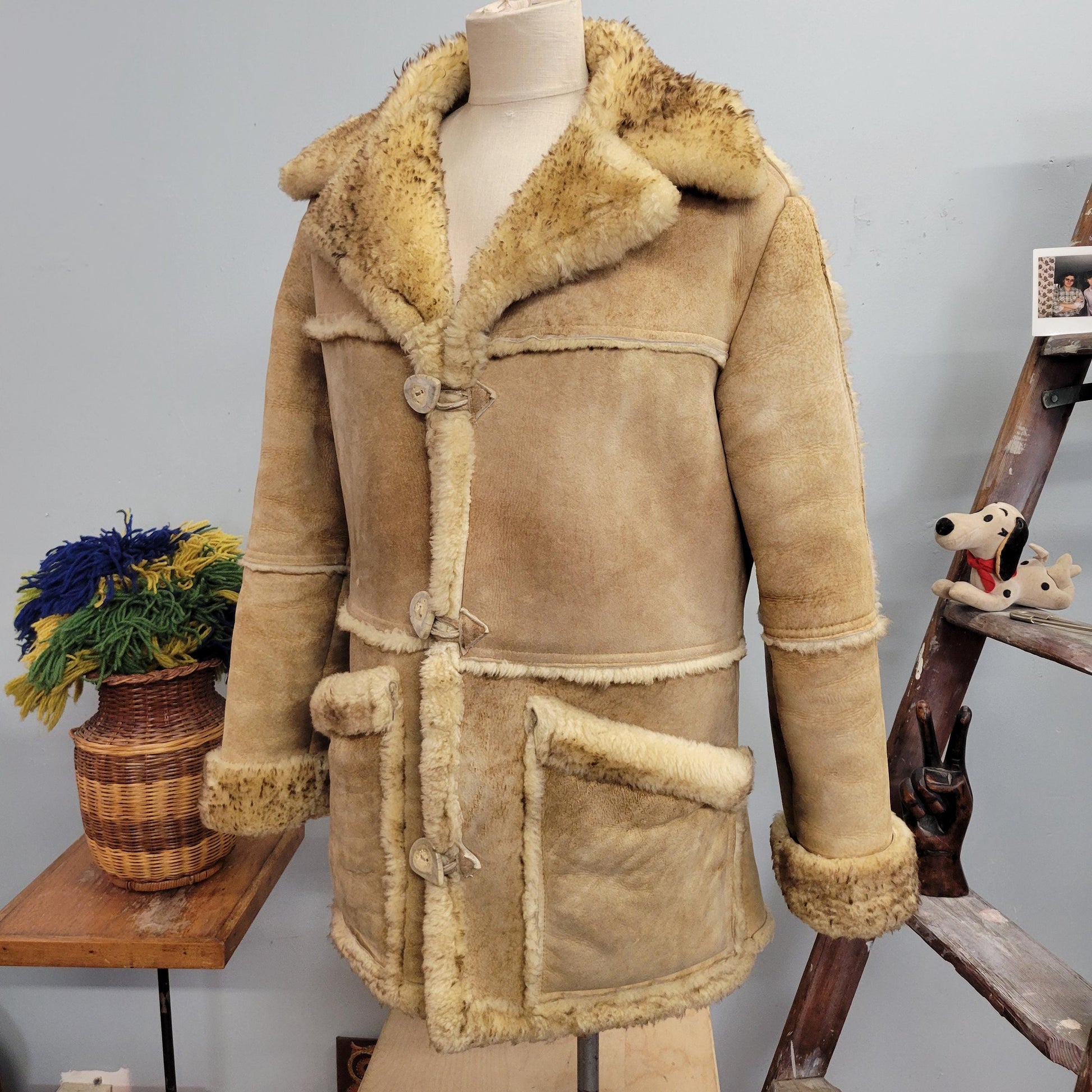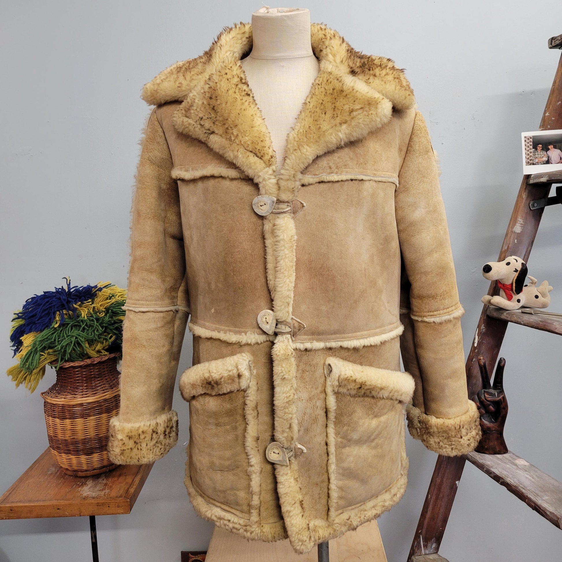 vtg 60s SUEDE SHEARLING COAT // vintage overland jacket mens 42 sheepskin thick ranch coat button jacket western style warm winter overcoat