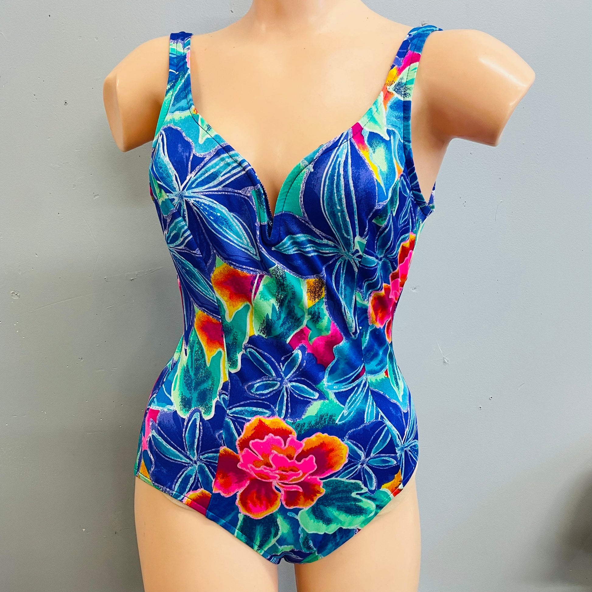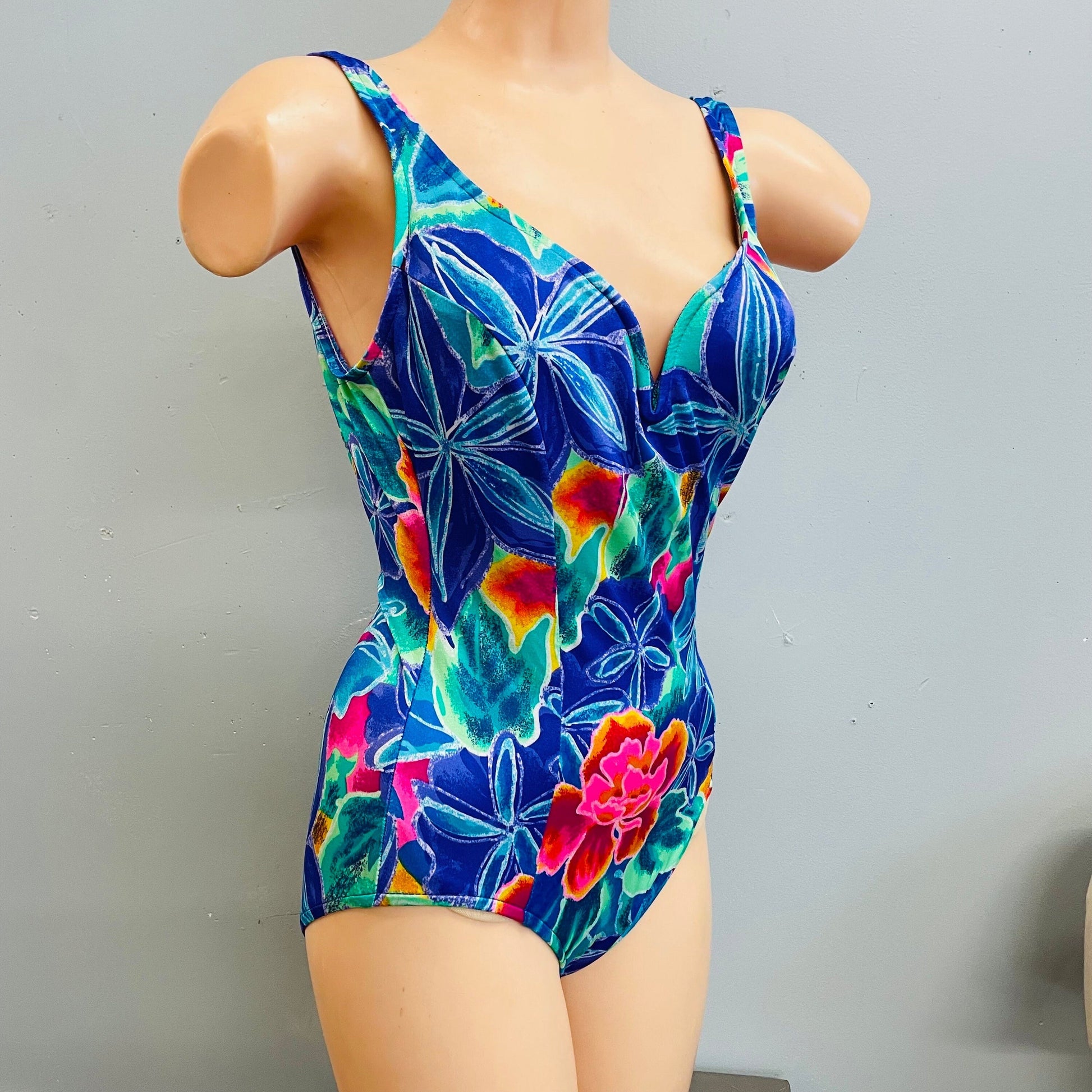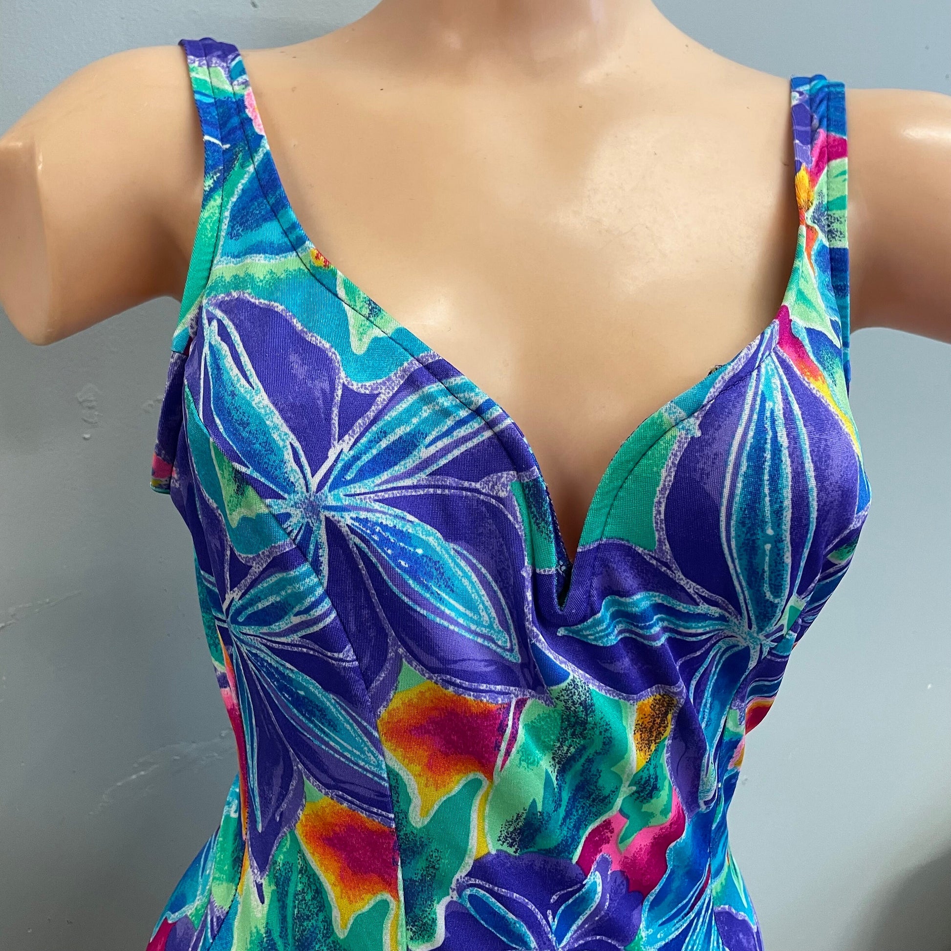 vtg 70s 80s sweetheart plunge floral one piece cute swimsuit summer beachwear low cut bodysuit