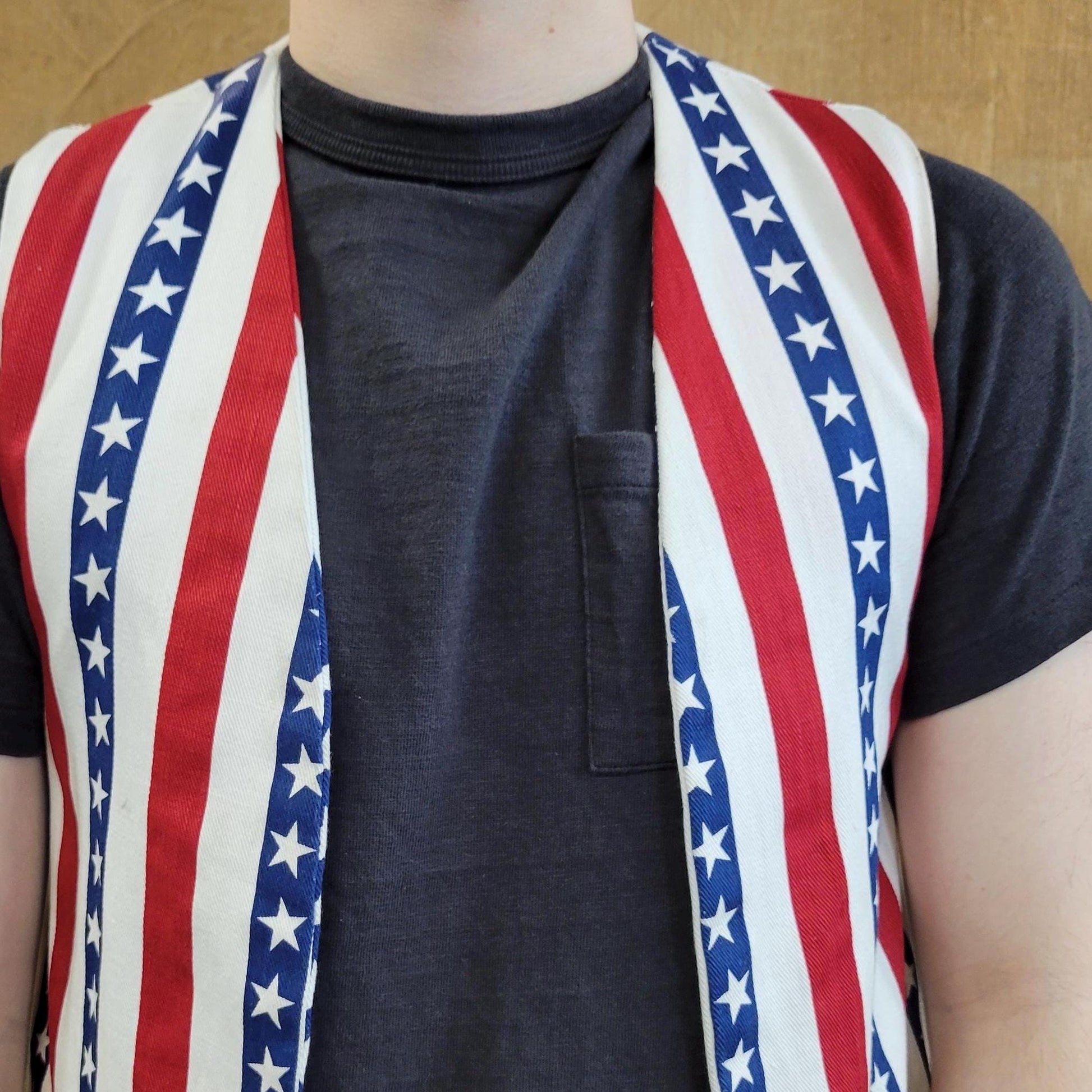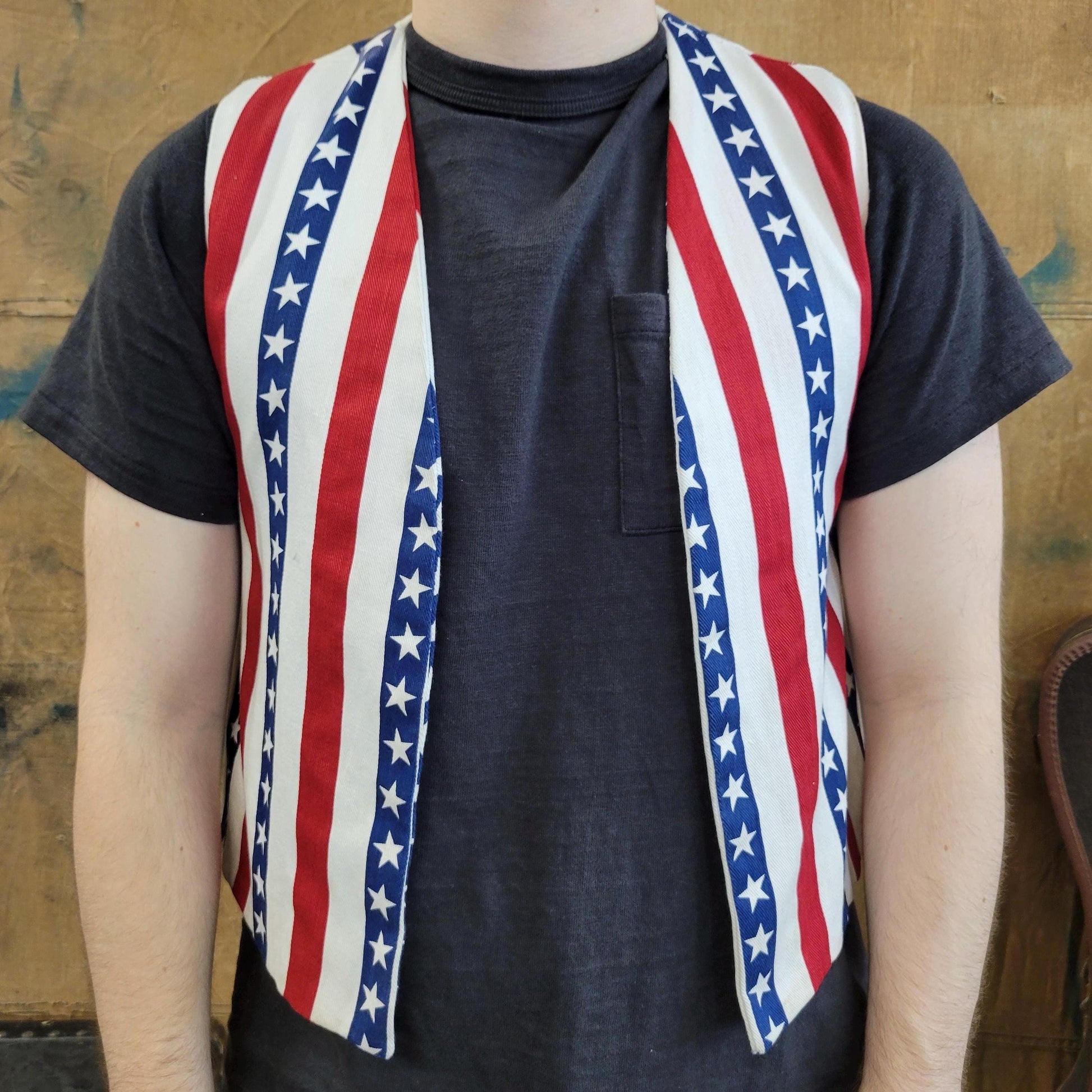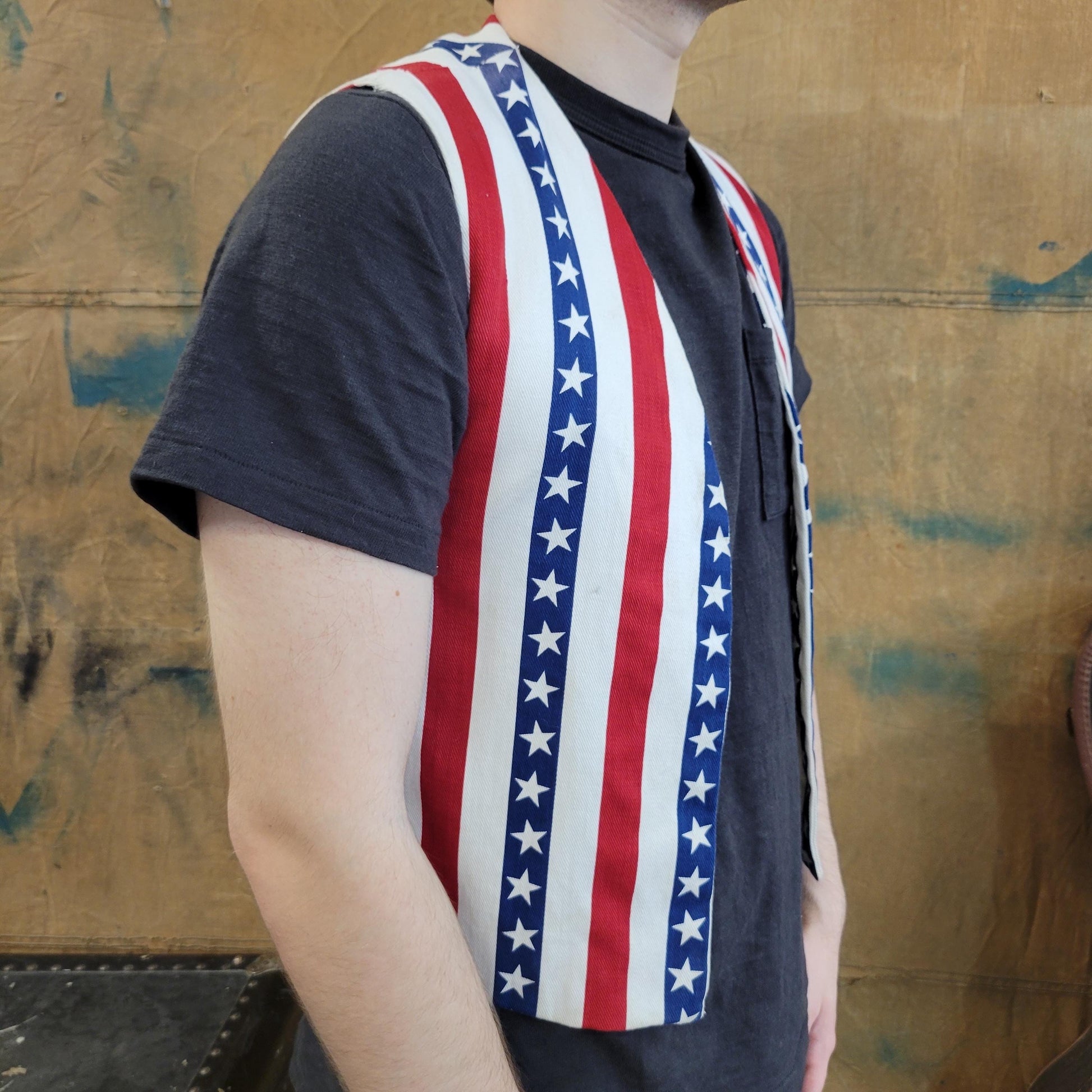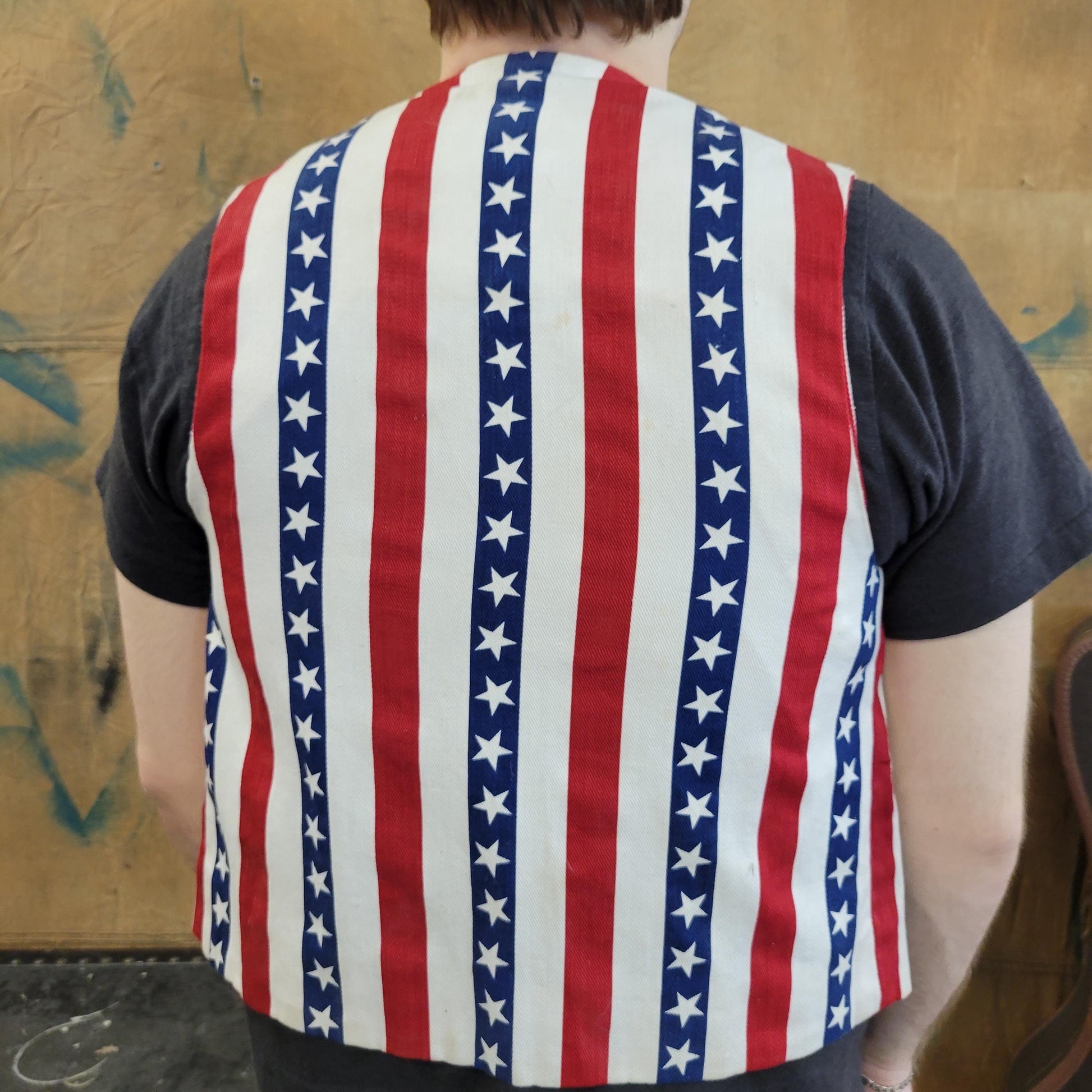 vtg 70s AMERICA USA VEST // vintage handmade Stars and Stripes patriotic flag denim cropped vest hippie Americana Woodstock protest hippie