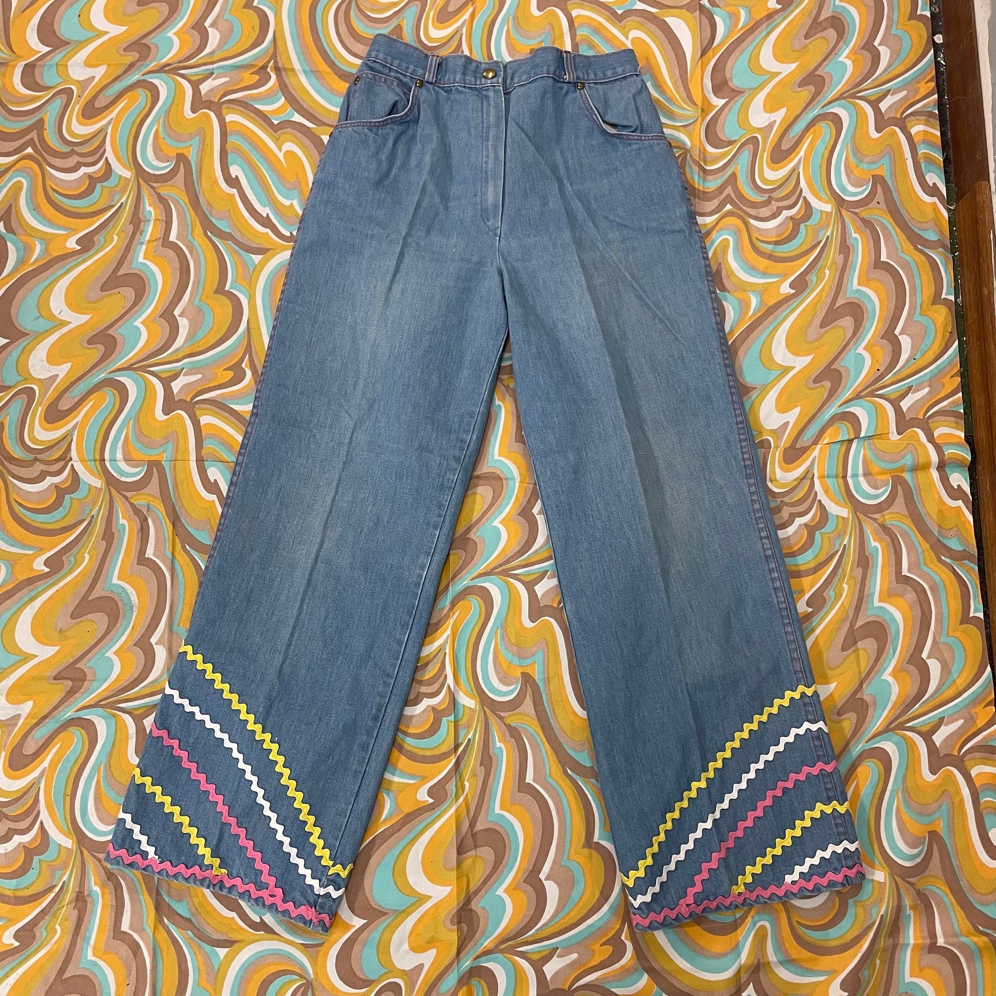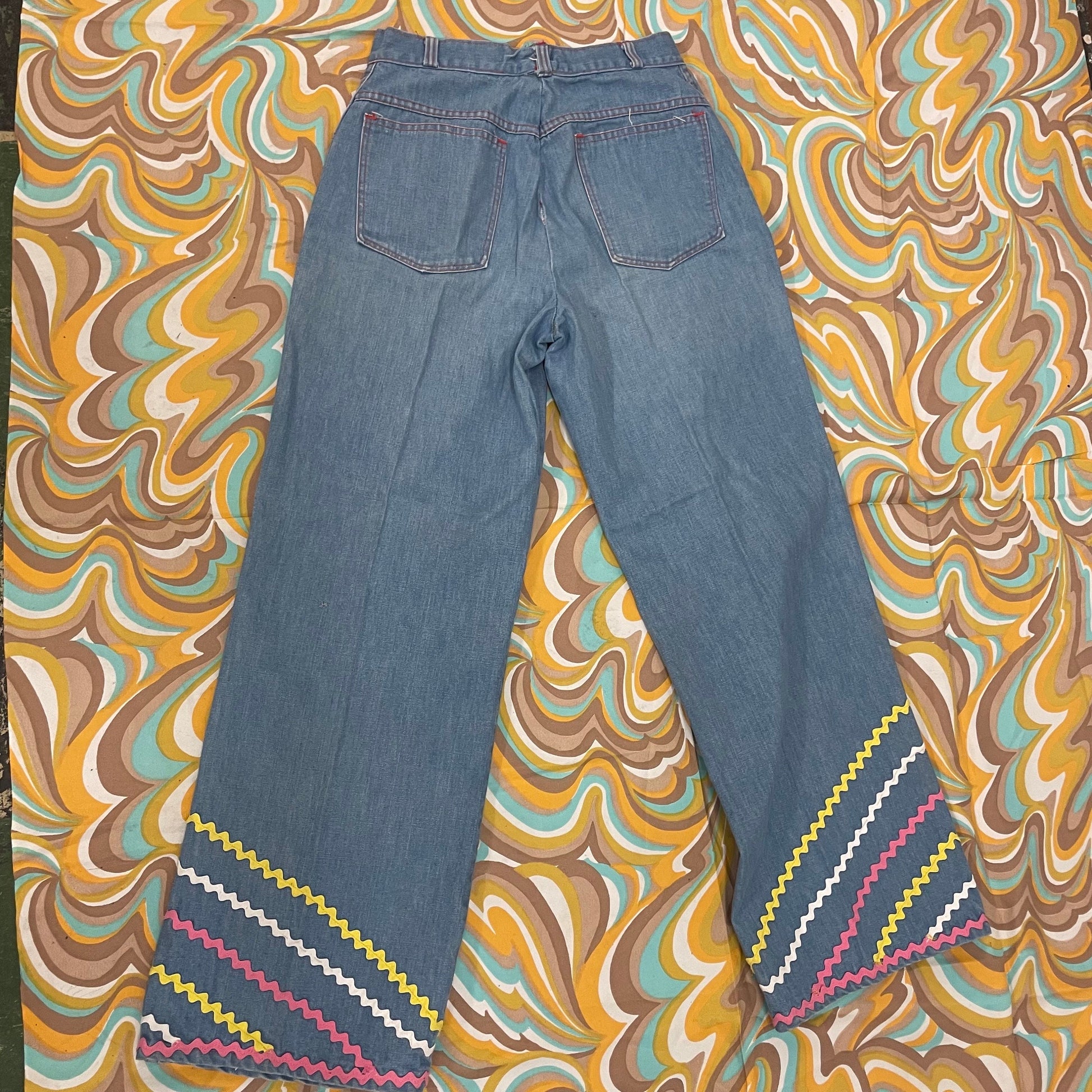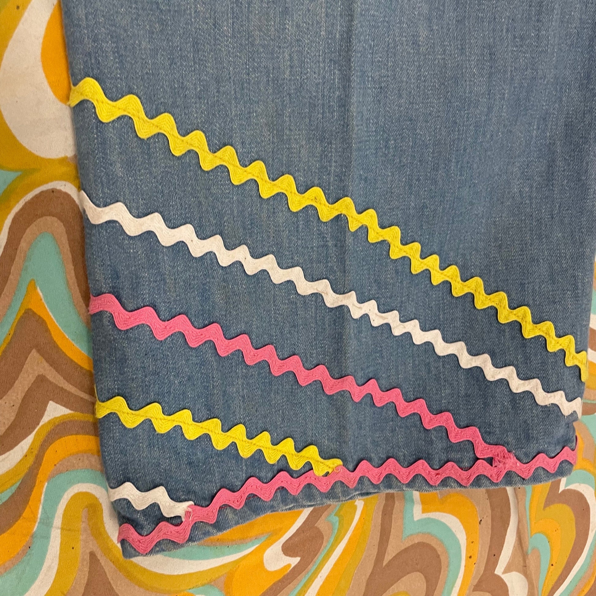 Vintage 70's striped ric a rac wide leg sears jeans size 12 misses