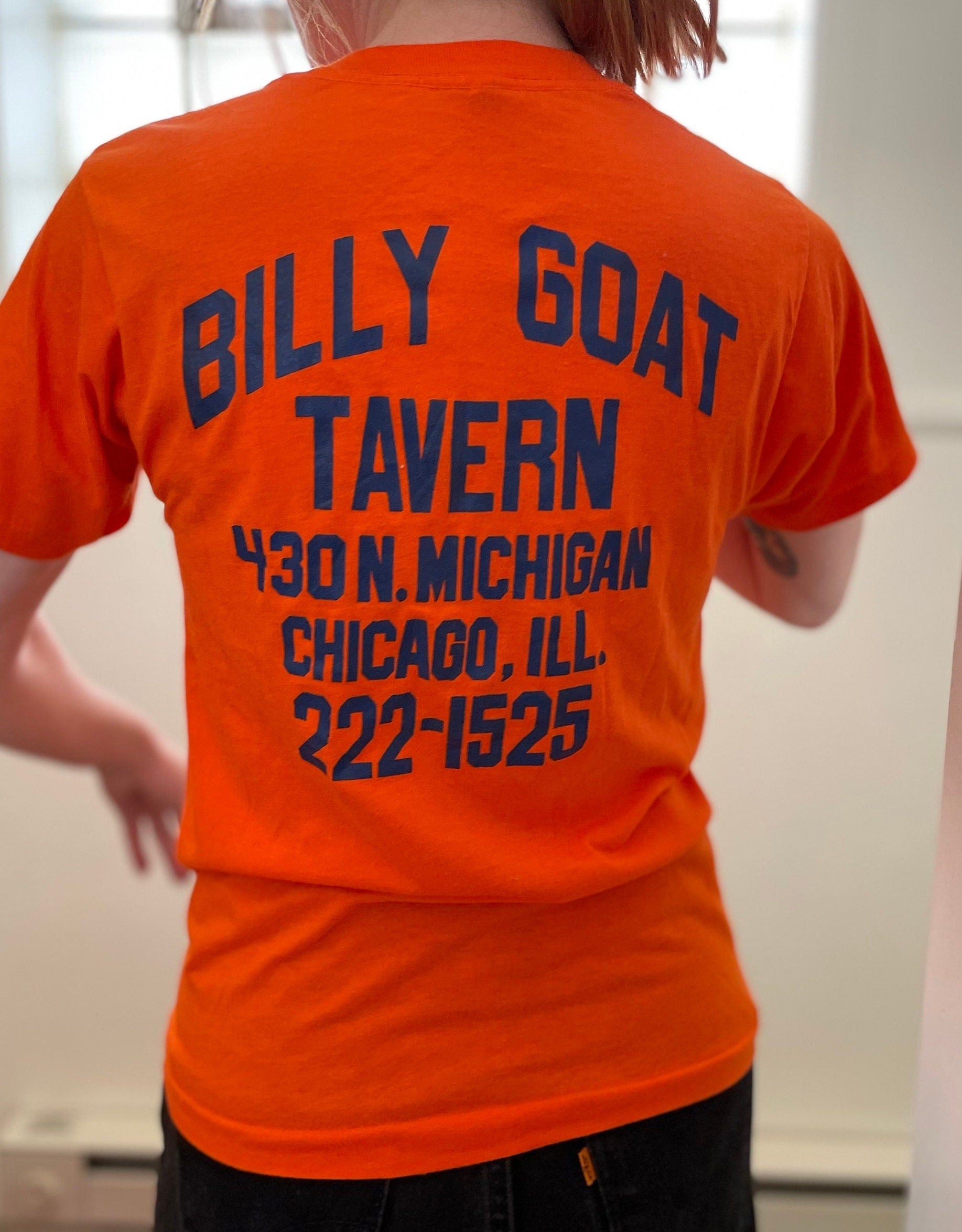 vtg 70s BILLY GOAT TAVERN Shirt // vintage famous chicago bar restaurant orange & black greatest of all time baller sigma funny graphic tee