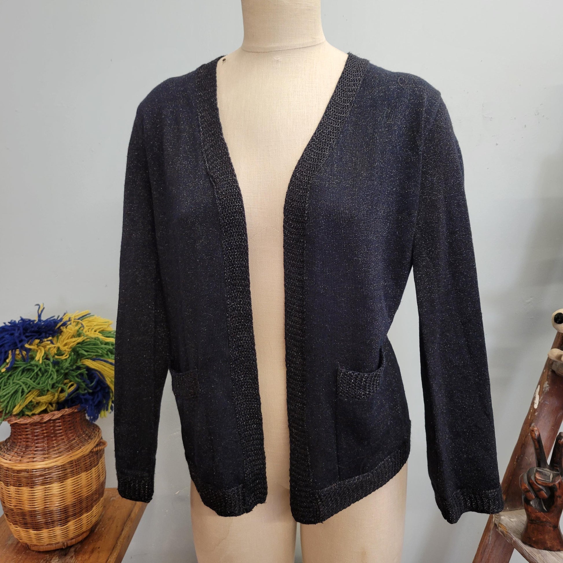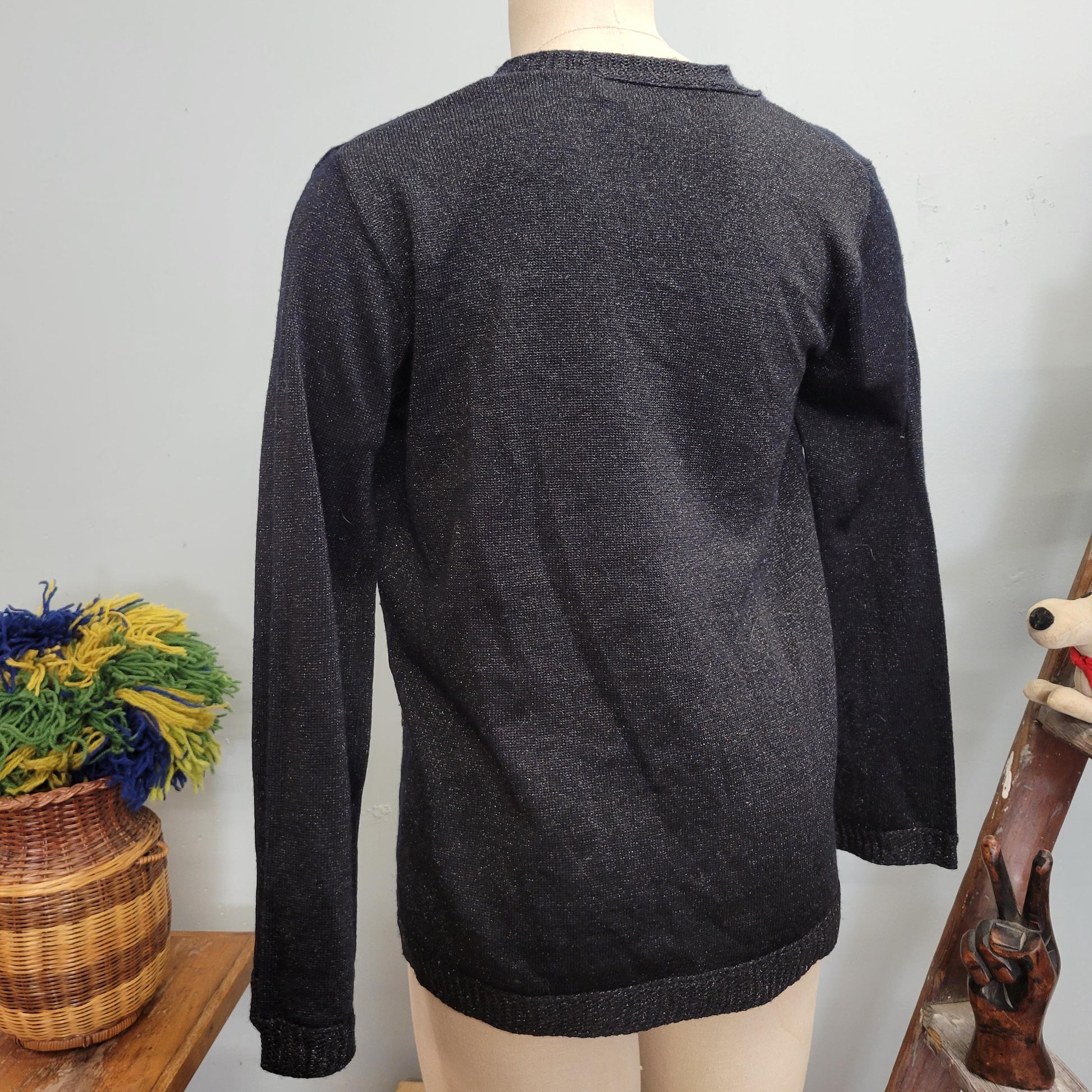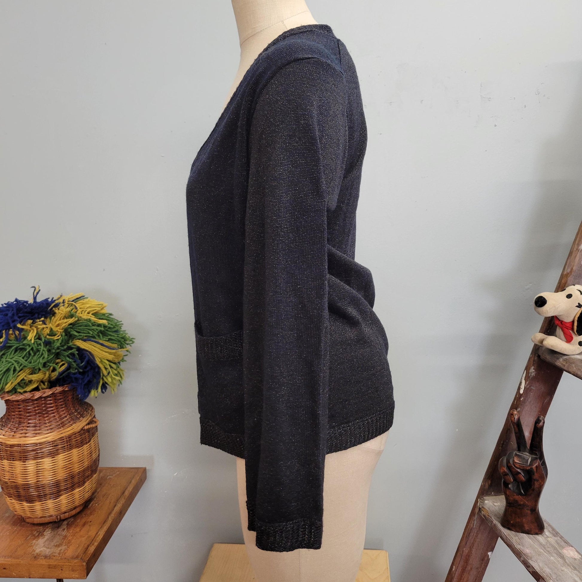vtg 70s BLACK LUREX CARDIGAN / vintage glitter sweater joyce medium womens sparkly fastive autumn sleek retro disco metallic knit xmas party