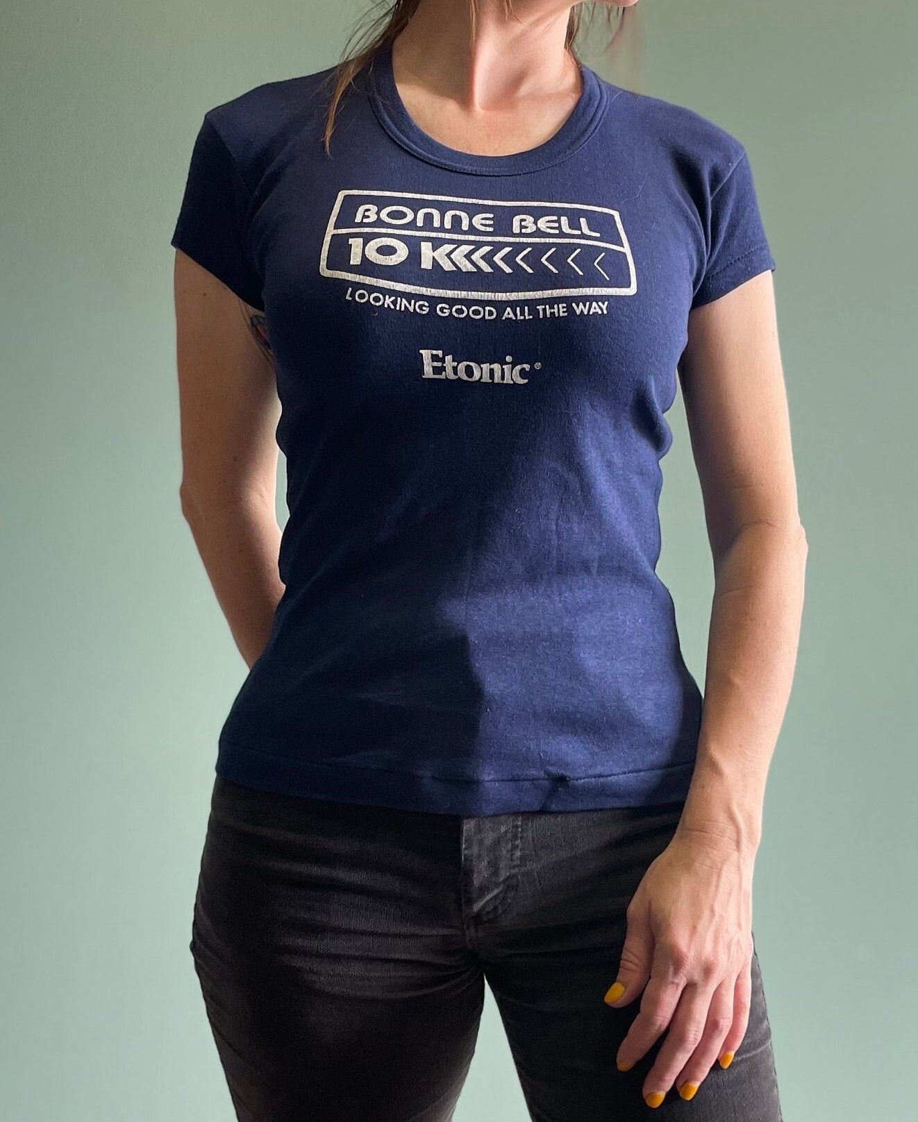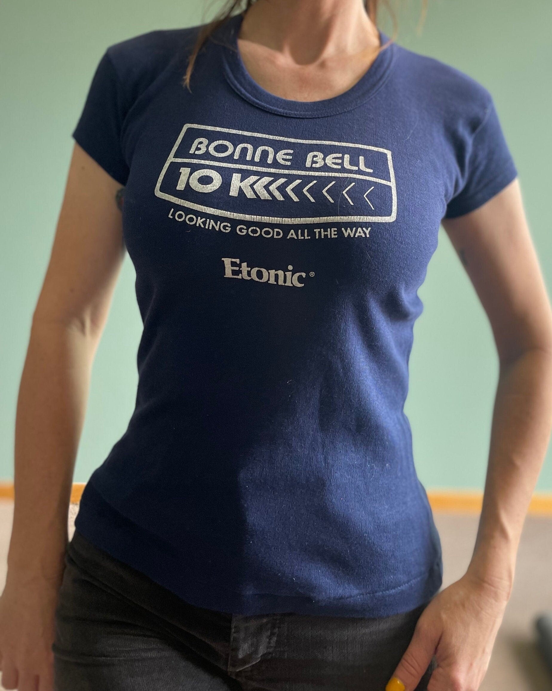 Vintage 70s Bonne Bell Chapstick Promo Shirt / Etonics 10K Sneaker Shirt / 70s Sneakers Promo Shirt / Women's Marathon Running Shoes