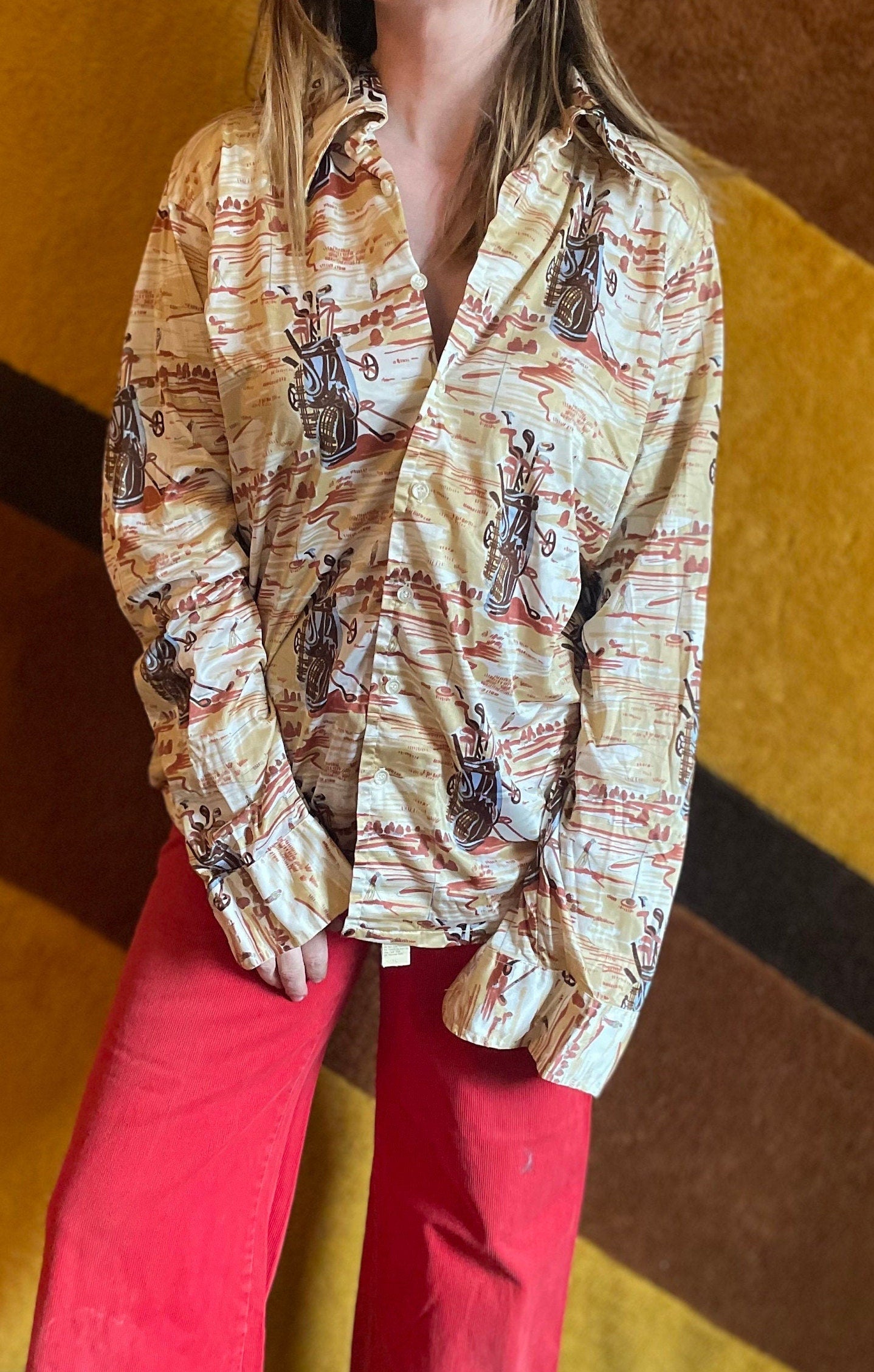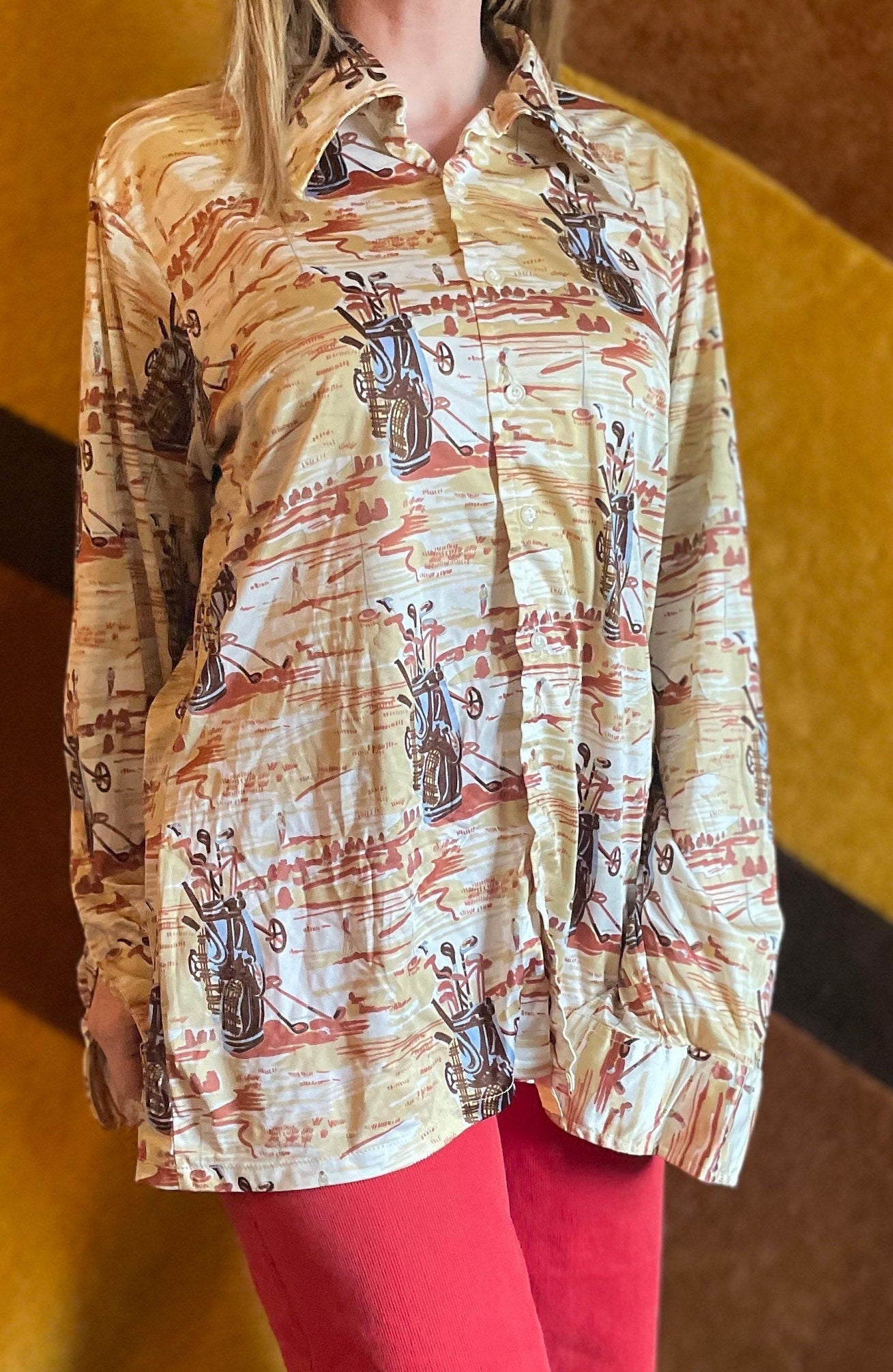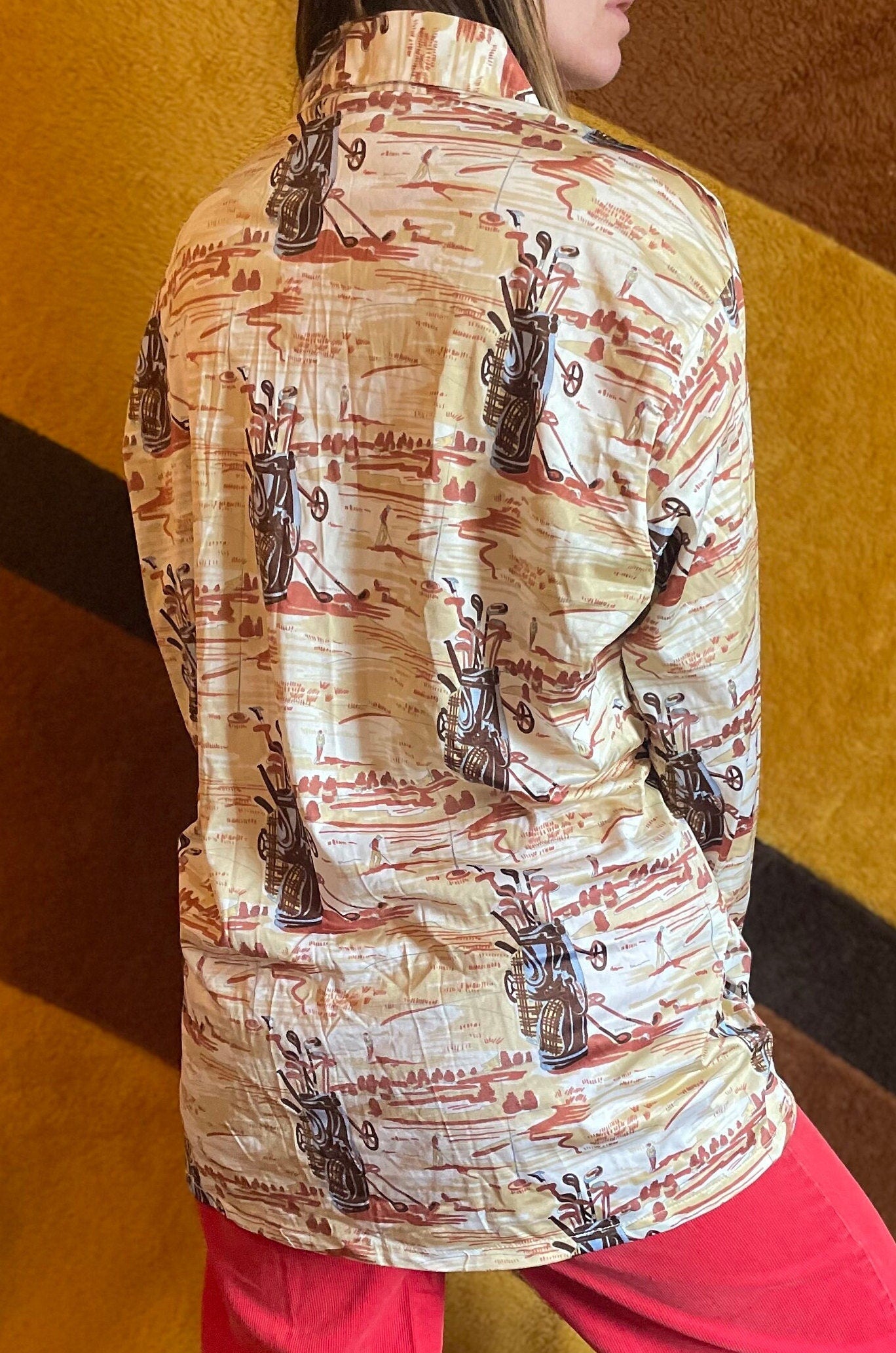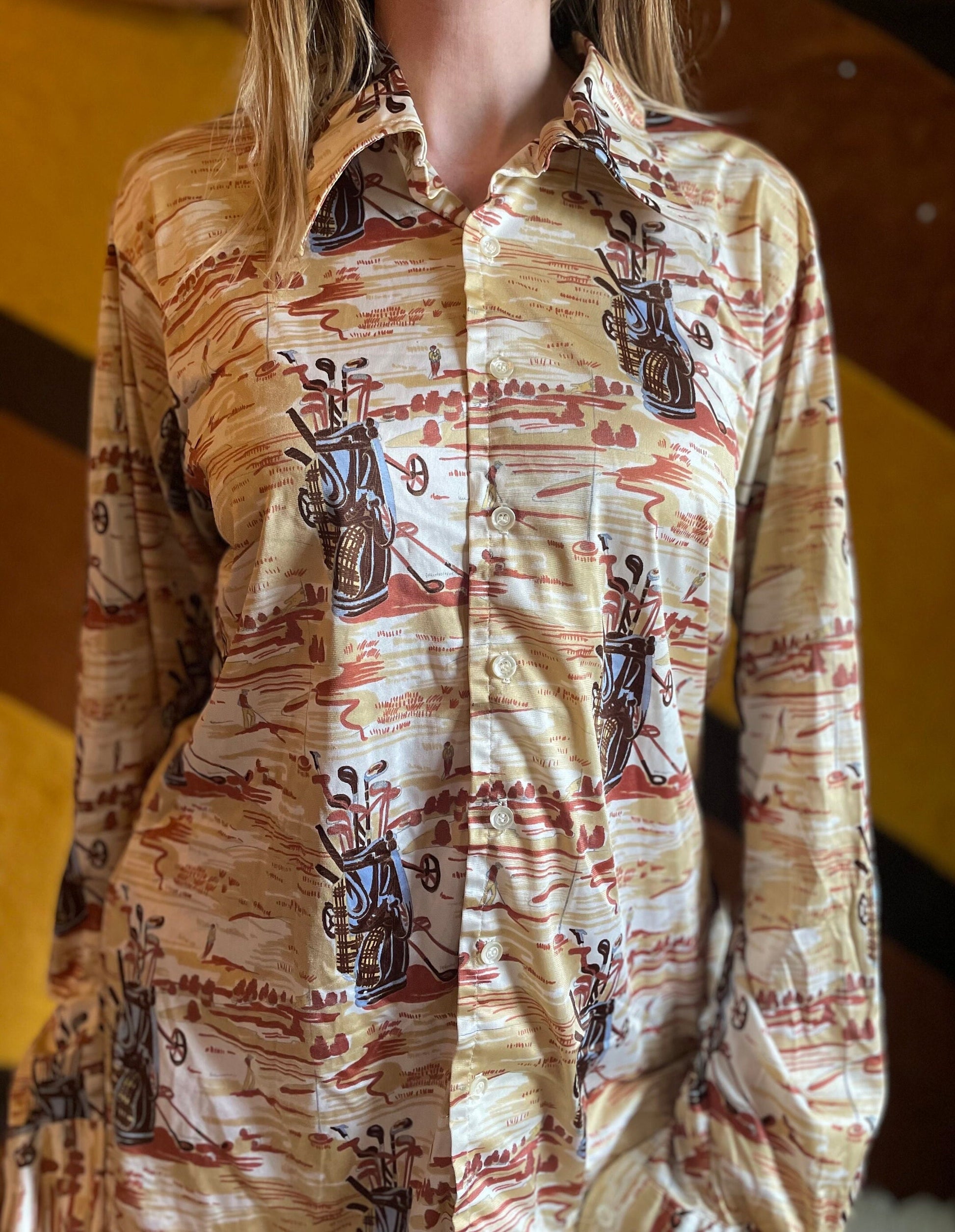 Vintage 70s Psychedelic Golf clubs all over print polyester button down