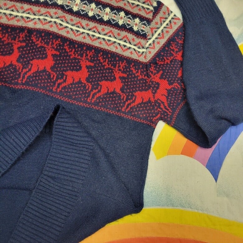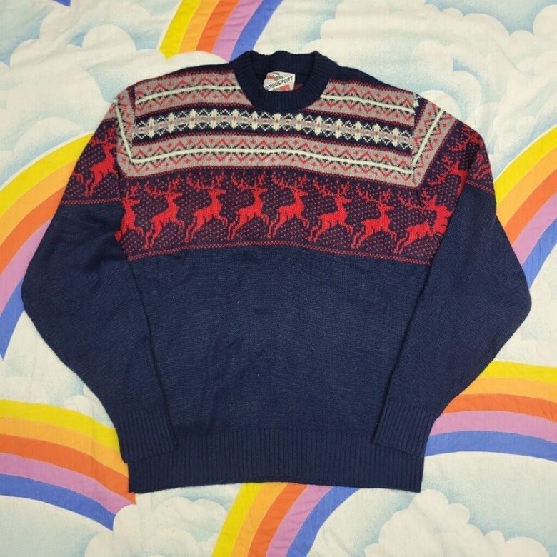 vtg 70s CAMPUS REINDEER SWEATER // vintage holiday festive party 60s novelty jumper all over print xmas santa winter themed cozy cottage