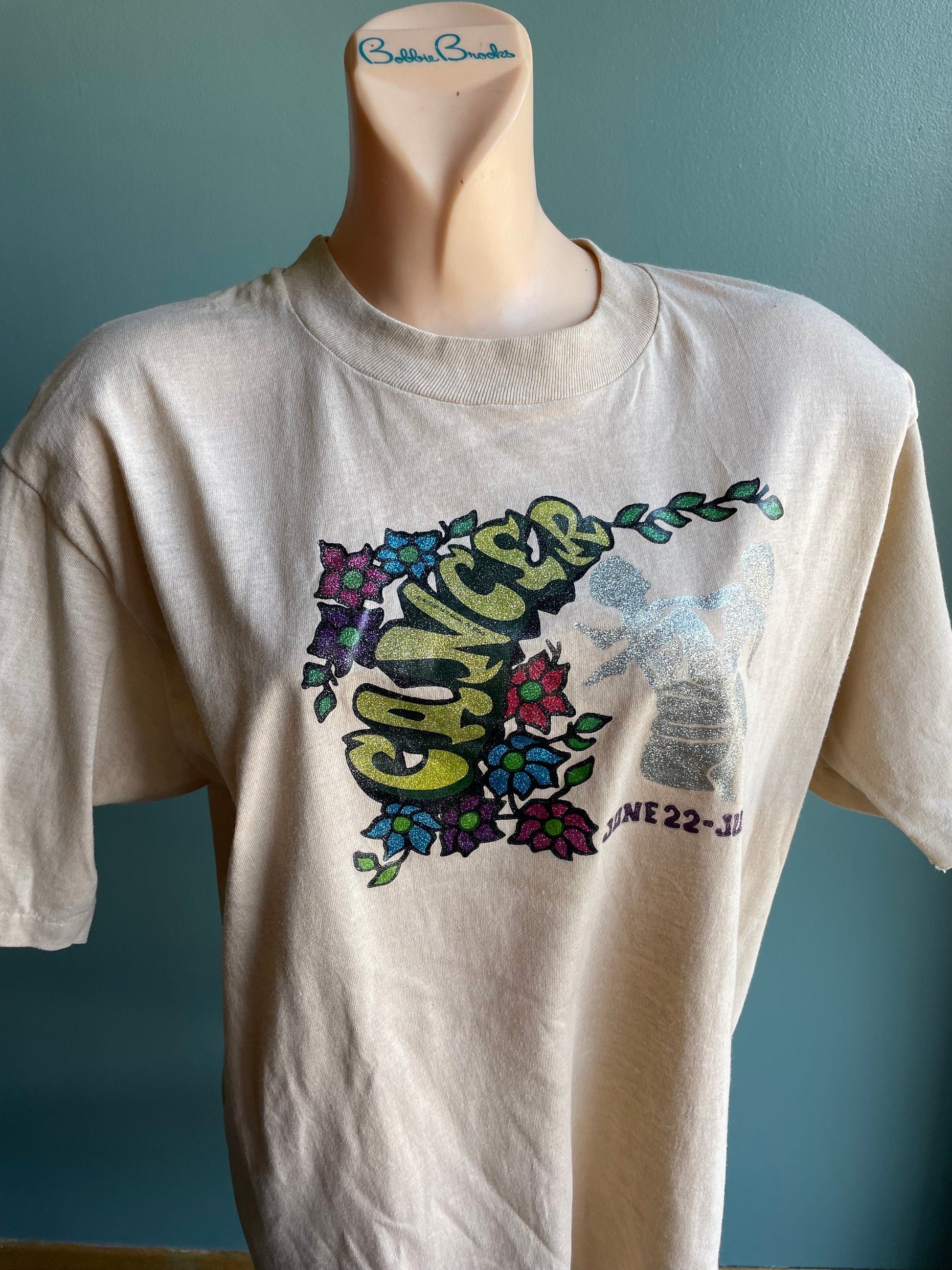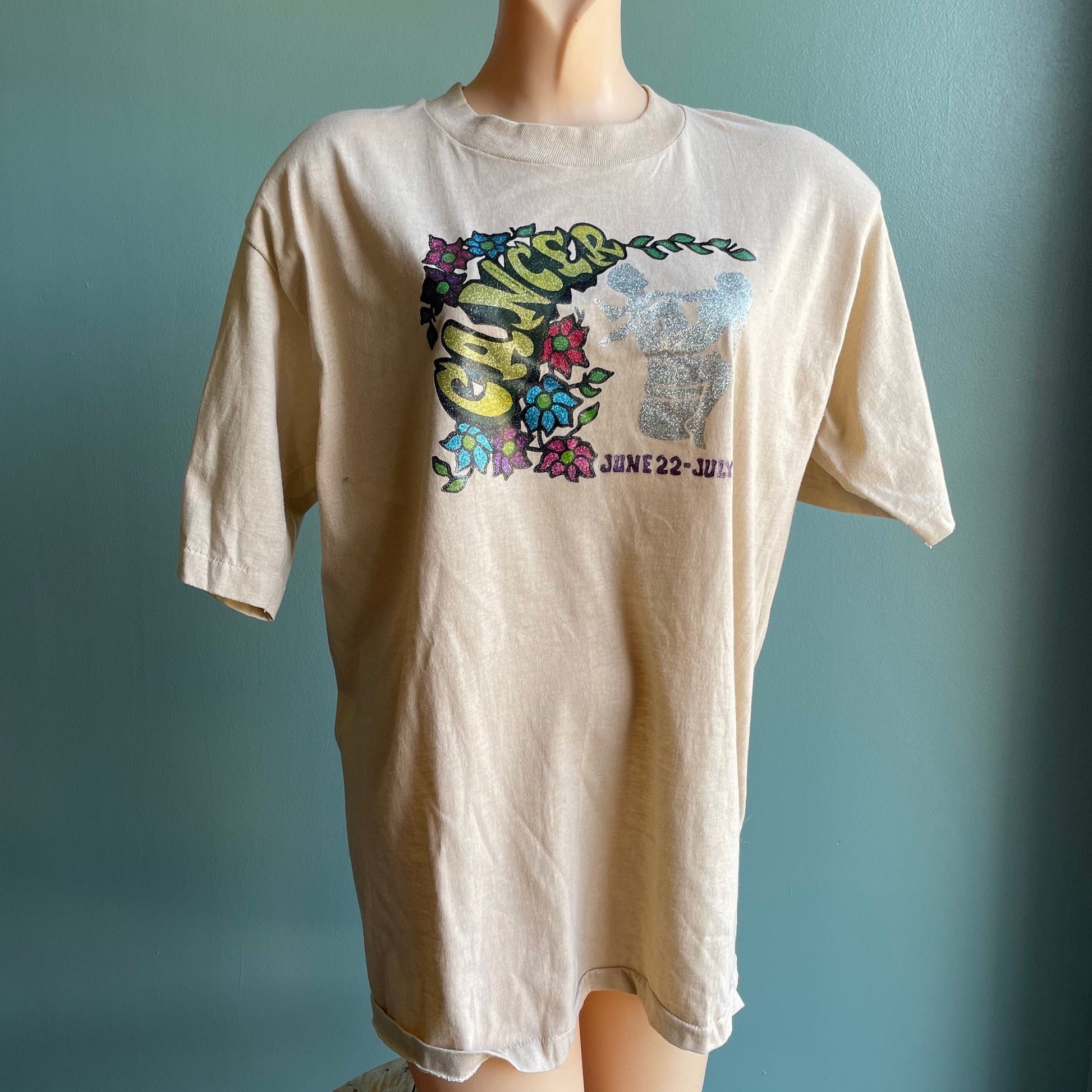 vtg 70s CANCER ZODIAC SIGN Shirt // vintage sportswear xl glitter iron on retro crab sexual position chart horoscope spiritual soft tshirt