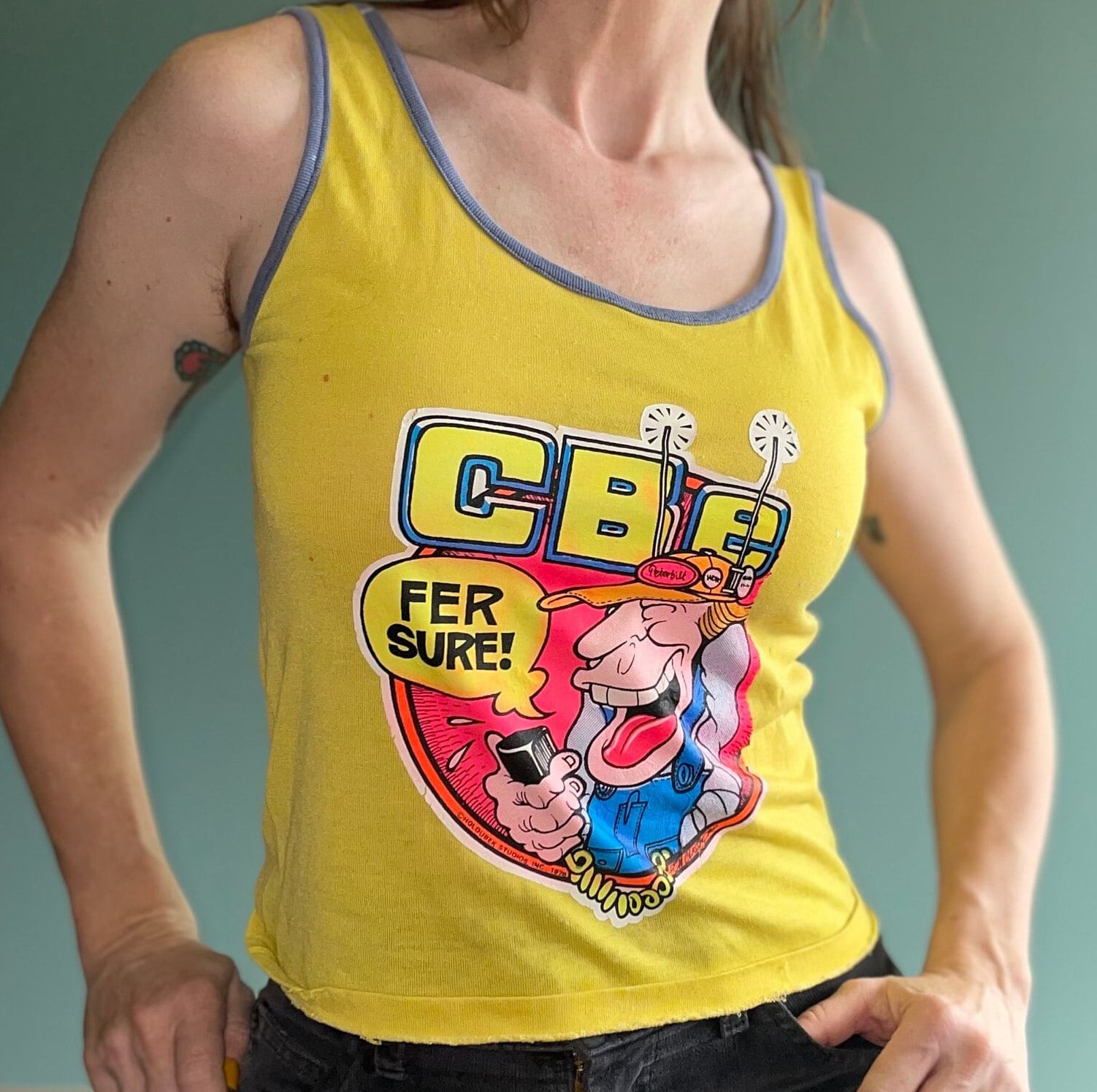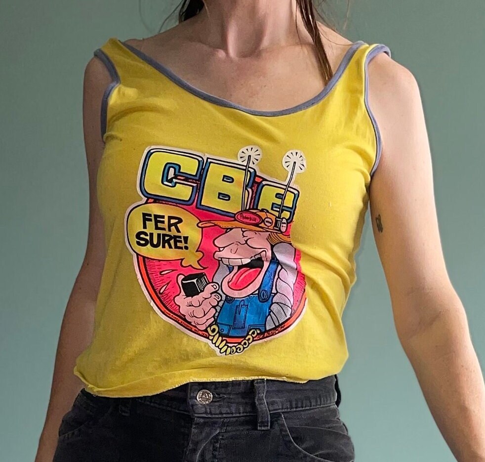 vtg 70s CB RADIO TRUCKER tank top // vintage iron on fer sure big rig code bear in the woods truck driver Holubek smokie bear 18 wheeler