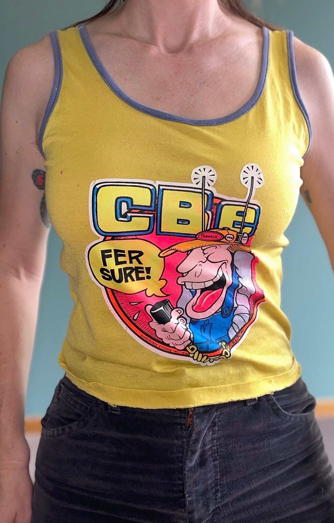 Vintage CB Radio Trucker Shirt / 70s Iron On Tank Top / Fer Sure / Bear in THe Woods / CB Code Truck Driver Shirt / 1976 Holubek