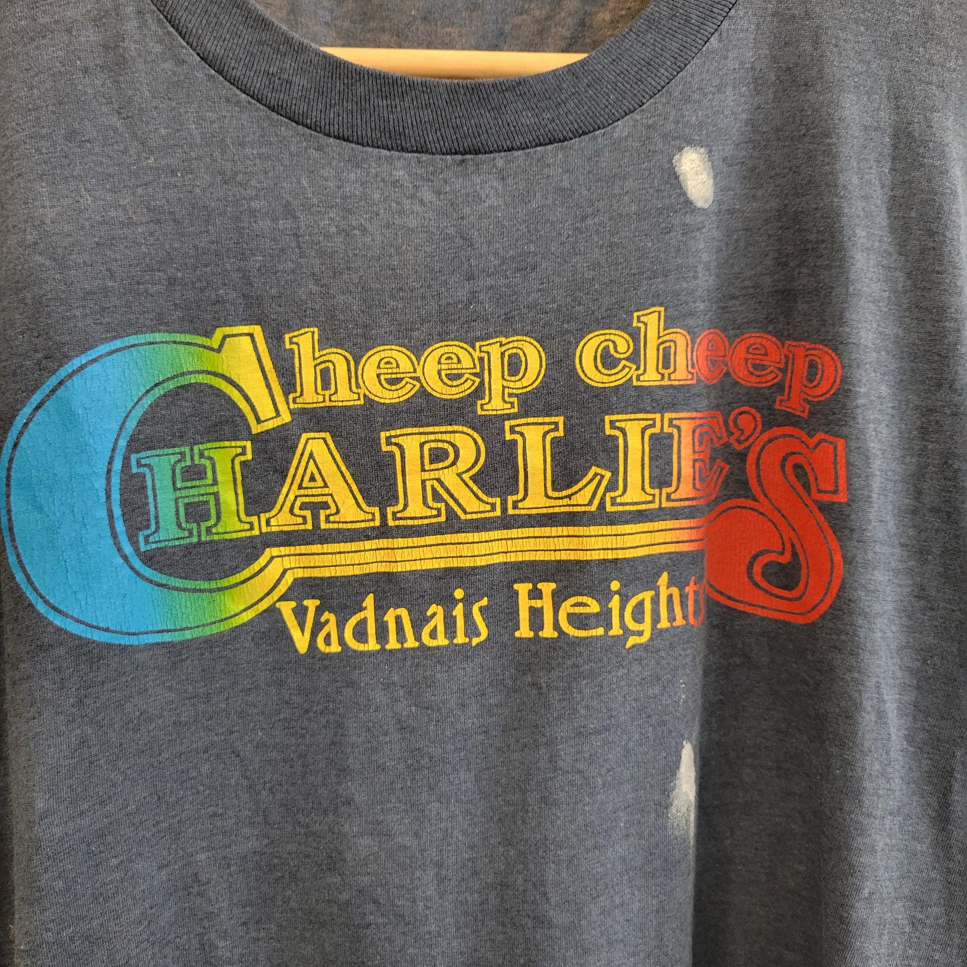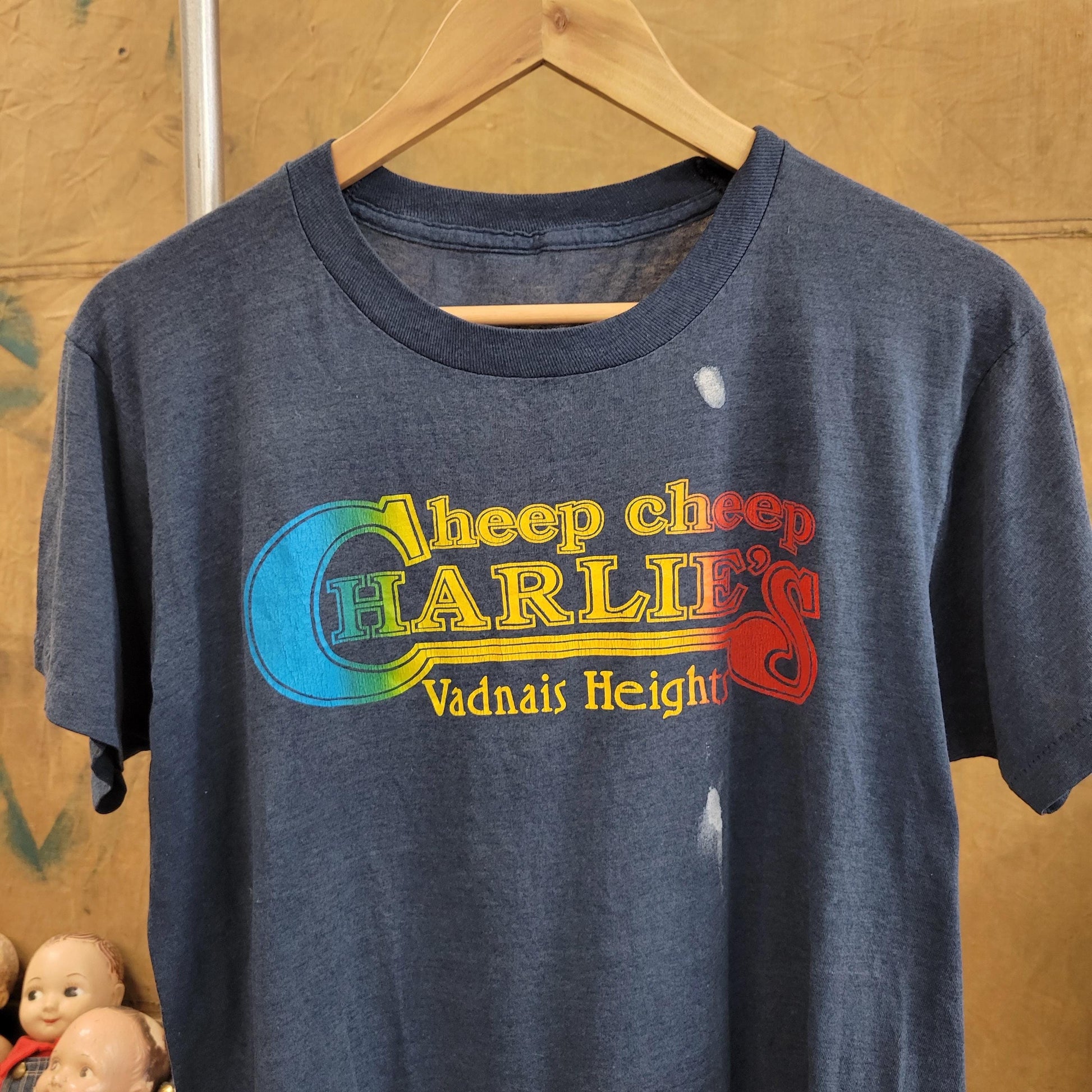 vtg 70s CHEAP CHARLIES TSHIRT // vintage vadnais heights minnesota minneapolis restaurant dine pizza pub food iconic neighborhood beer tee
