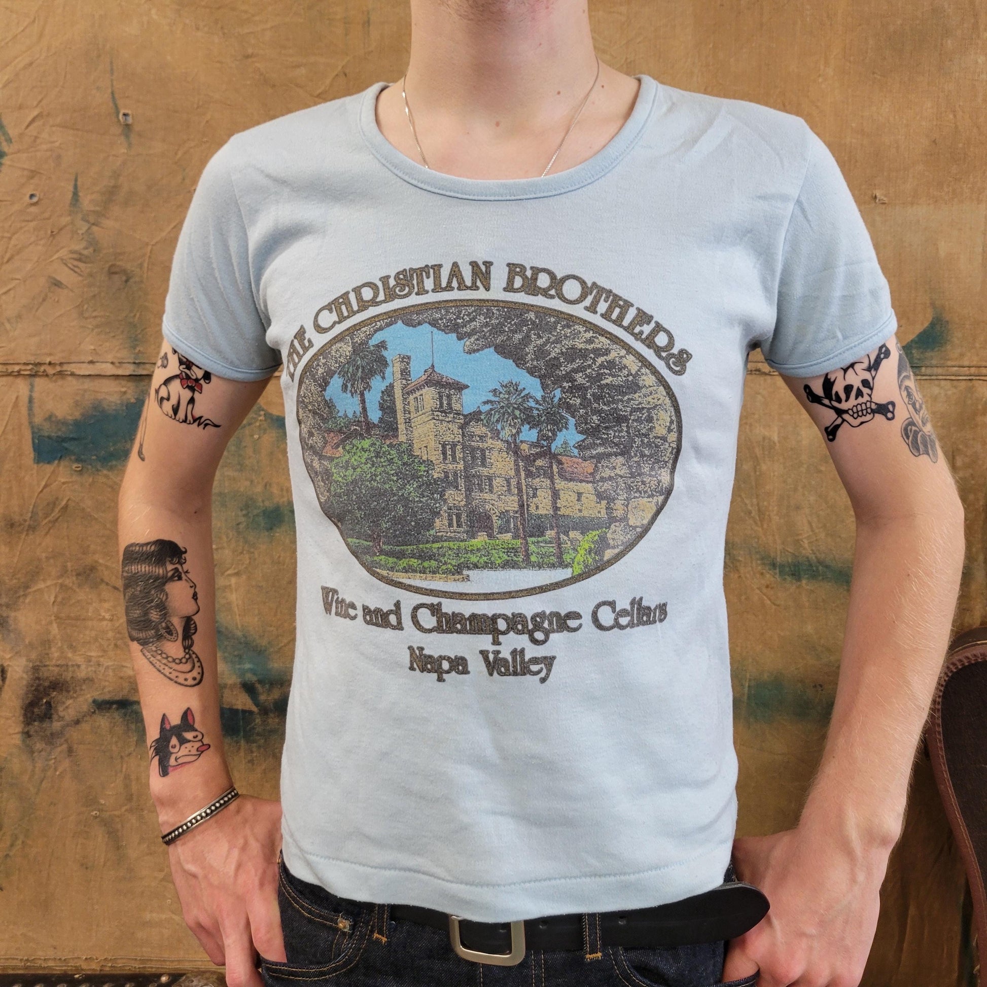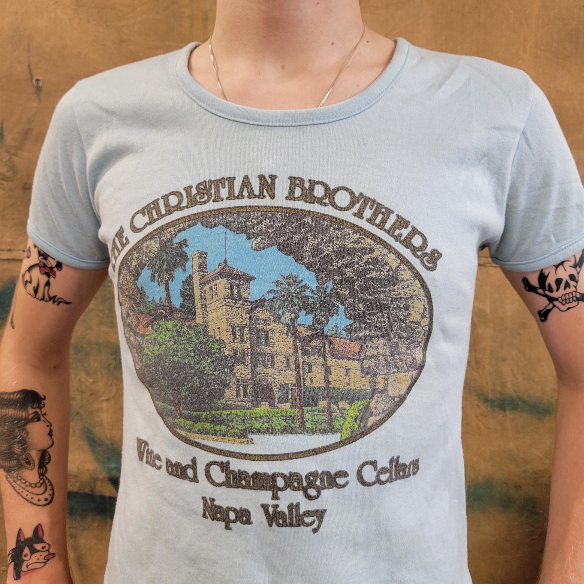 vtg 70s CHRISTIAN BROTHERS wine TSHIRT // vintage femme cut ribbed stretch short sleeves 1970s shirt tee alcohol vineyard grapes merlot