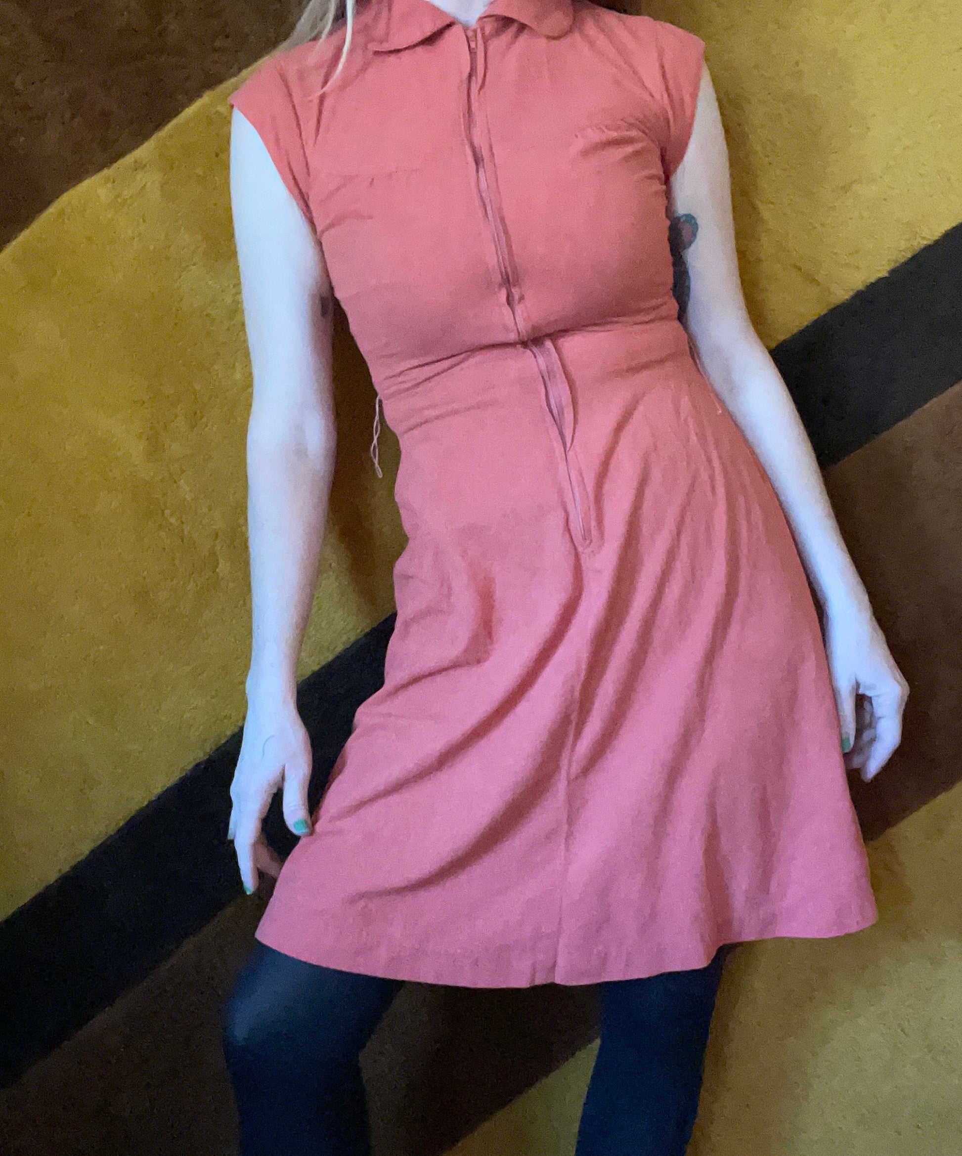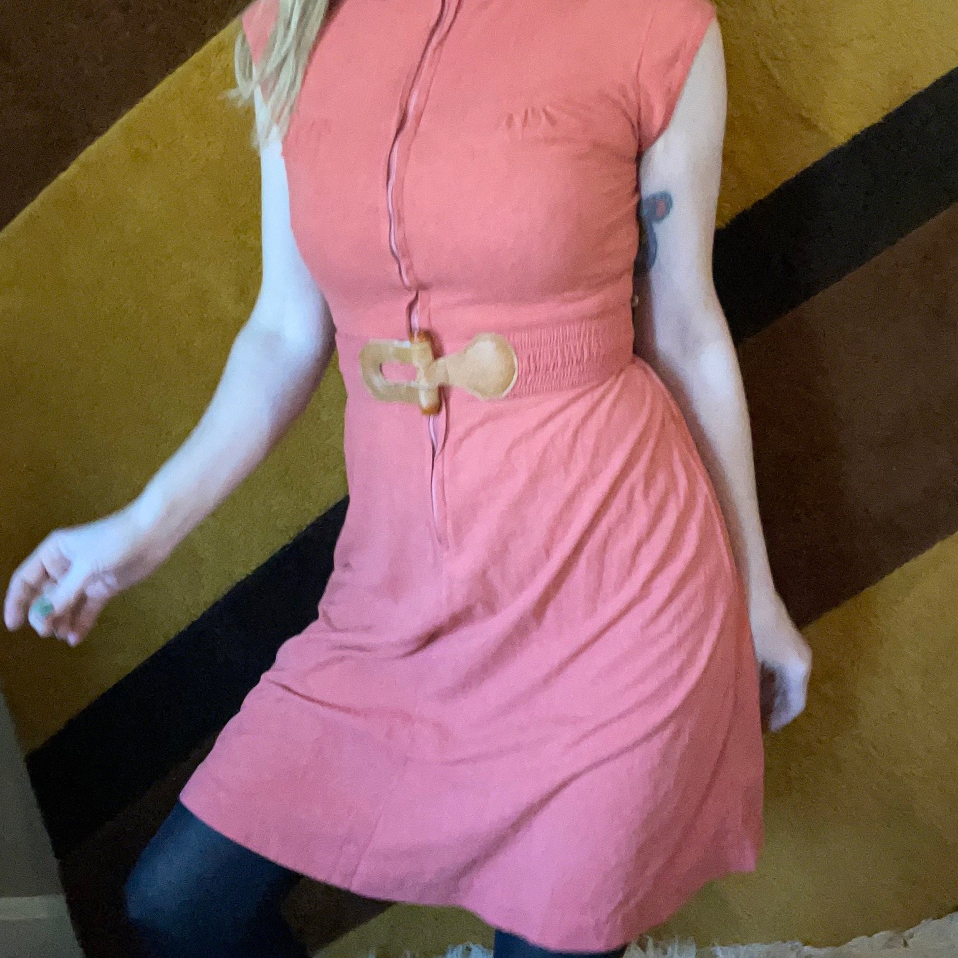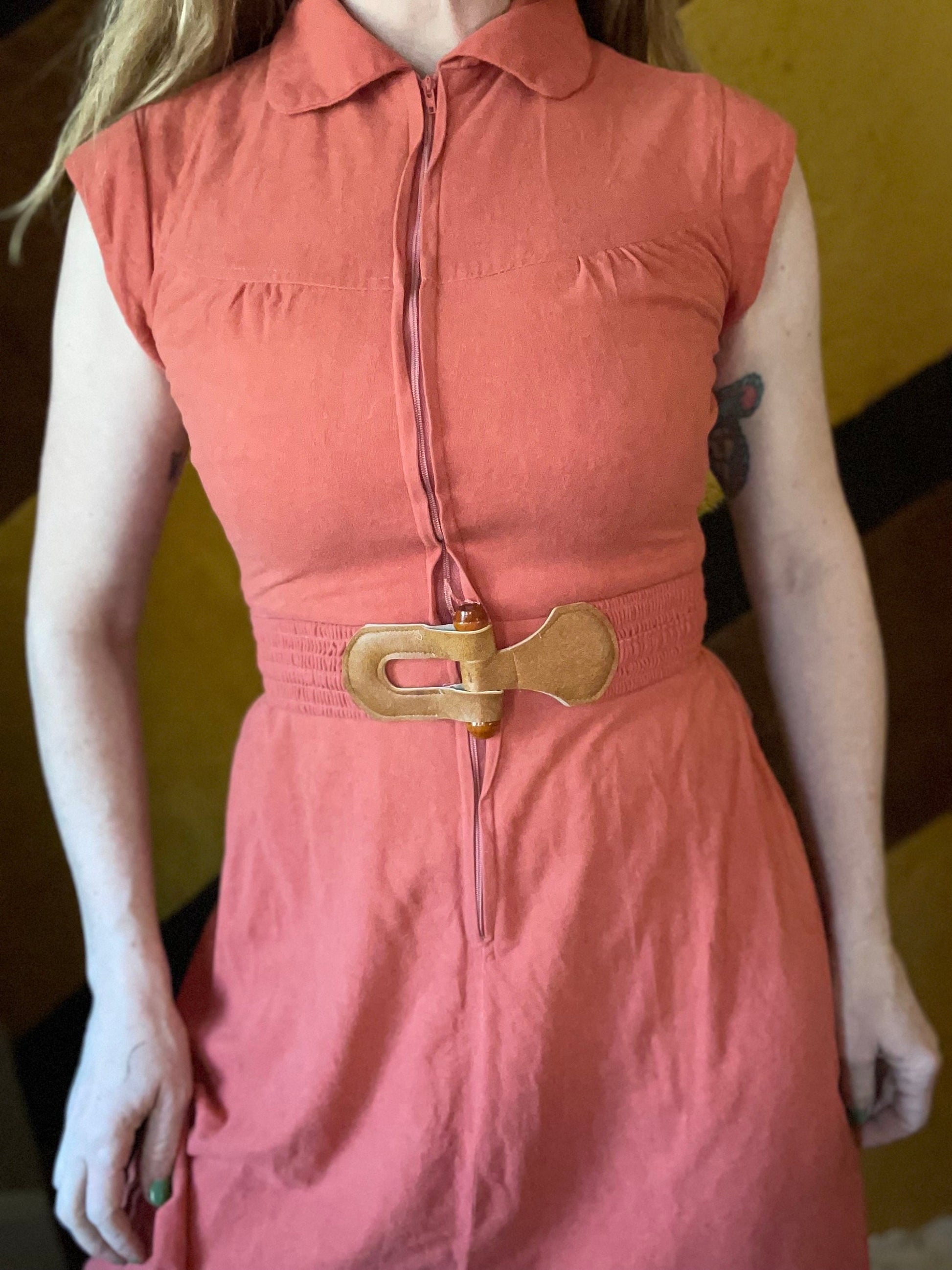 vtg 70s rust orange dress belted zip up cute pointy collar retro boho mini dress casual sleeveless neutral tones summer party dress