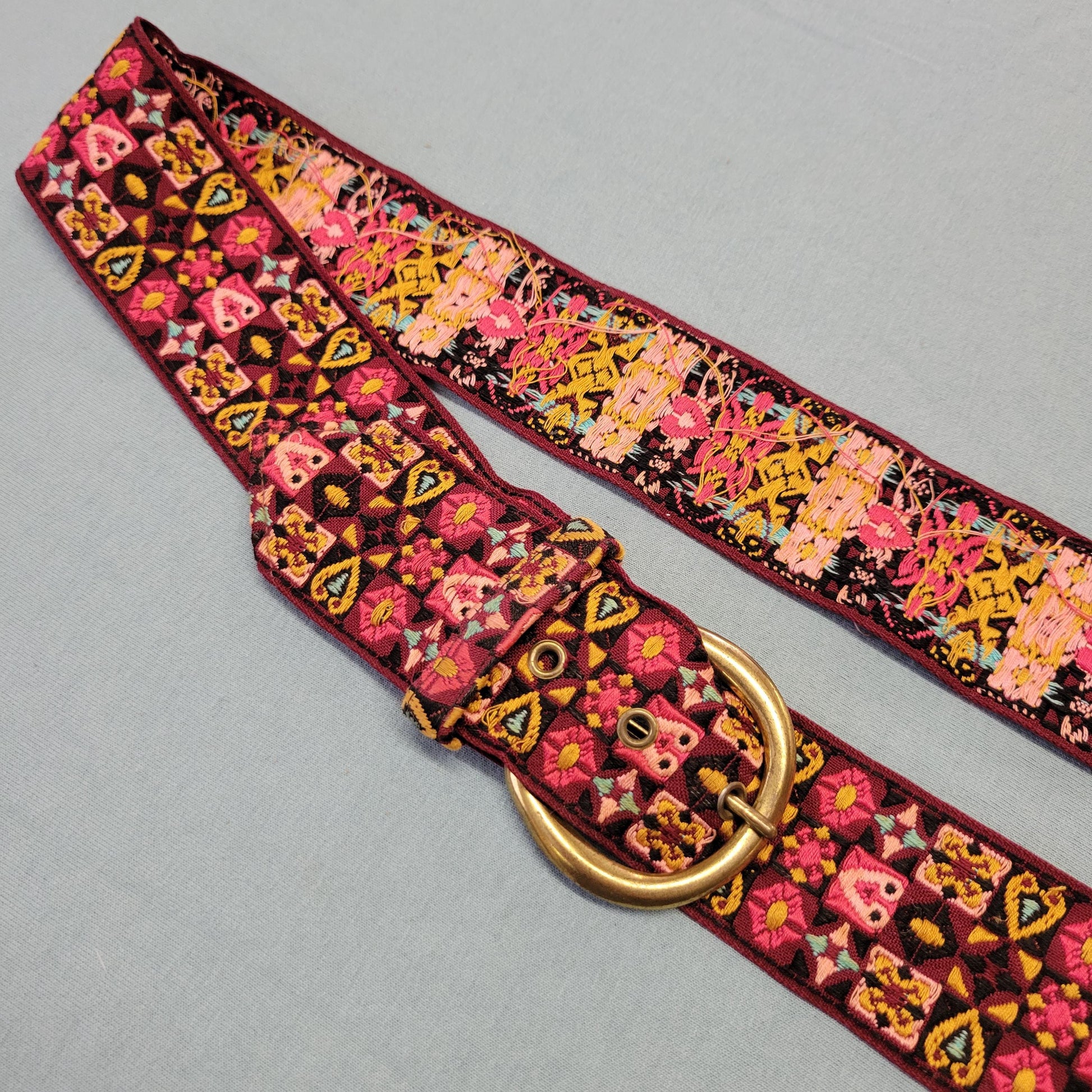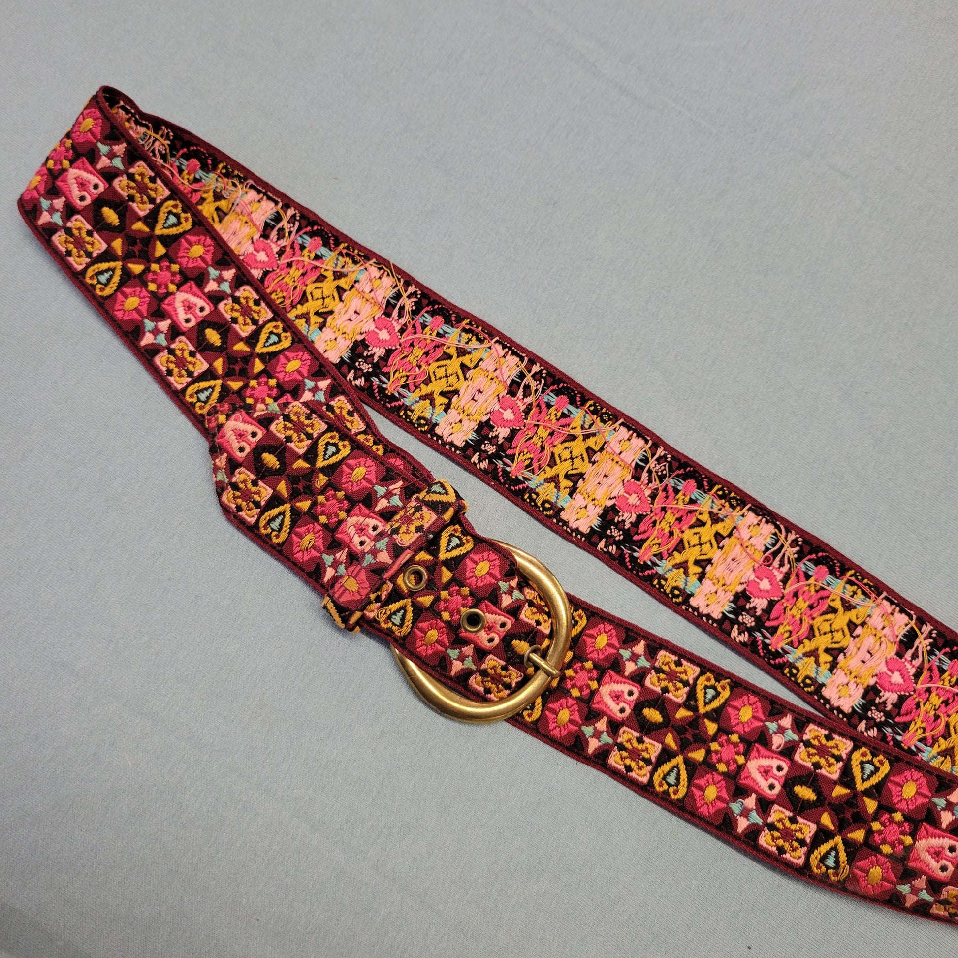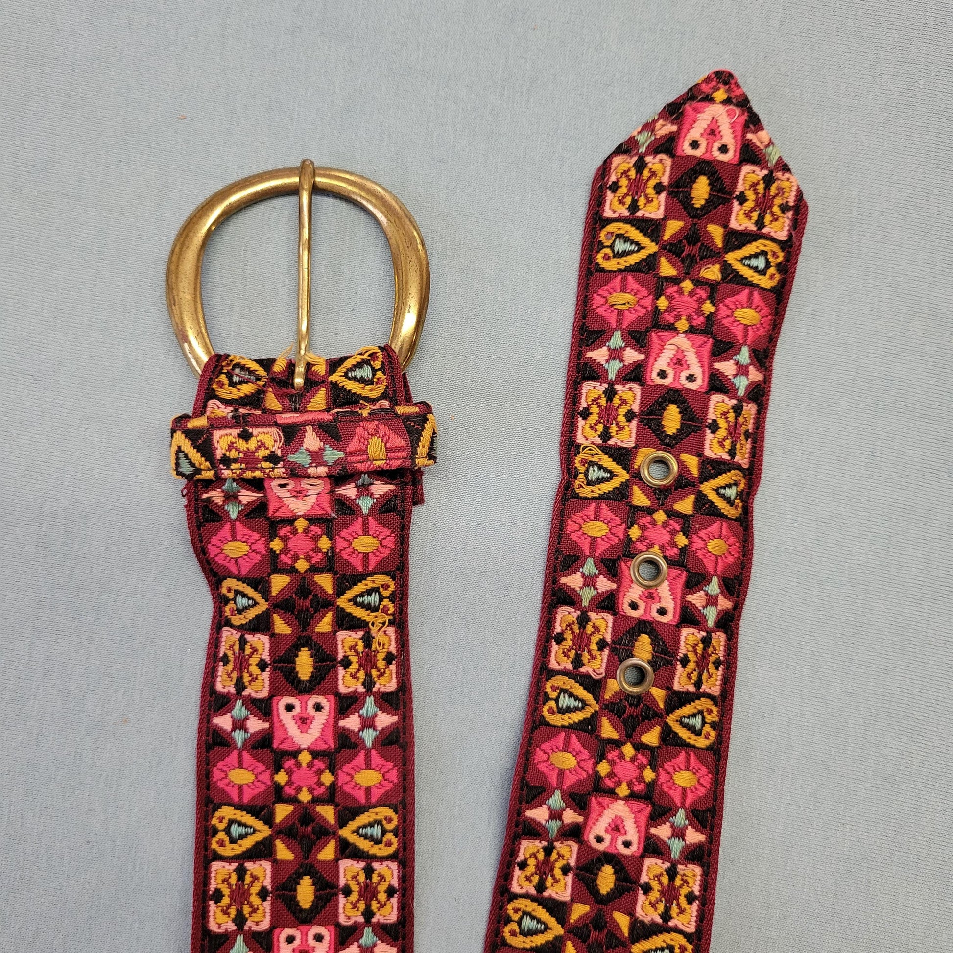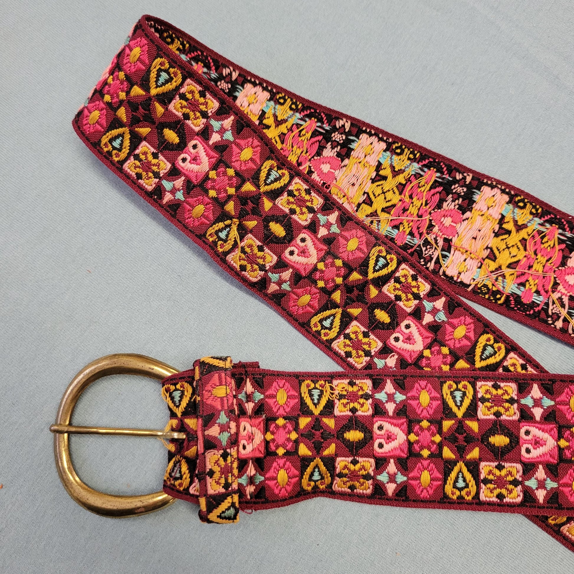 vtg 70s EMBROIDERED BELT // vintage hippie boho tapestry abstract heart pattern retro bohemian fabric accessory autumn vibes fall fashion