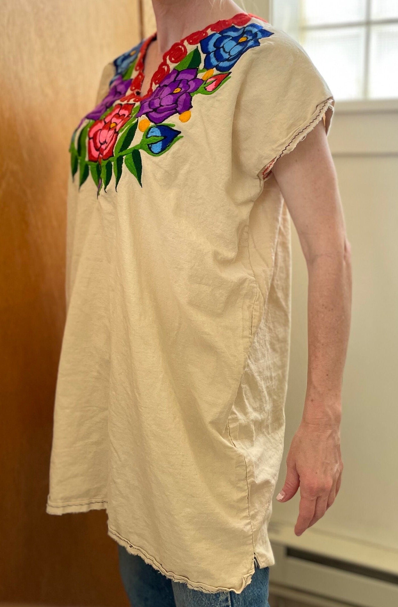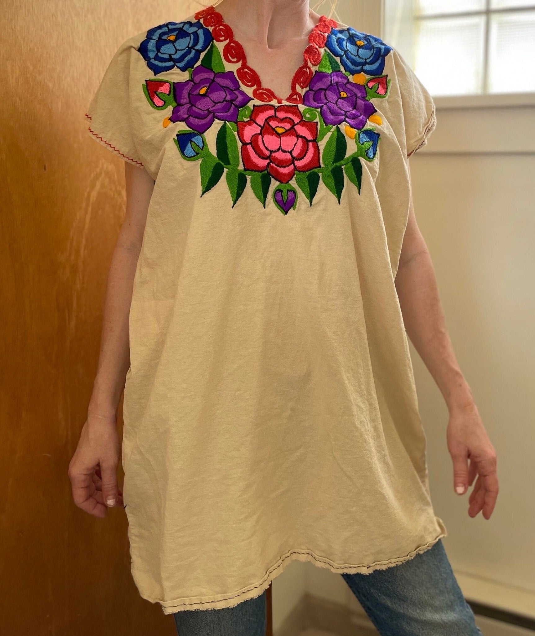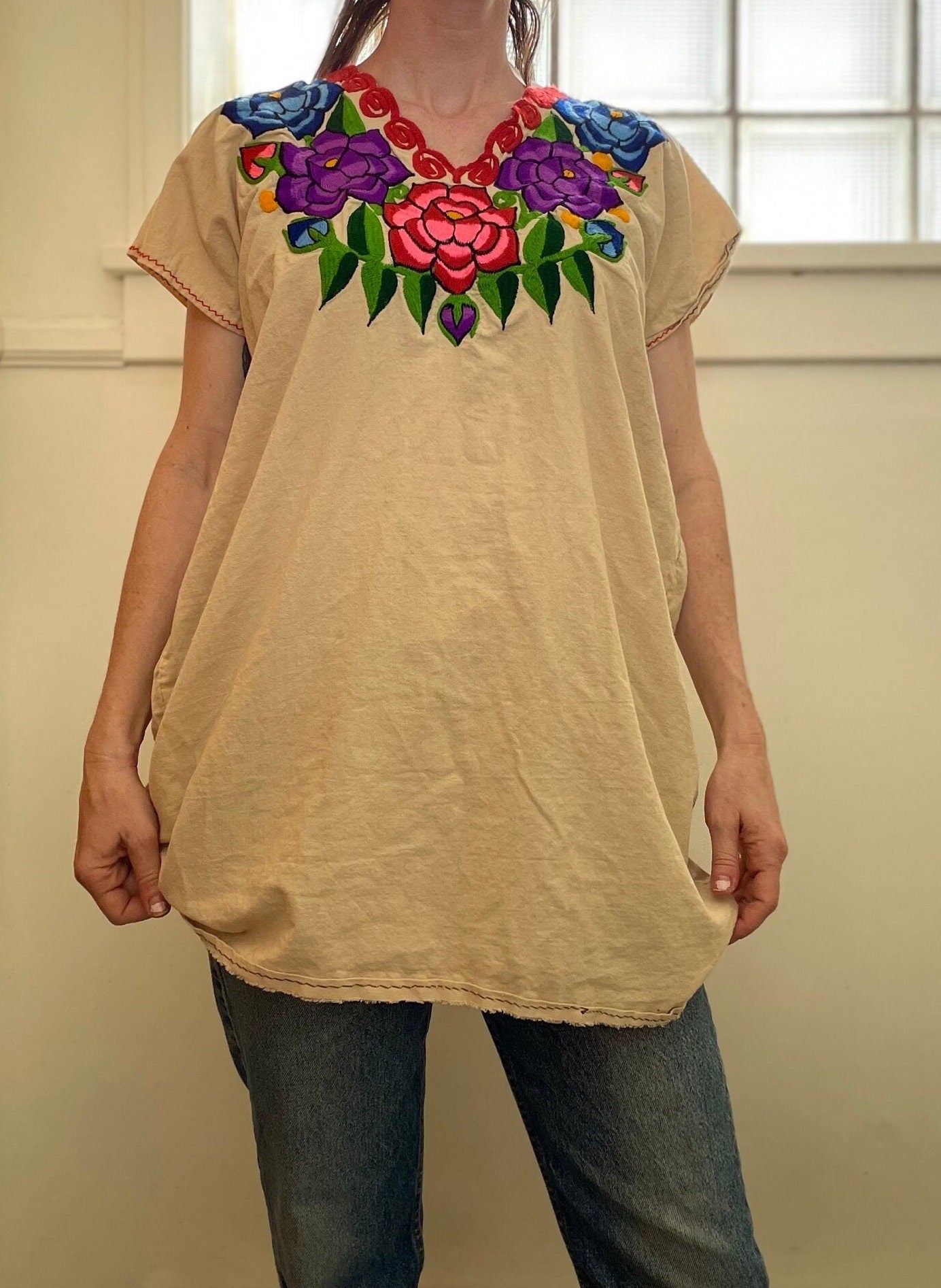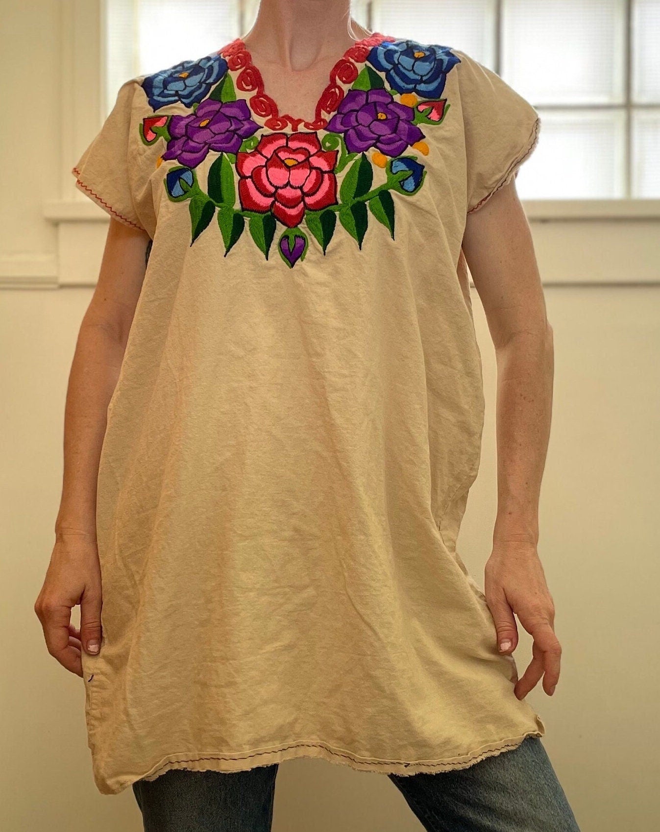 vtg 70s EMBROIDERED OAXACAN STYLE Top // vintage mexican floral tunic summer hippie boho festival bright flower applique micro mini dress