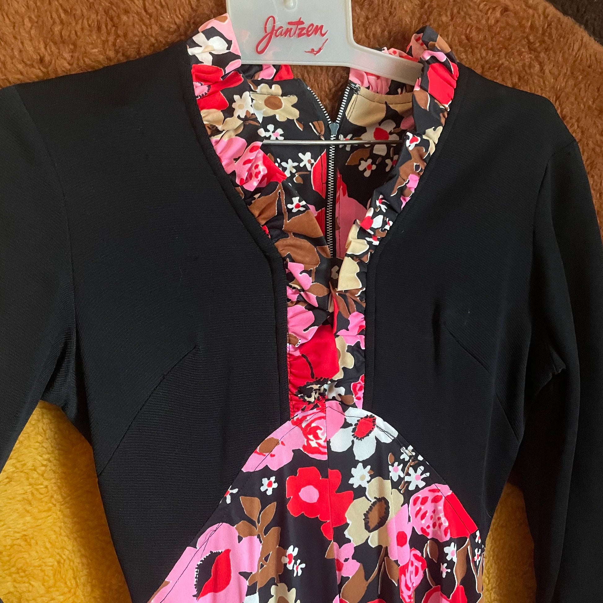 zips up the back