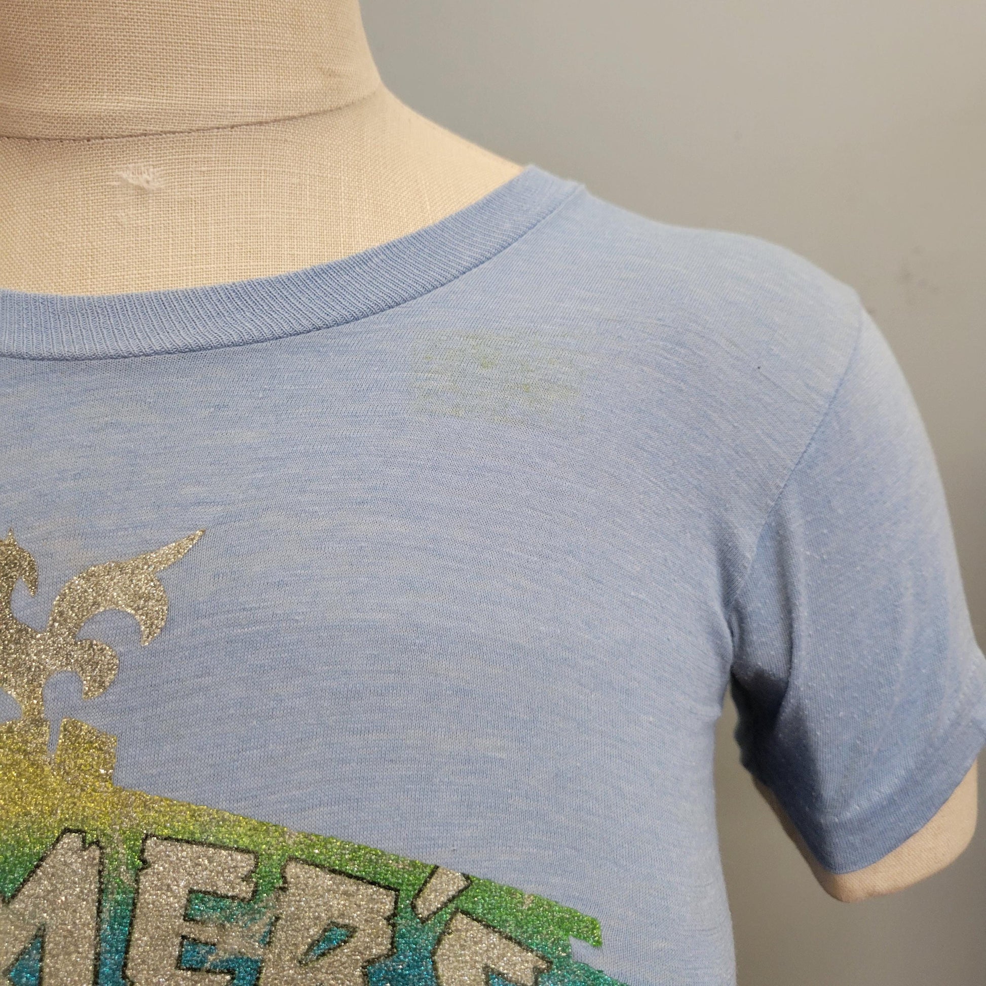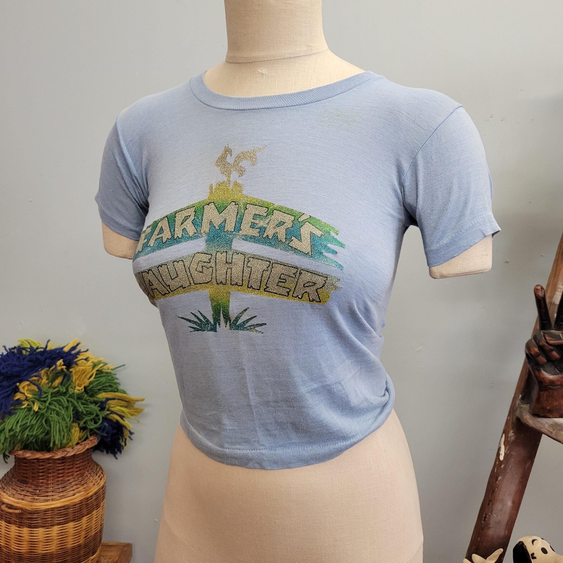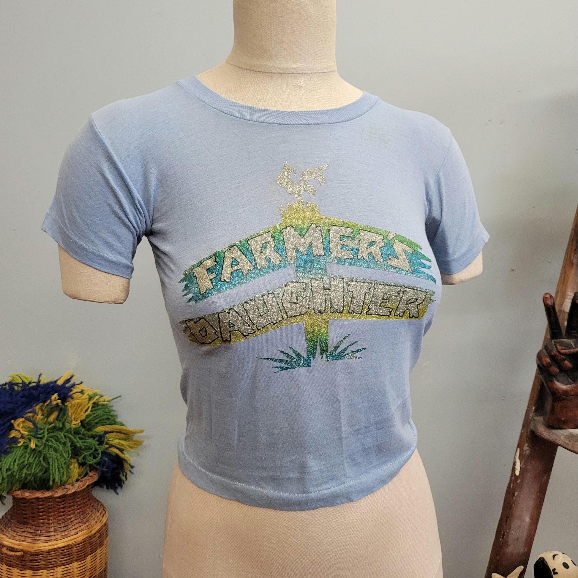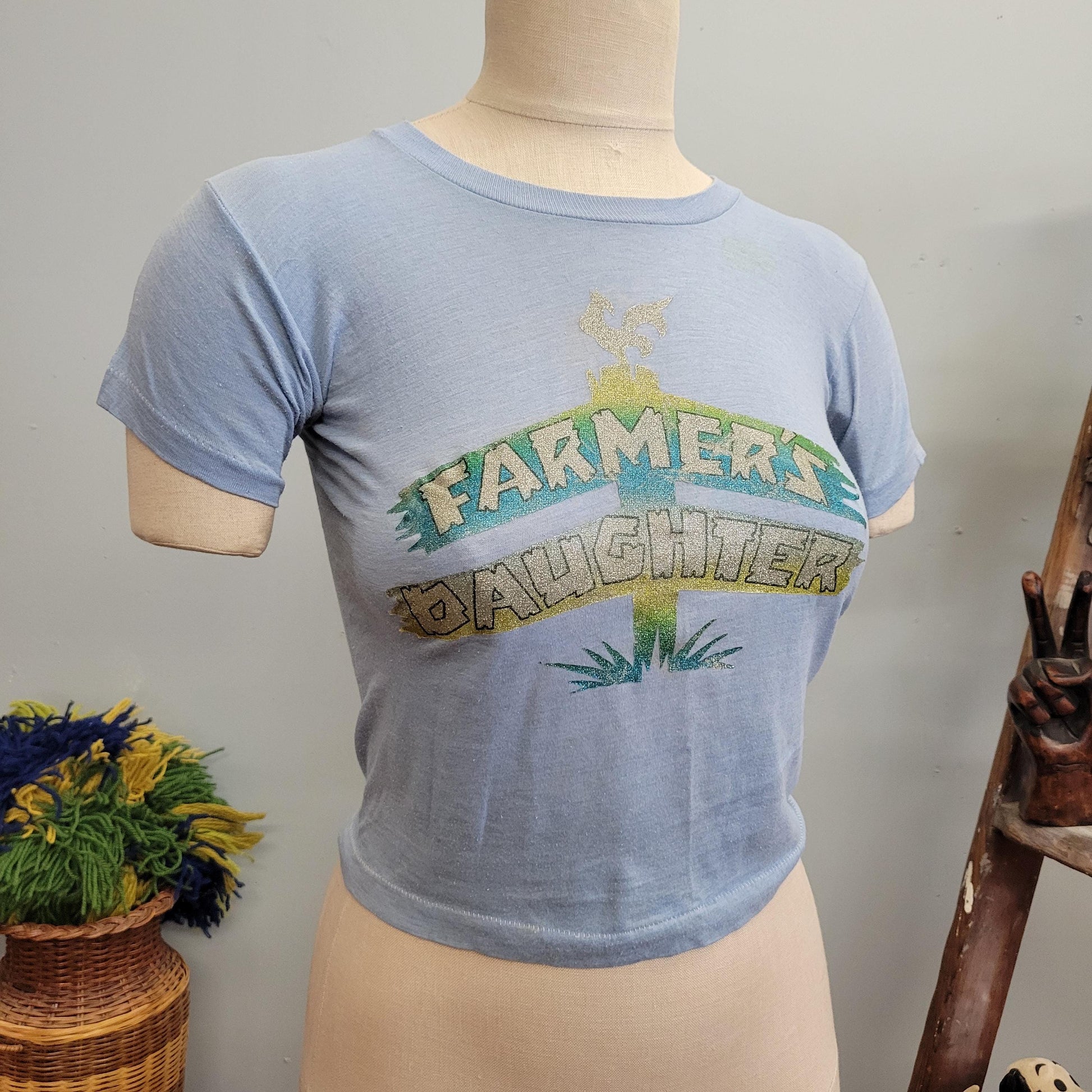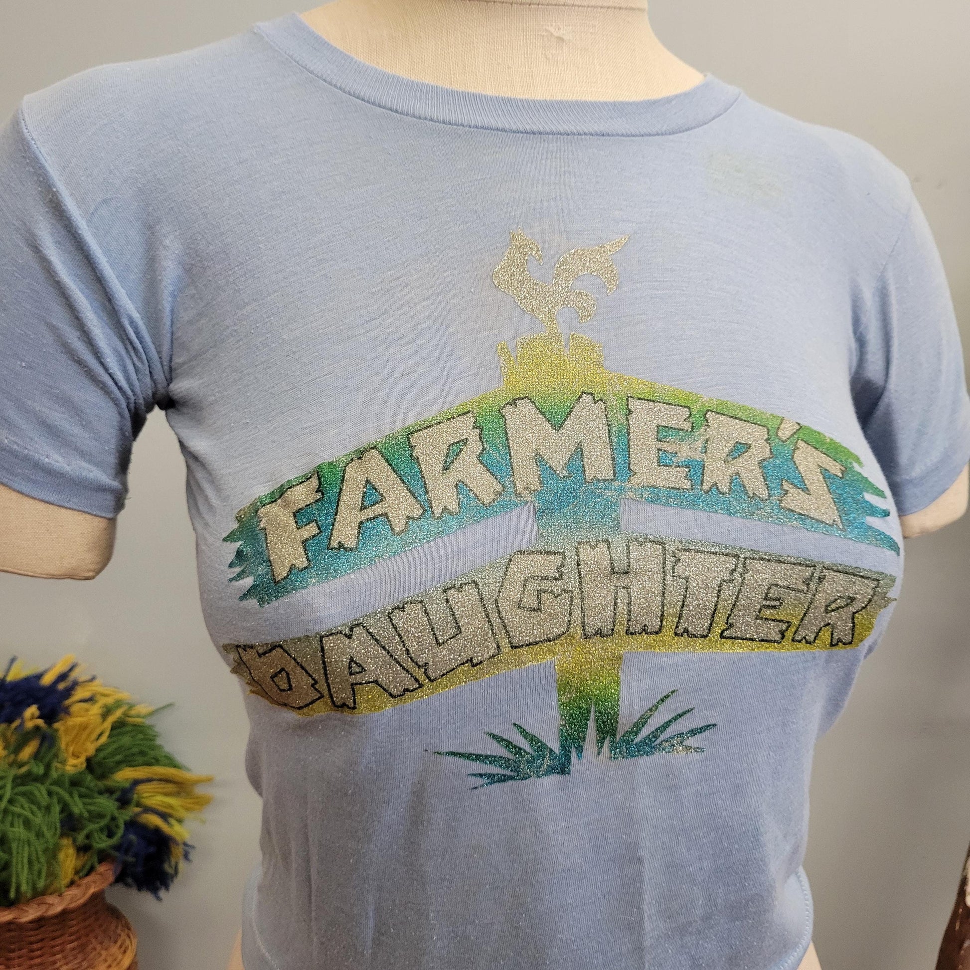 vtg 70s FARMERS DAUGHTER IRON On tshirt // vintage small baby tee crop top cowboy daddy's girl loretta lynn country girl retro paper thin
