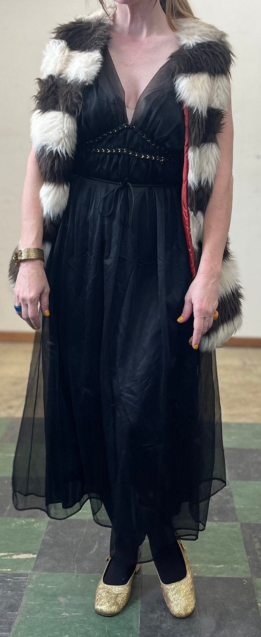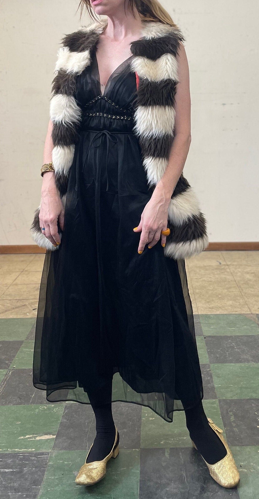 Vintage 70s Happy Legs Striped Faux Fur Jacket / Furry Vest / 70s Disco Glam Fur Waistcoat