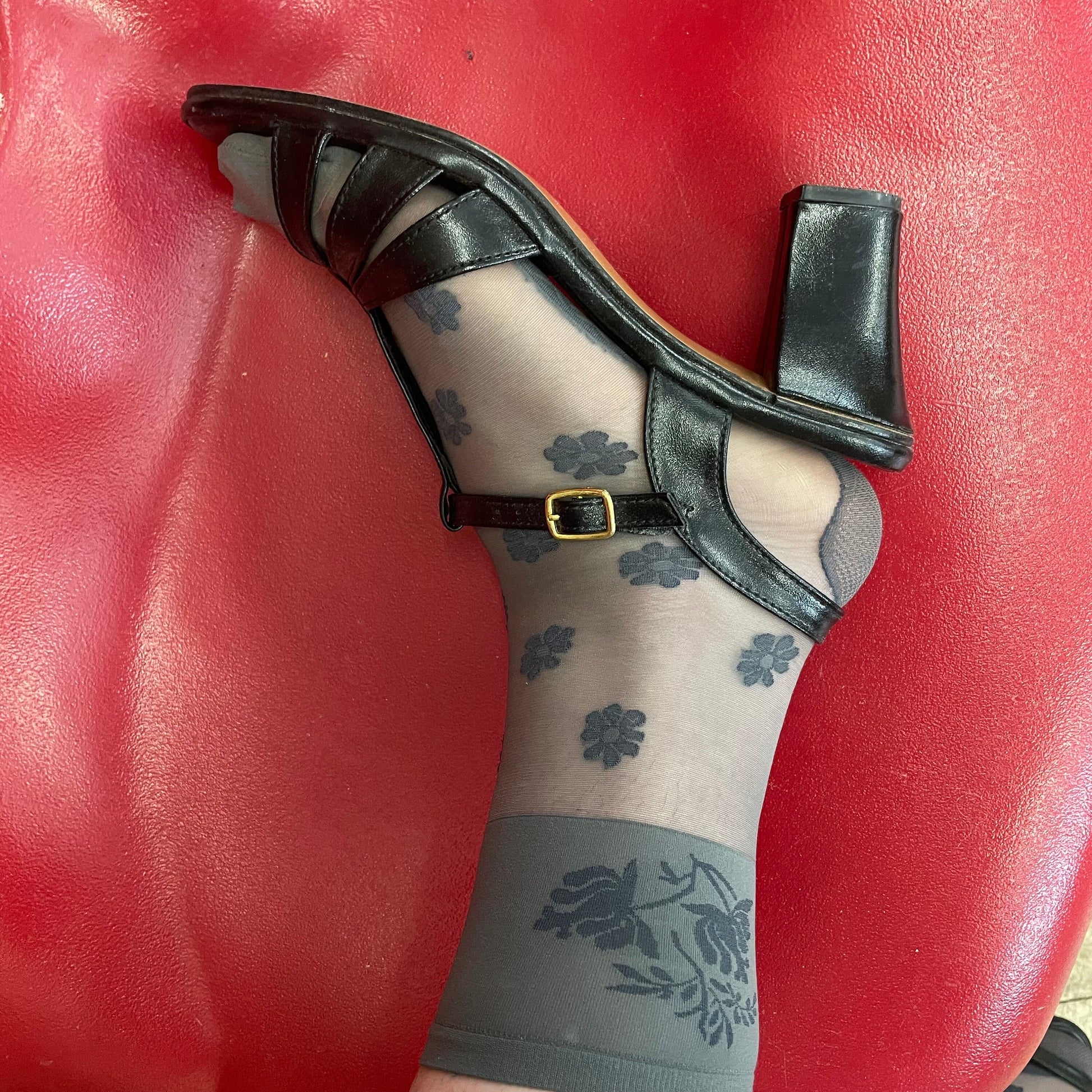 Vintage 70s black vegan pleather t strap Mary Jane heels Montgomery Ward strappy sandals disco pumps