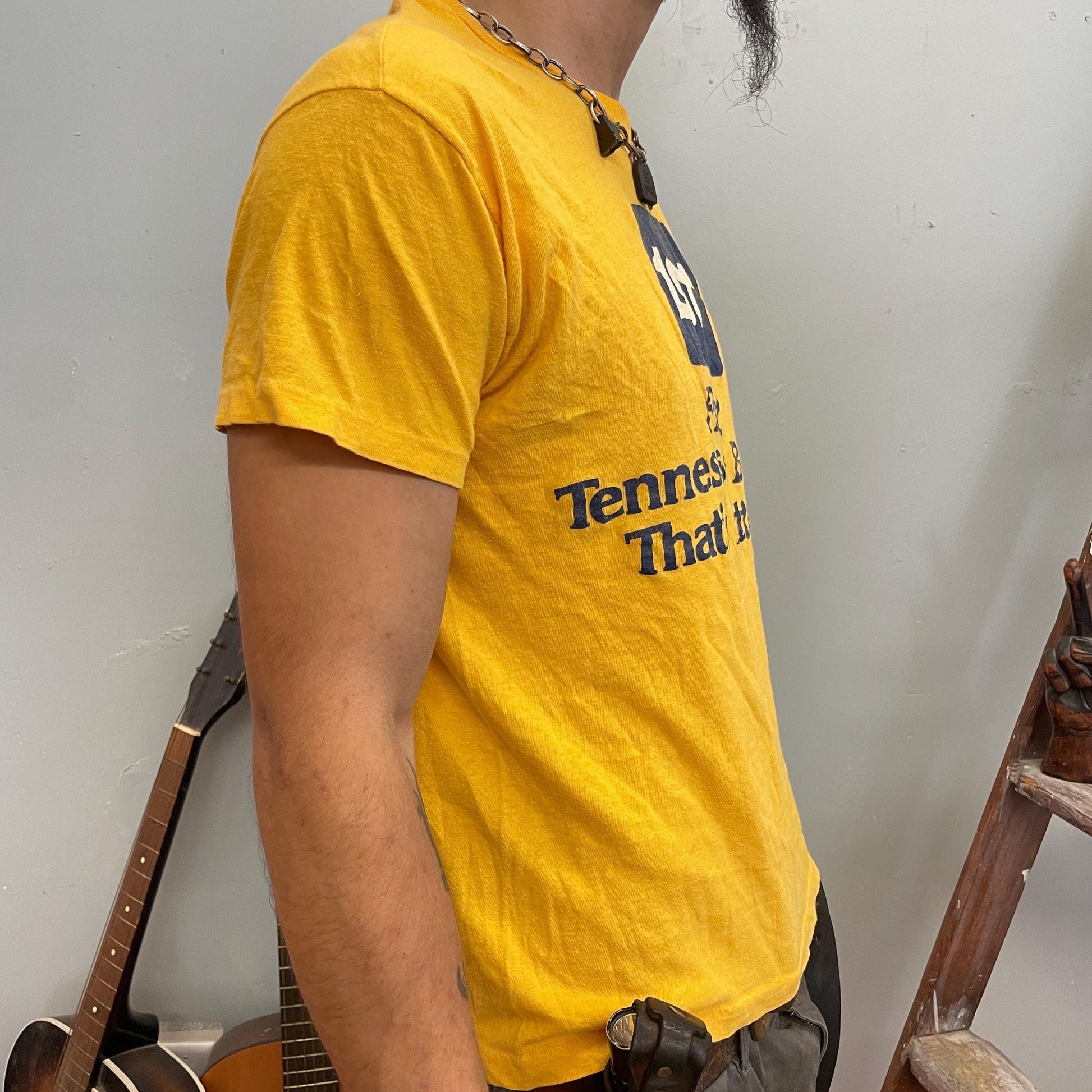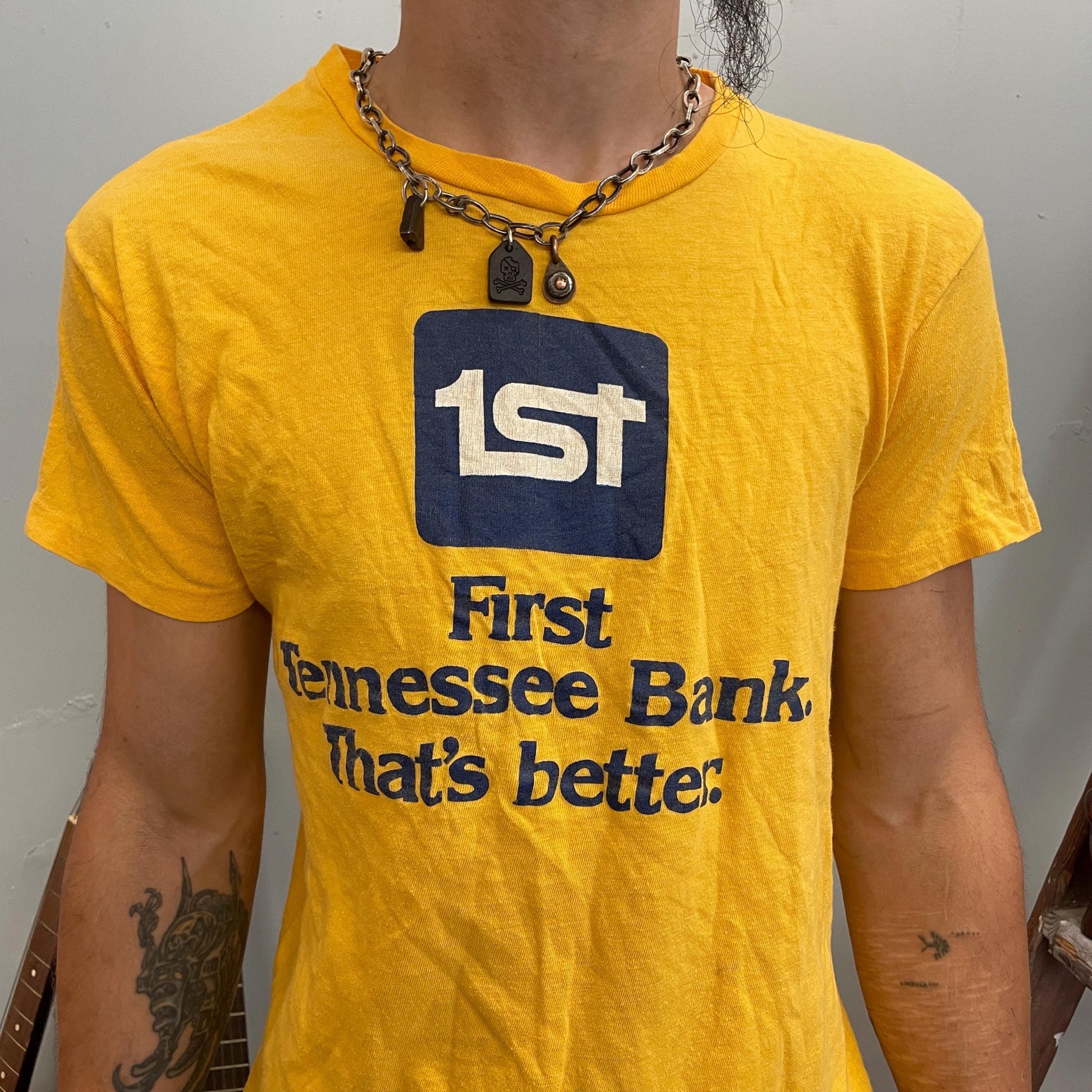vtg 70s FIRST TENNESSEE BANK tshirt // vintage hanes yellow nashville memphis ozark usa athletic camp tee style fit fashion soft cotton tee