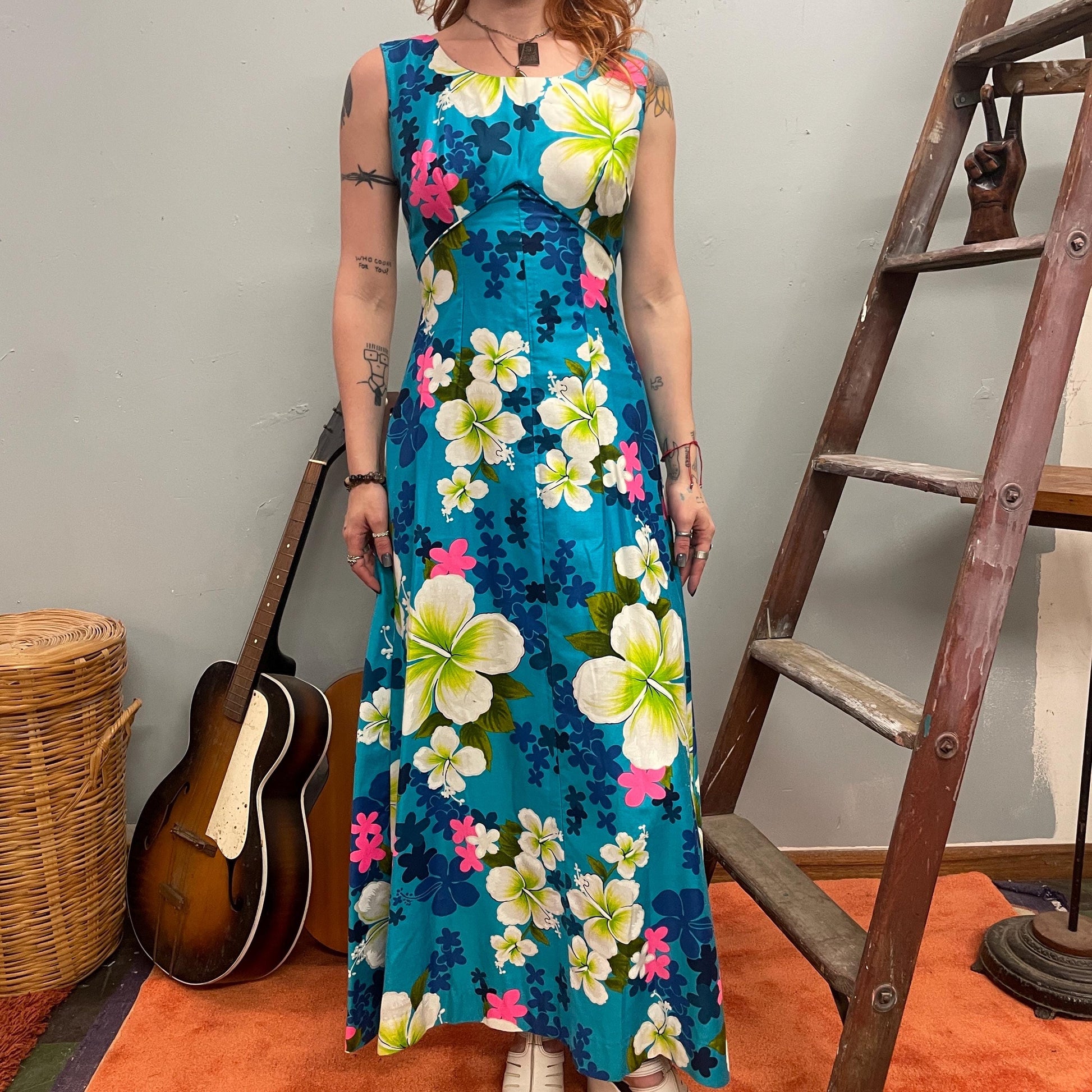 vtg 70s FLORAL HAWAIIAN MAXI Dress // vintage royal hawaiian barkcloth full length xs tank slip vacation style tourist beach style tropical