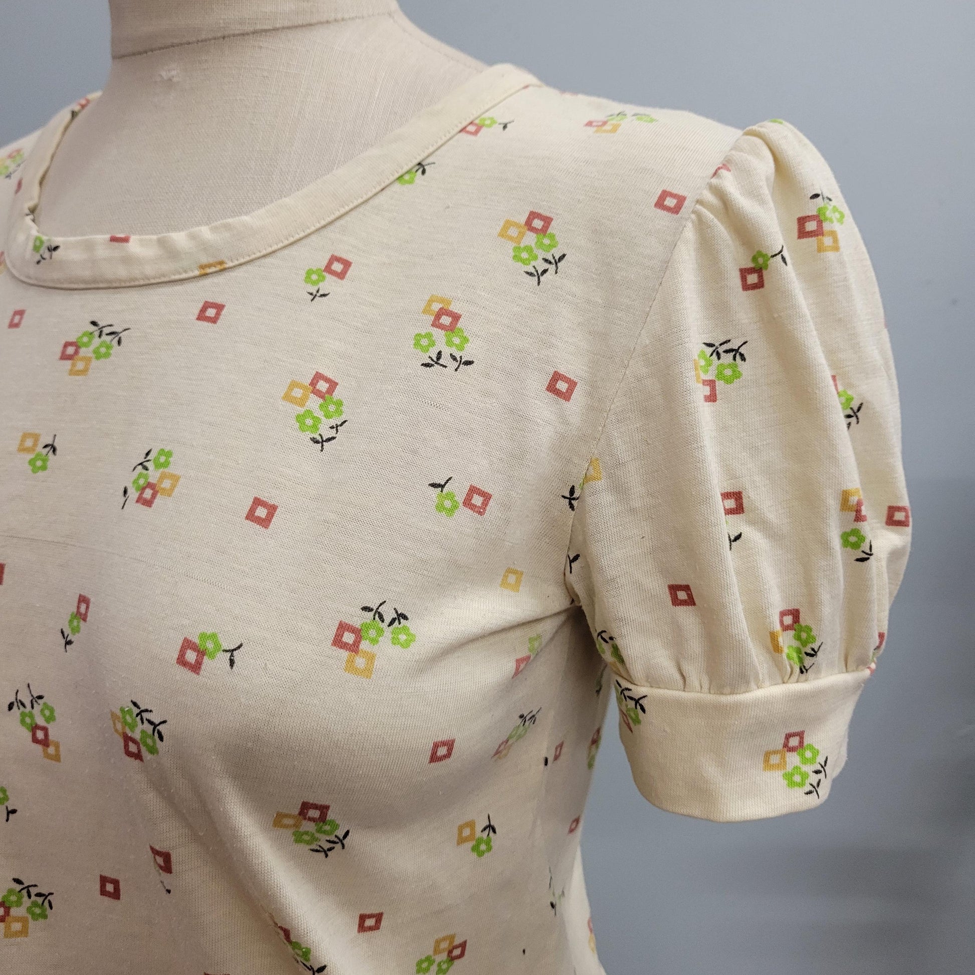 vtg 70s FLORAL PUFFED SLEEVE Shirt // vintage top small womens soft patterned thin scoop neck dainty cottage casual autumn layers blouse