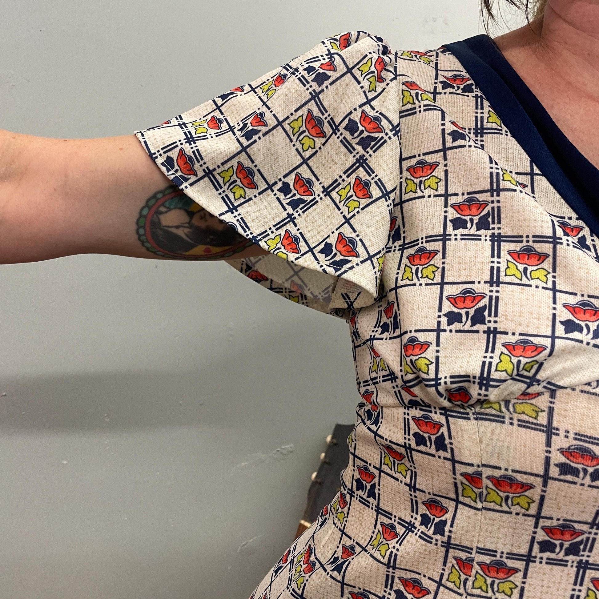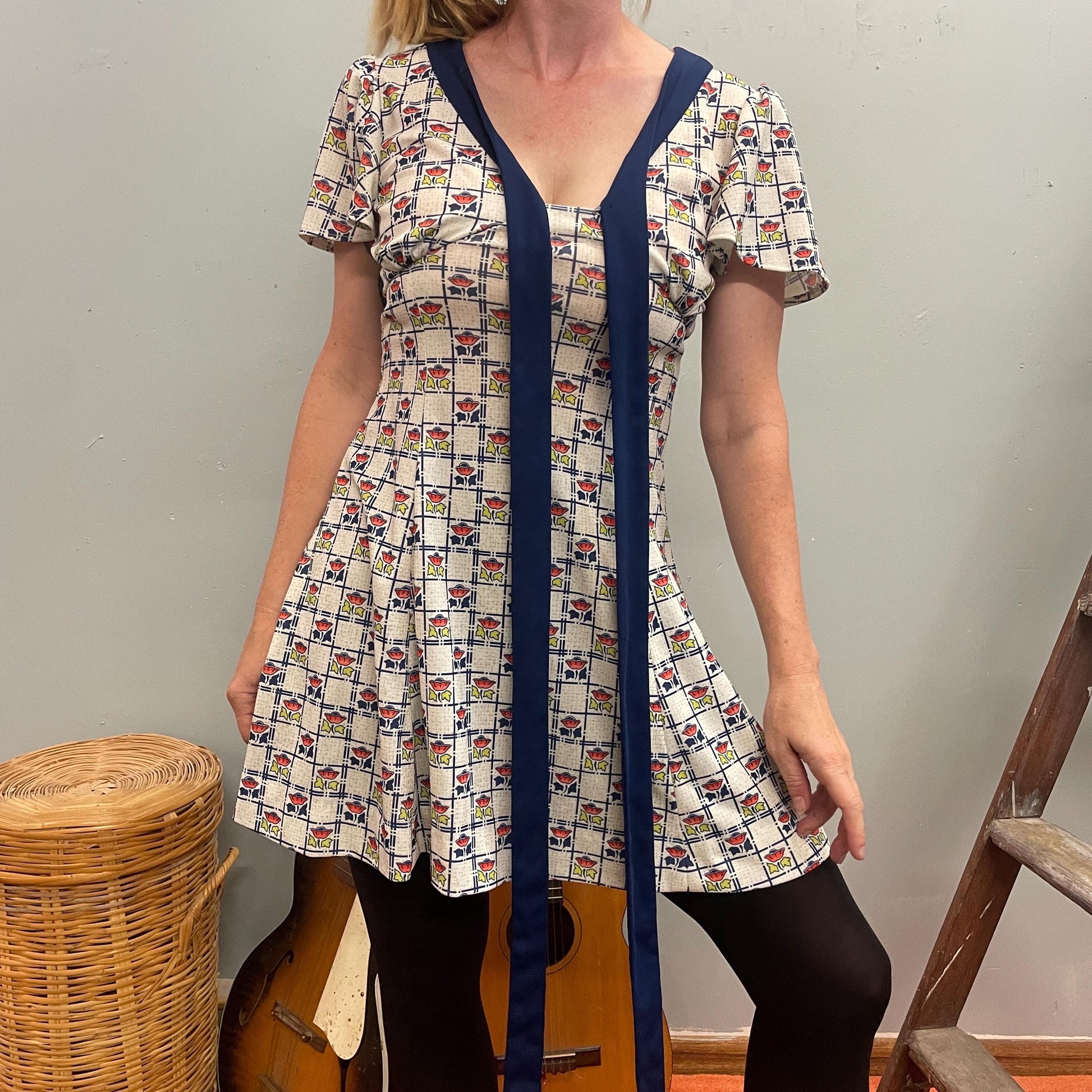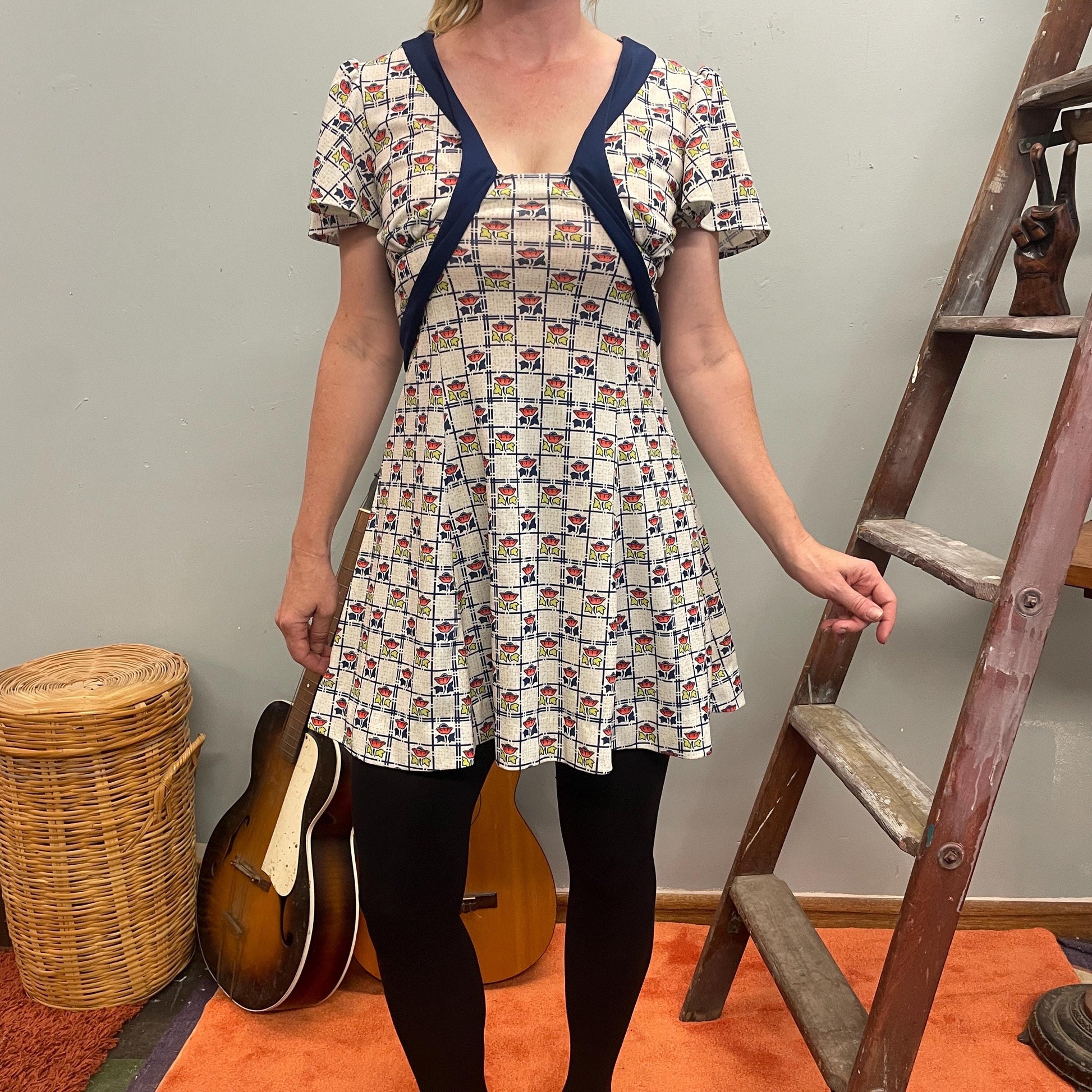 vtg 70s FLUTTER SLEEVE MINI Dress // vintage floral ditzy pattern empire waist a line flowy flower power twee cute mod retro fashion style