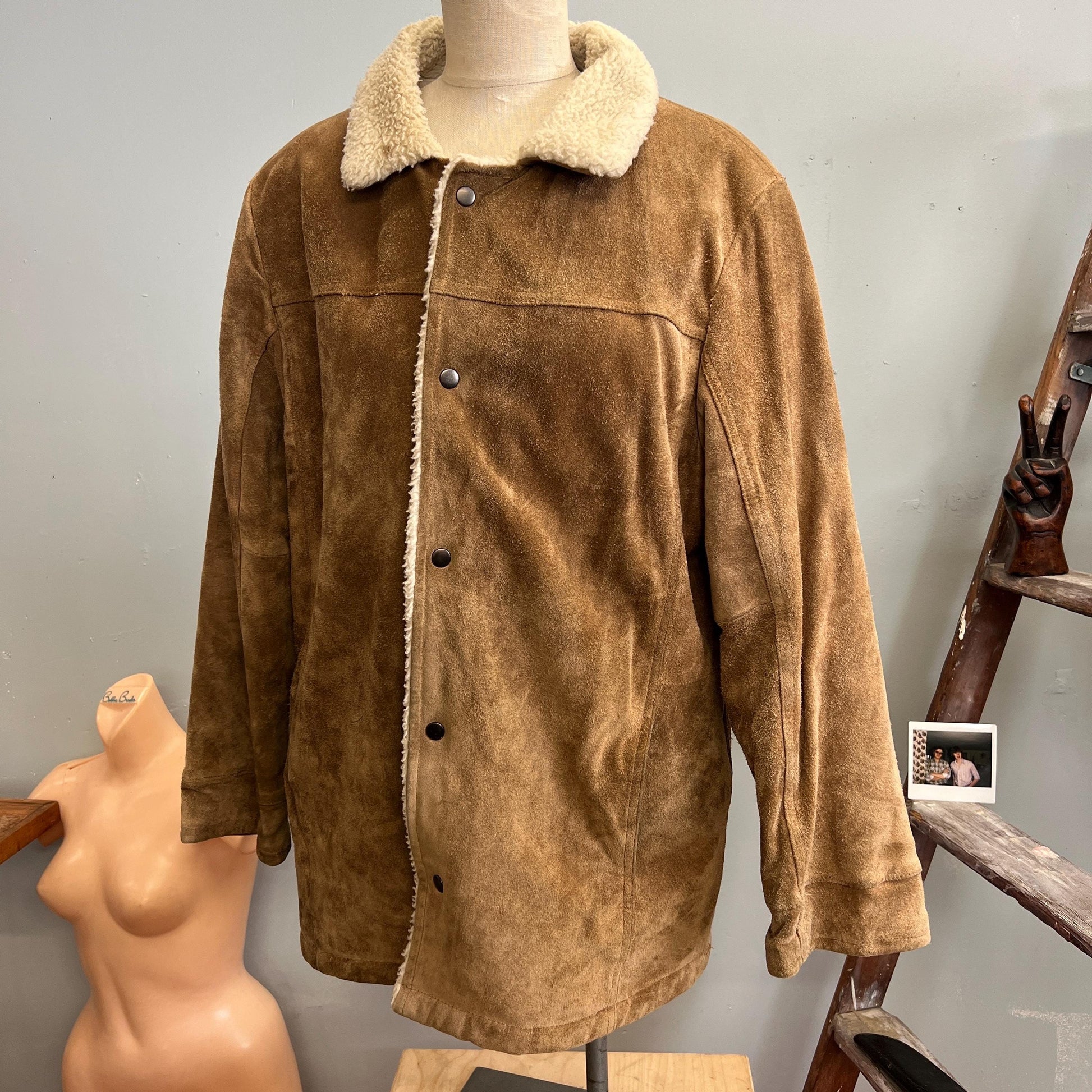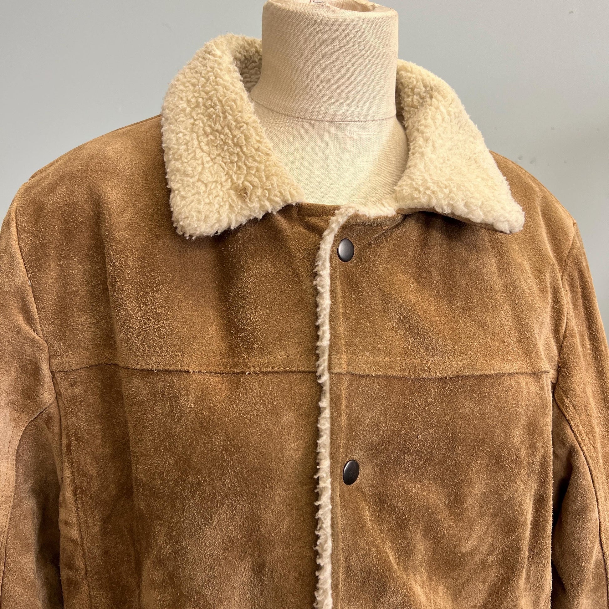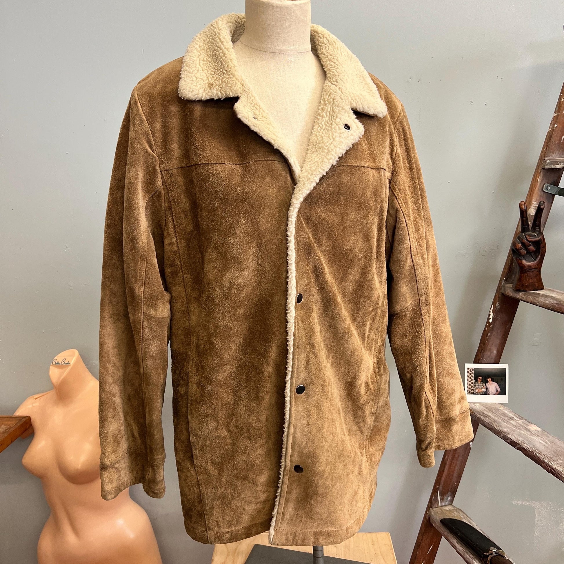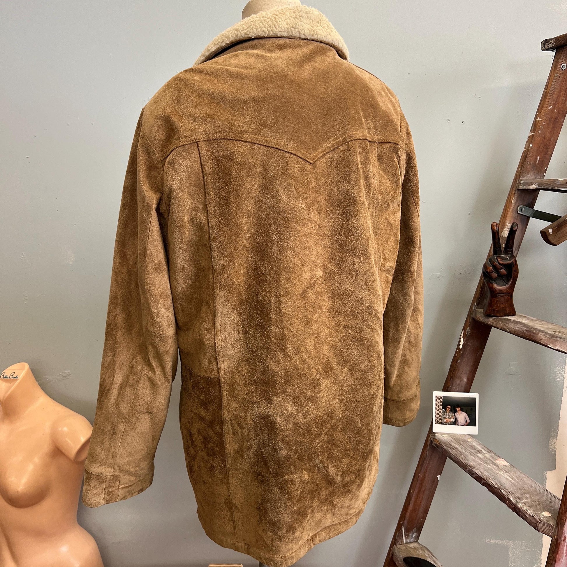vtg 70s FUR SUEDE COAT // vintage pioneer wear 46 mens shearling leather jacket retro tan suede Sherpa autumn winter overcoat western style