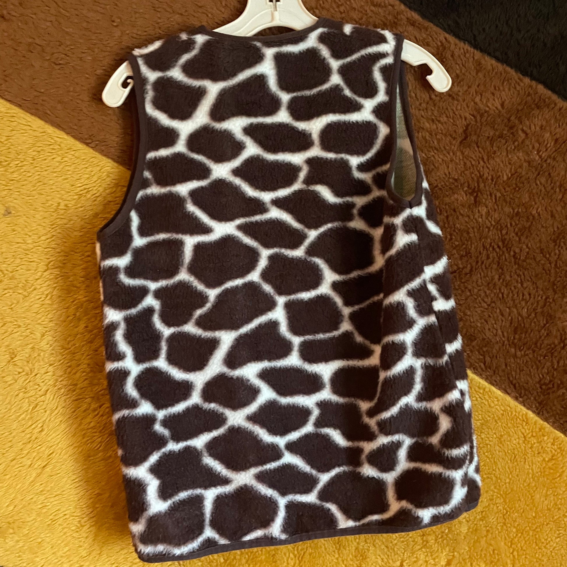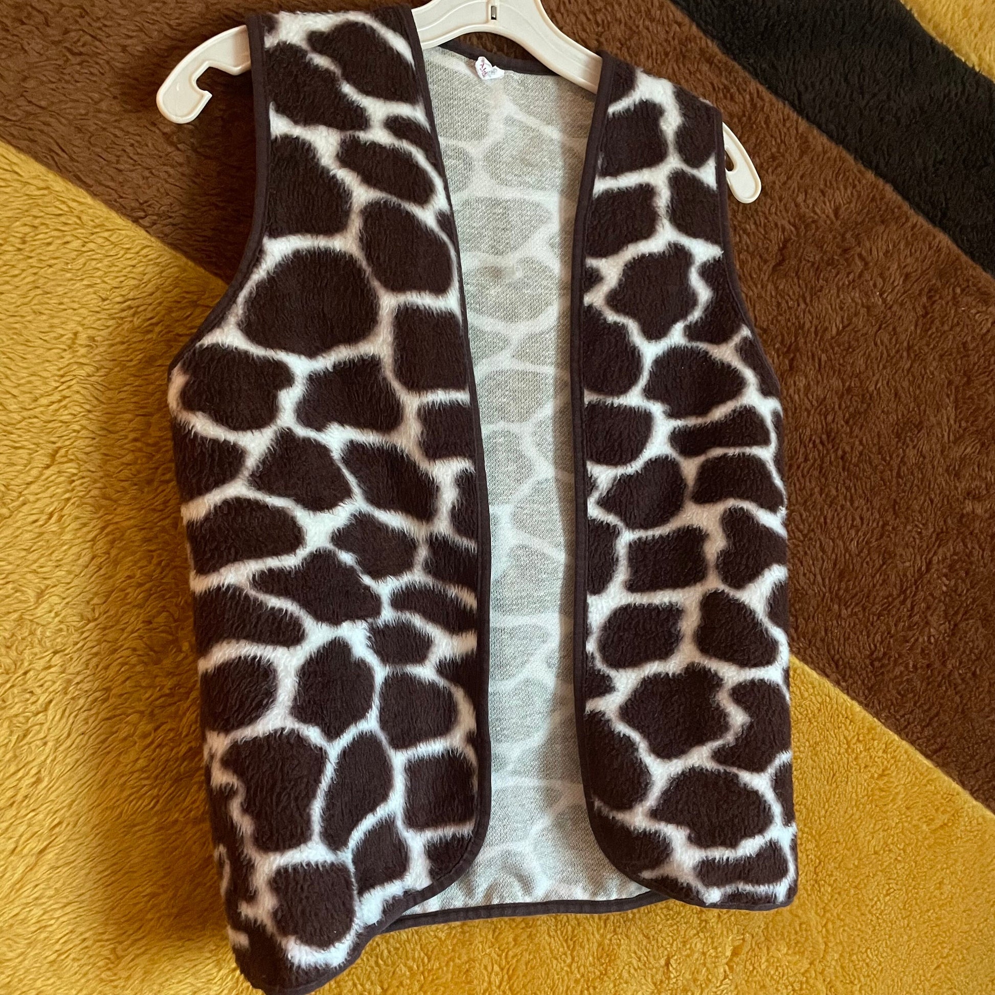 Vintage 70s giraffe print faux fur acrylic vest tunic animal print waistcoat funky layer retro top